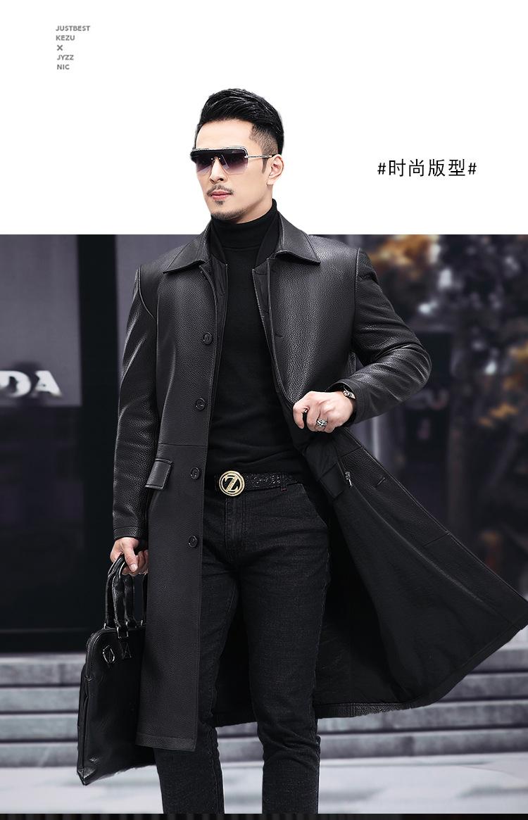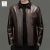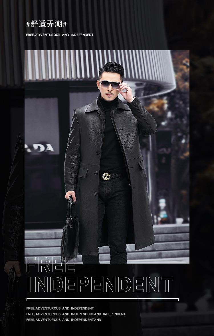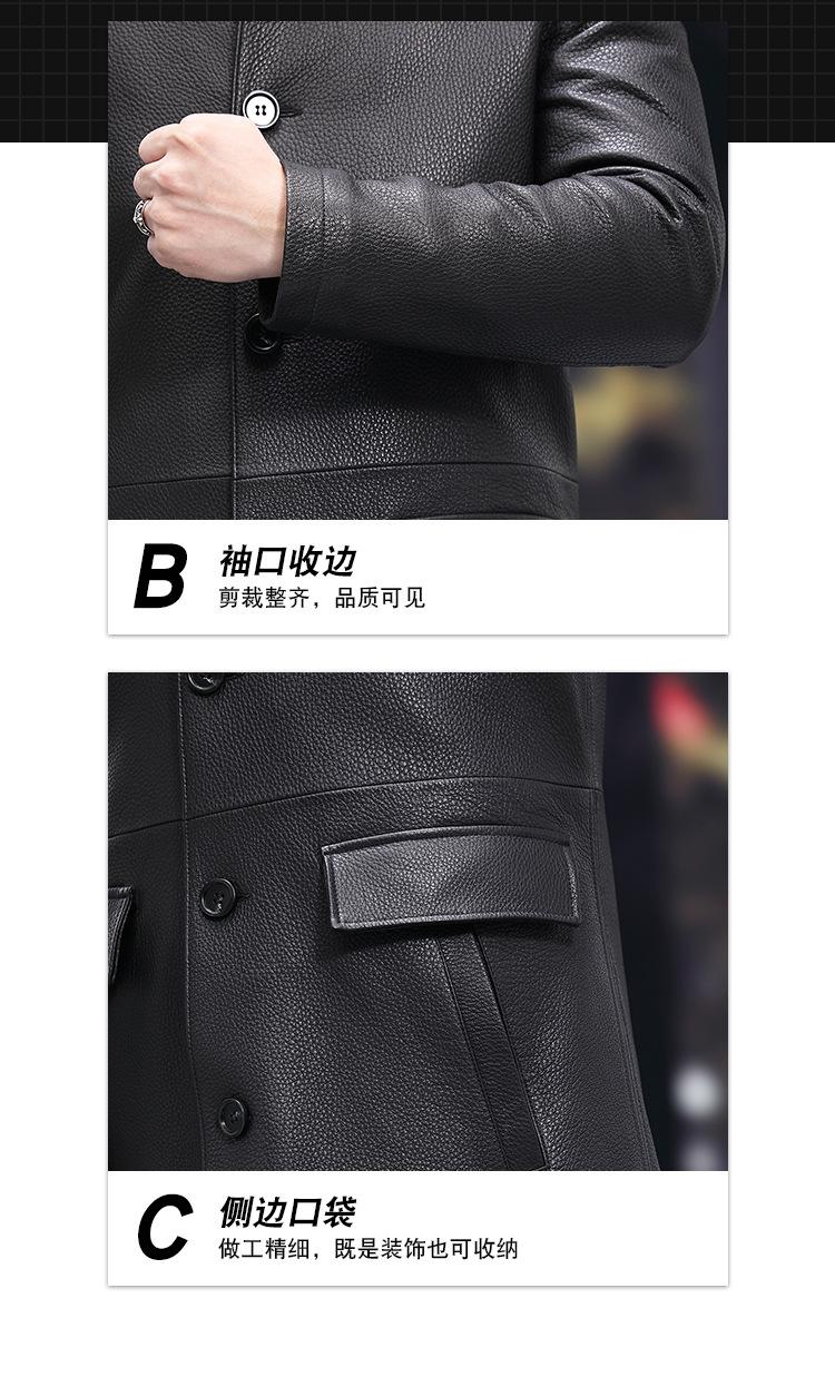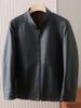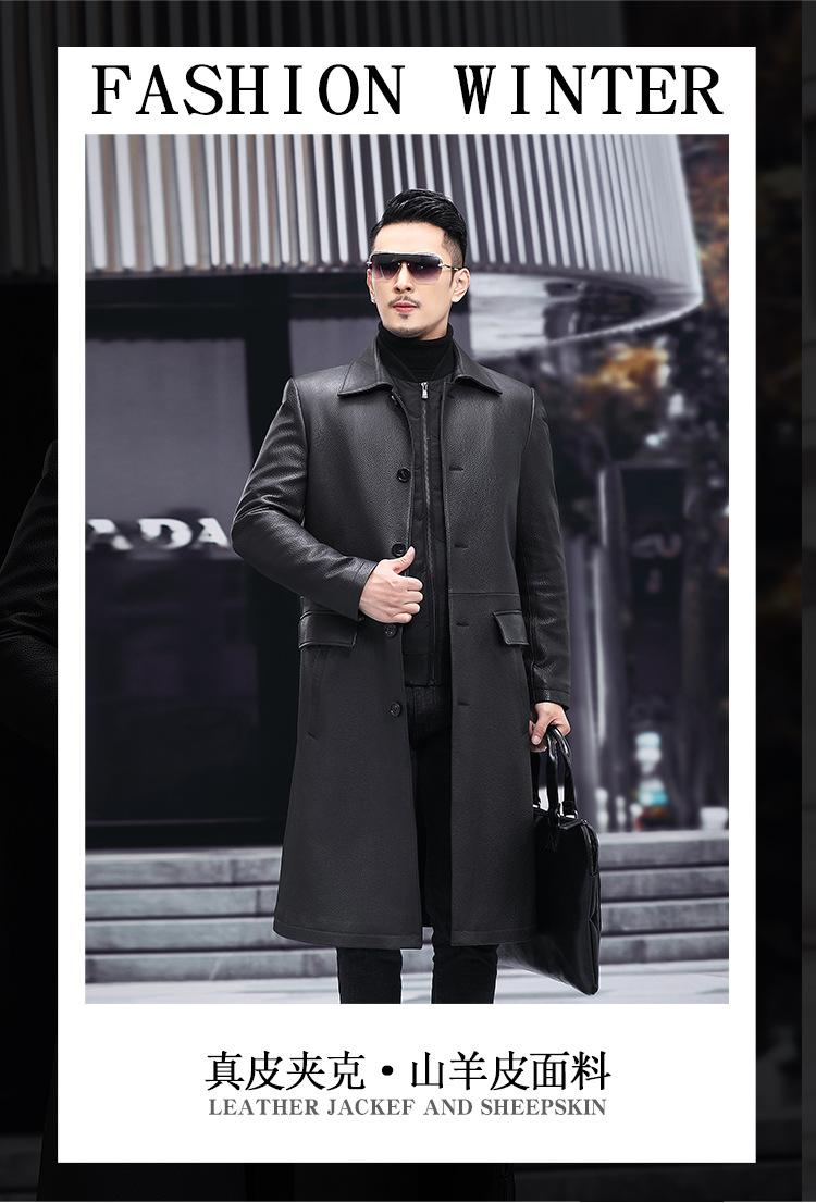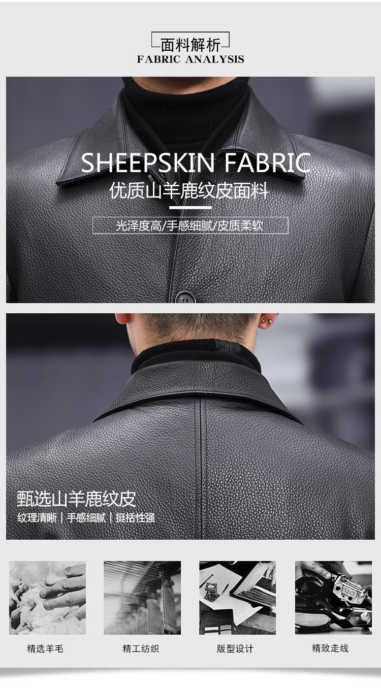 Nueva chaqueta de cuero genuino para hombre, de longitud media, con solapa de cabra y ciervo, de cuero Haining.
