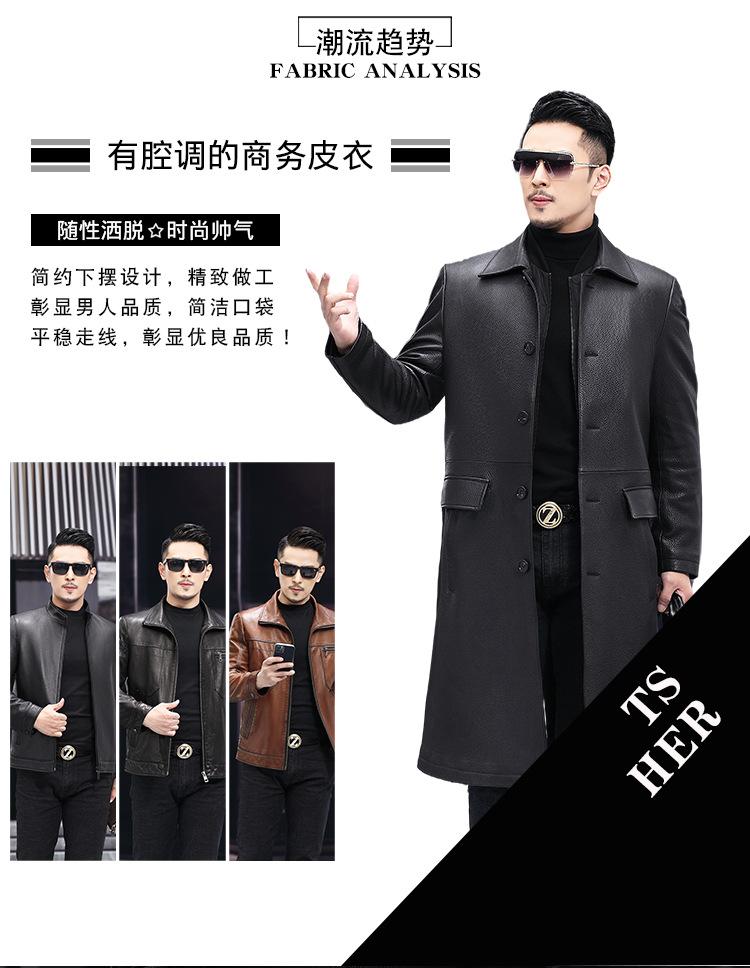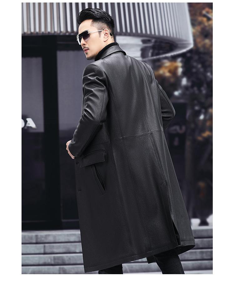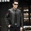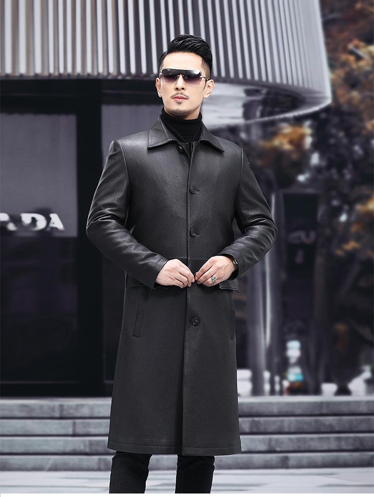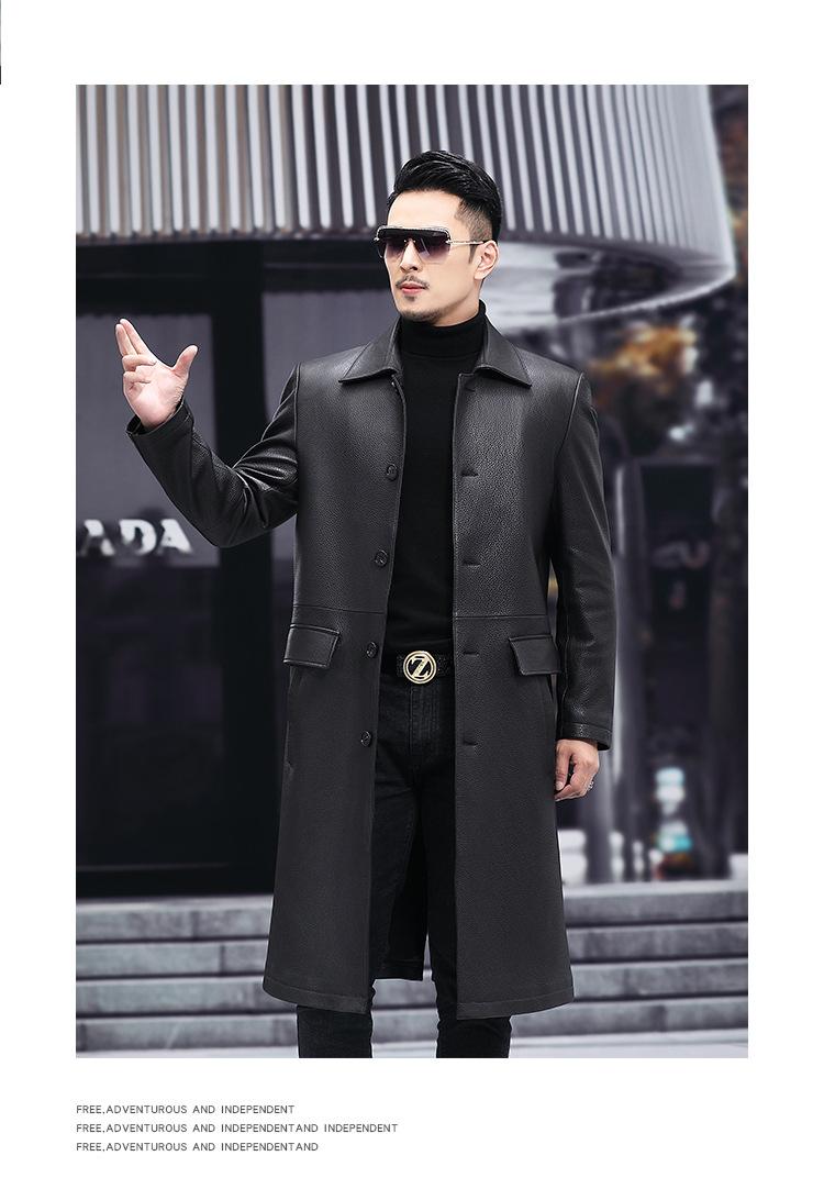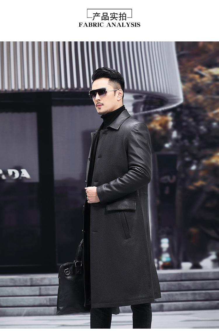 Nueva chaqueta de cuero genuino para hombre, de longitud media, con solapa de cabra y ciervo, de cuero Haining.