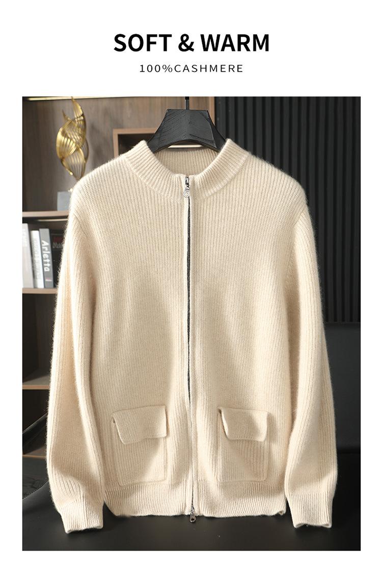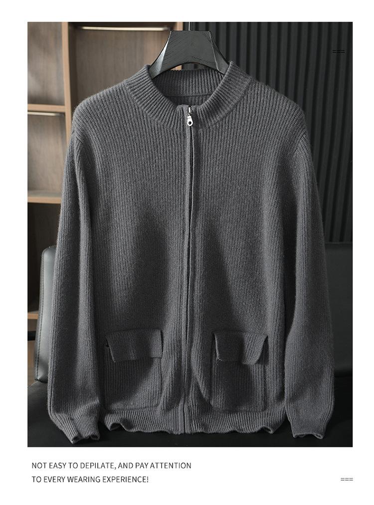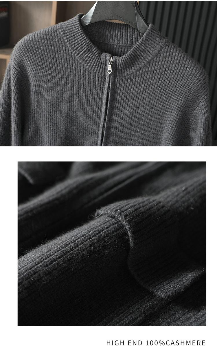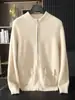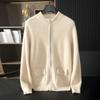 Suéter de otoño e invierno 100% cachemira pura para hombre, suéter de cuello redondo, cárdigan con cremallera, abrigo de color sólido, ropa exterior de punto para ir al trabajo