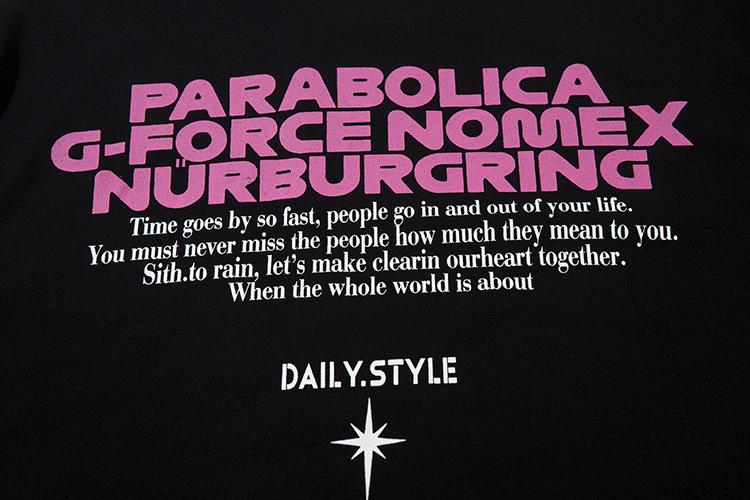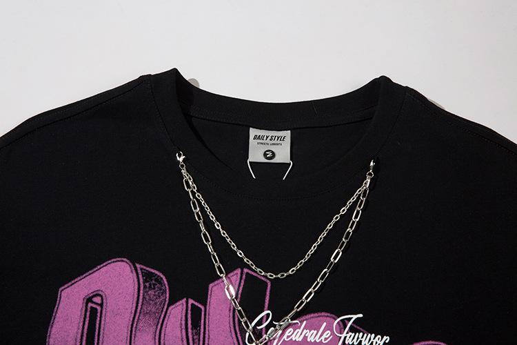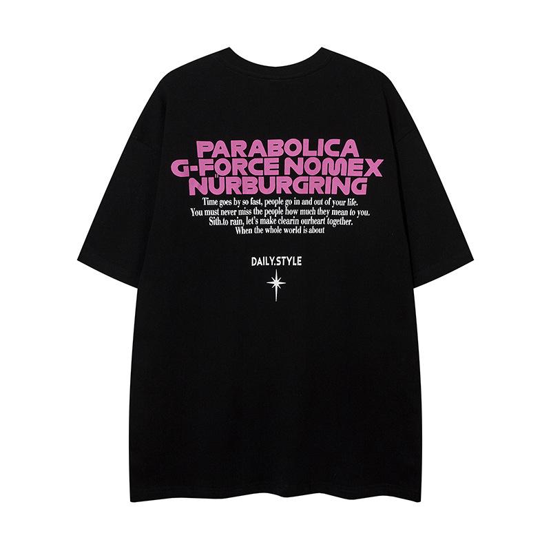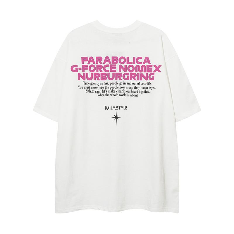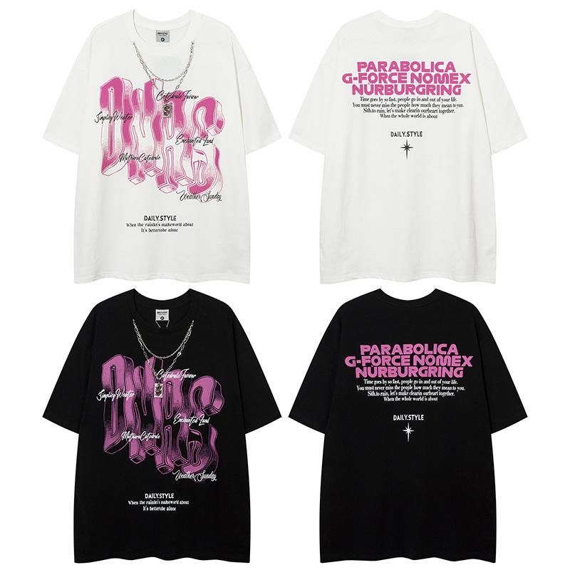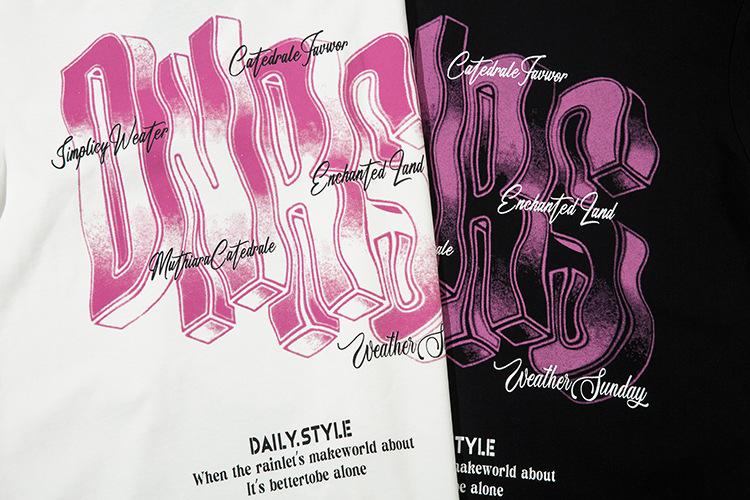 Camiseta de manga corta de estilo americano con cuello redondo y estampado de letras decorativas para jóvenes, camiseta holgada para hombre y mujer.