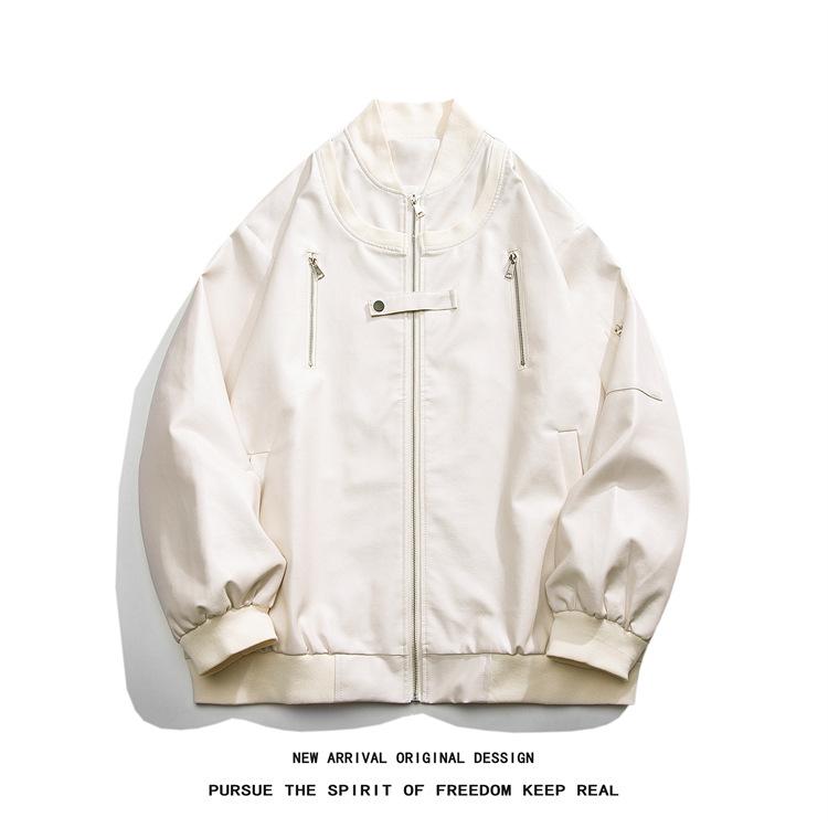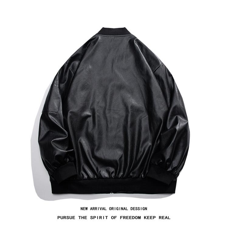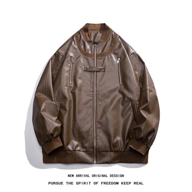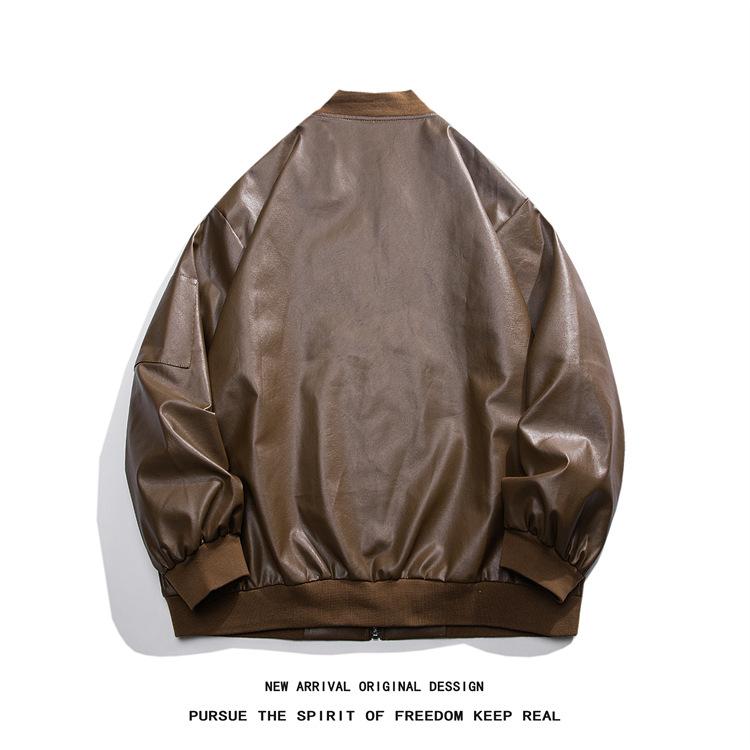 Chaqueta de Cuero de Aviador Retro Estilo Americano Nuevo de Otoño e Invierno para Hombre Chaqueta de Cuero Sintético con Cuello Vertical Suelto y a la Moda para Hombre Cuero PU