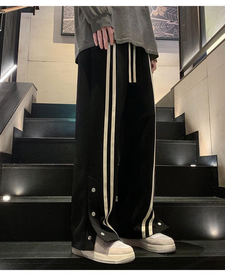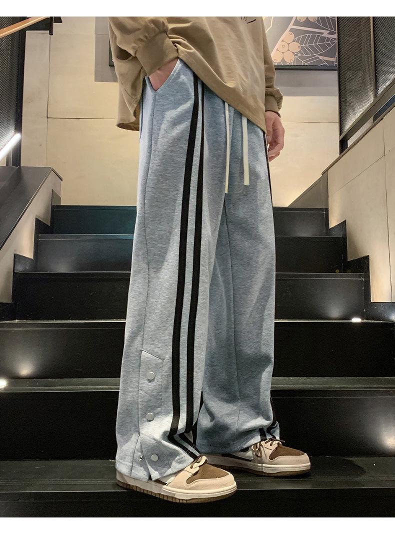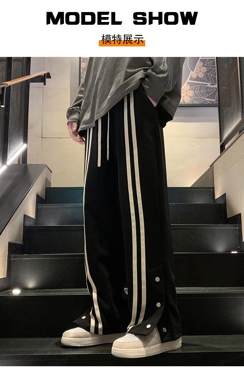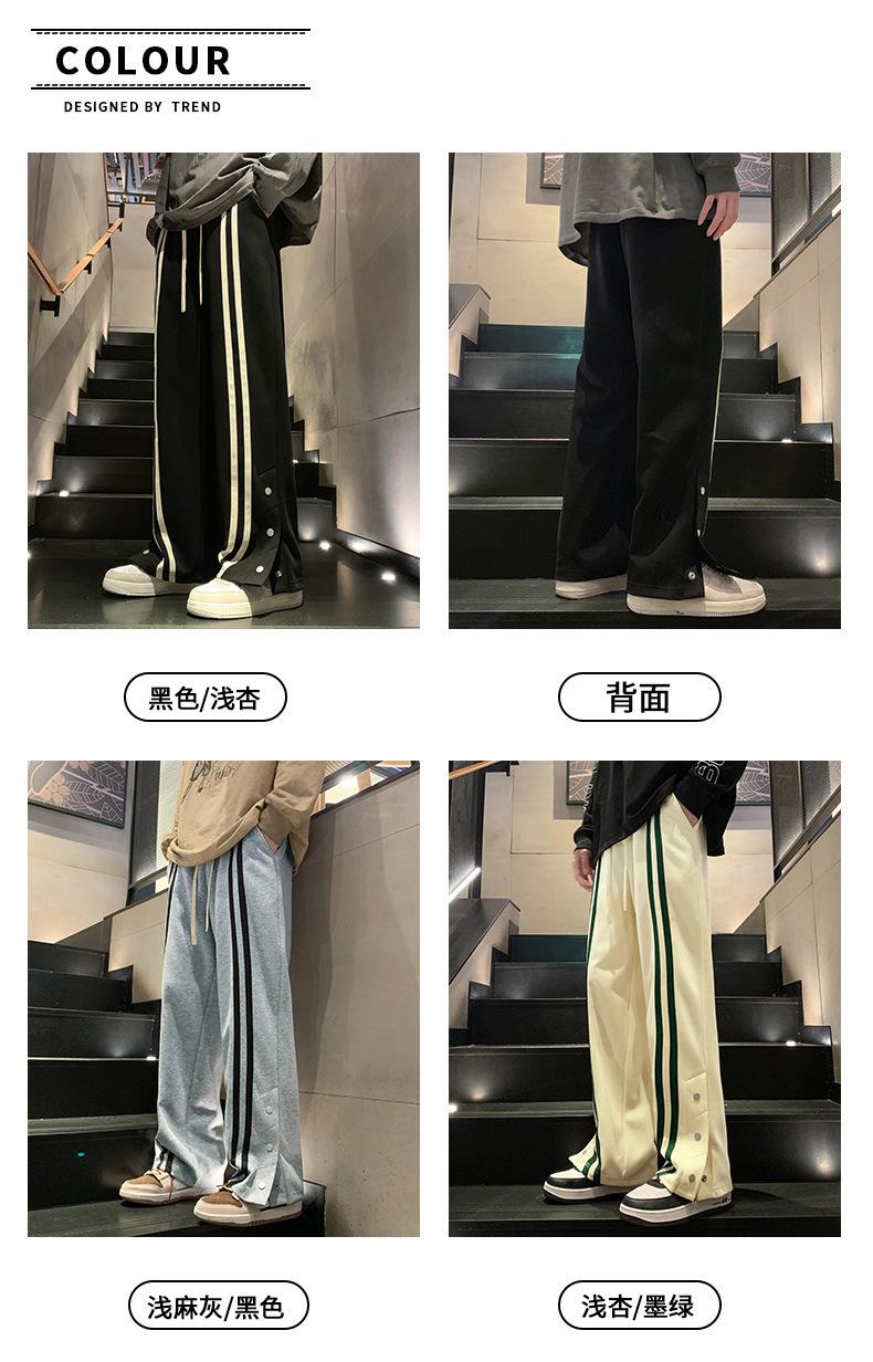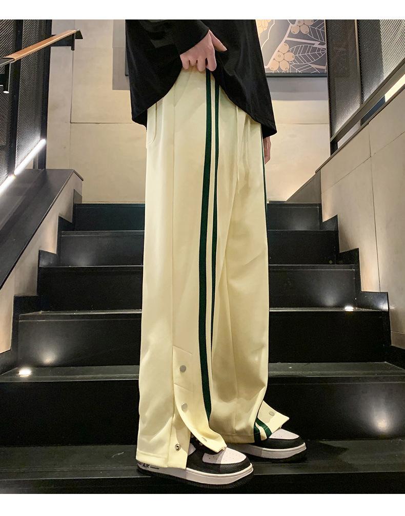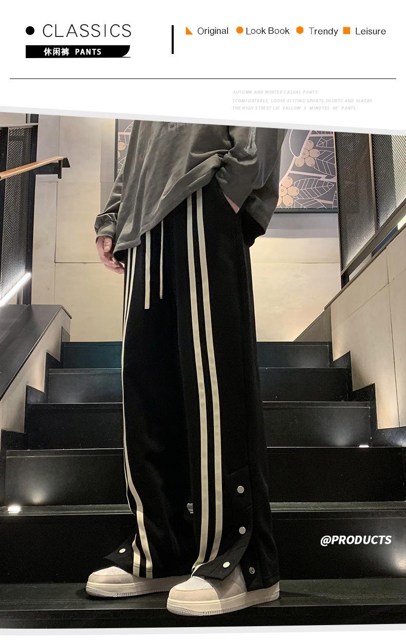 Otoño e Invierno nuevos pantalones casuales para hombre marca de moda coreana a rayas con pechera pantalones rectos holgados drapeados de pierna ancha