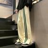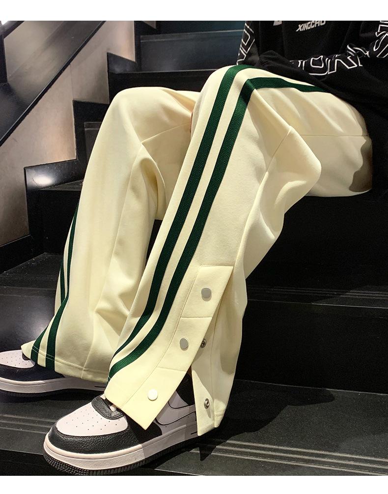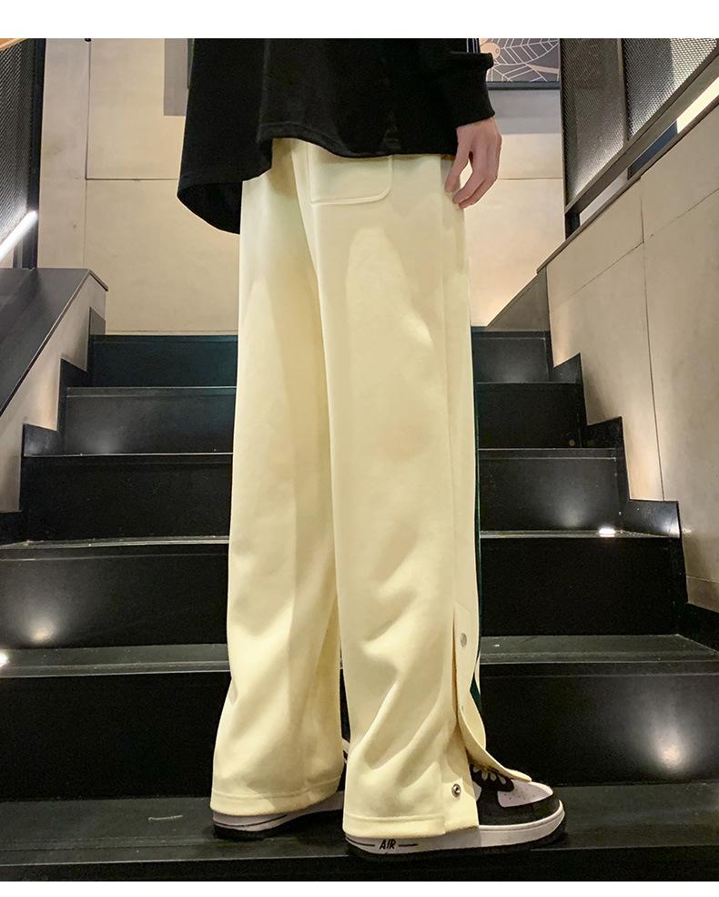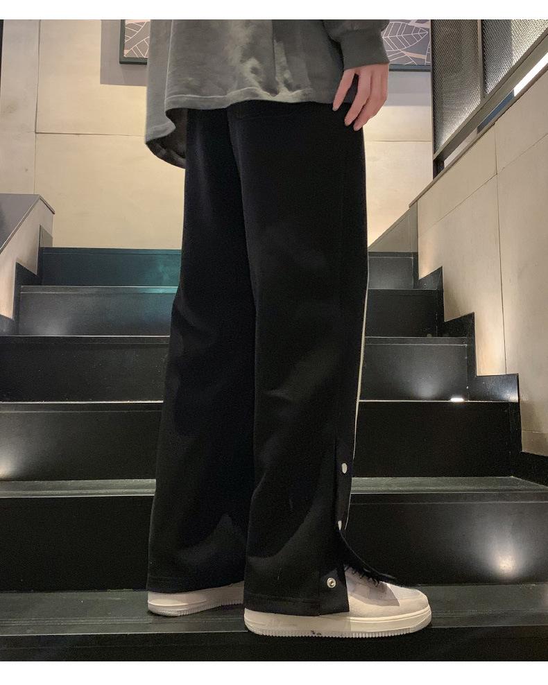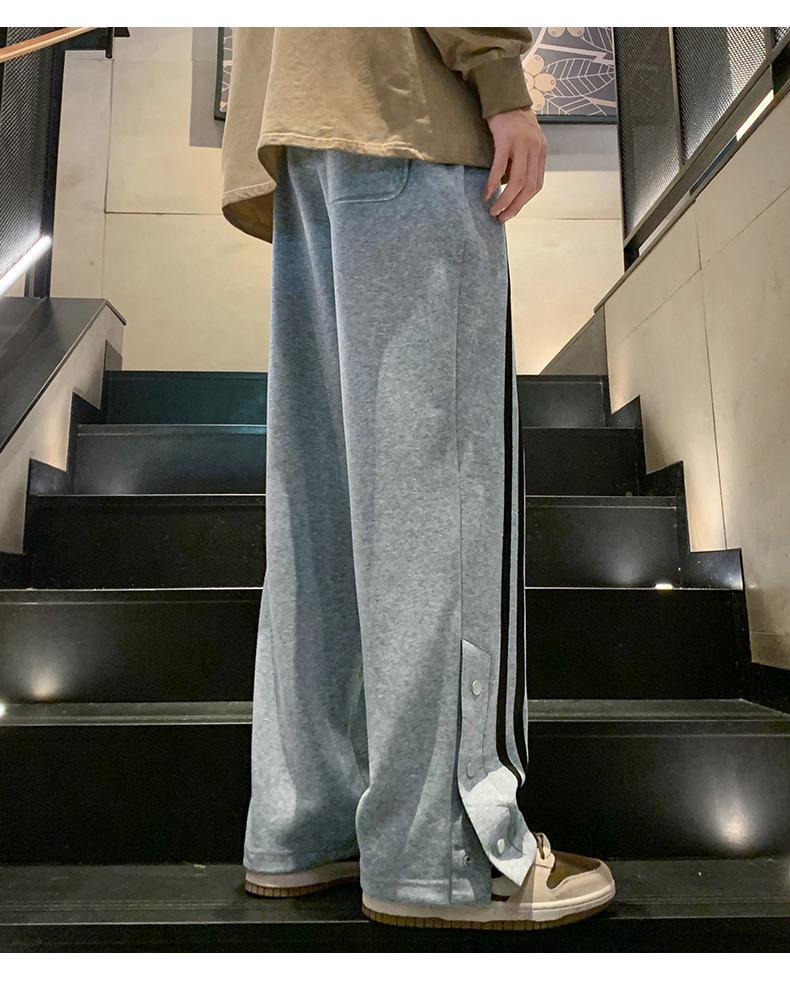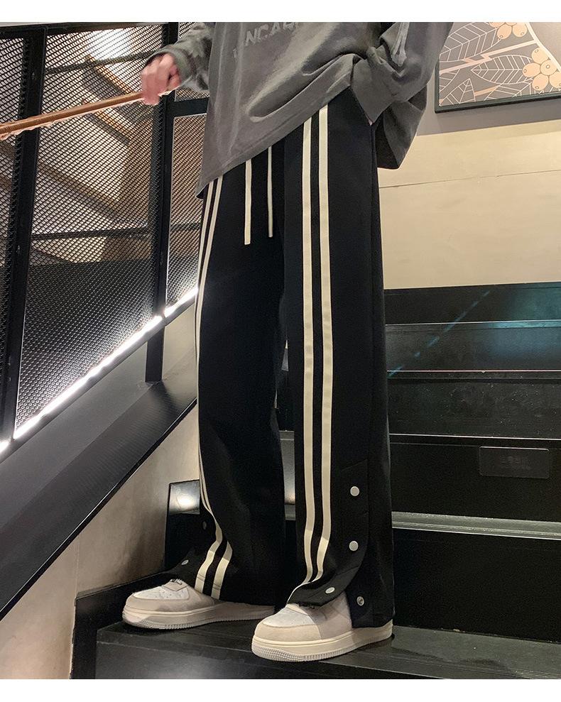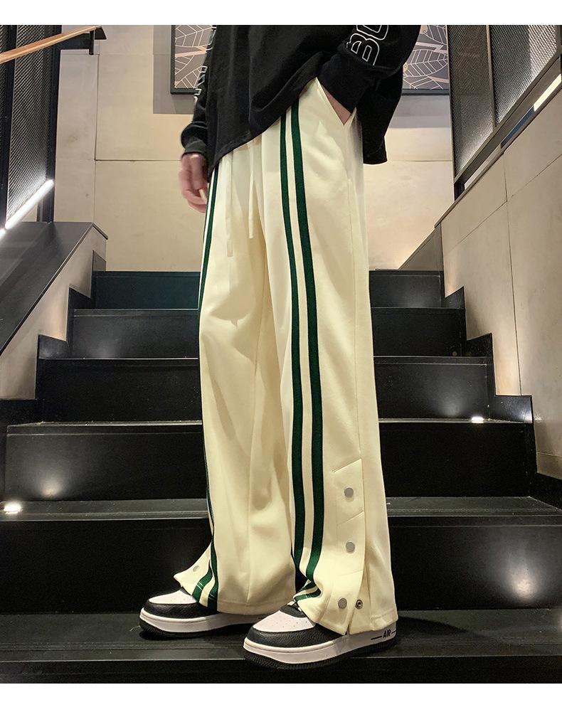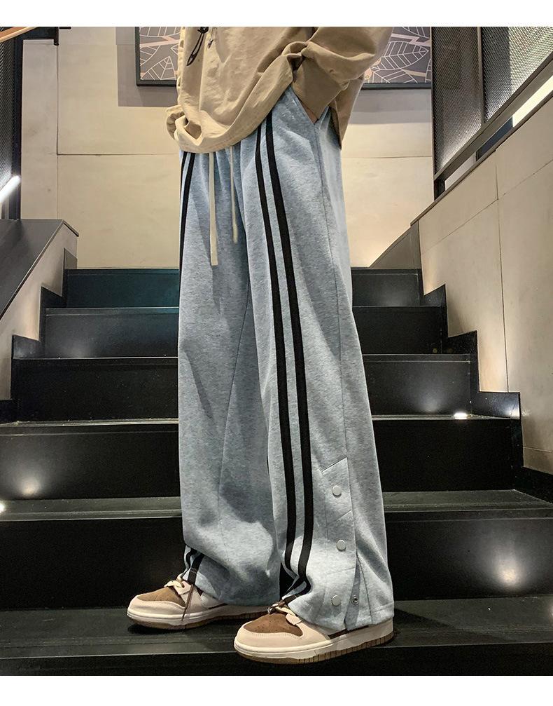 Otoño e Invierno nuevos pantalones casuales para hombre marca de moda coreana a rayas con pechera pantalones rectos holgados drapeados de pierna ancha