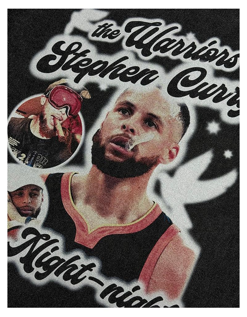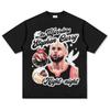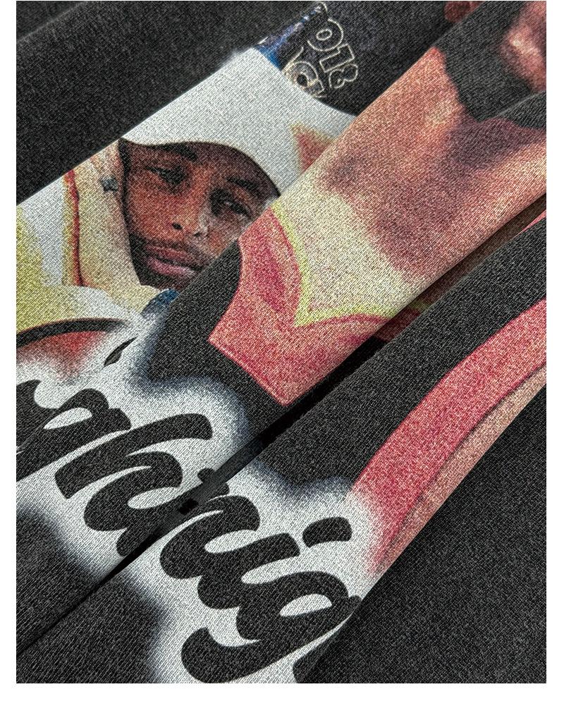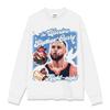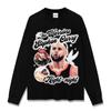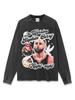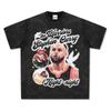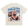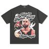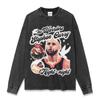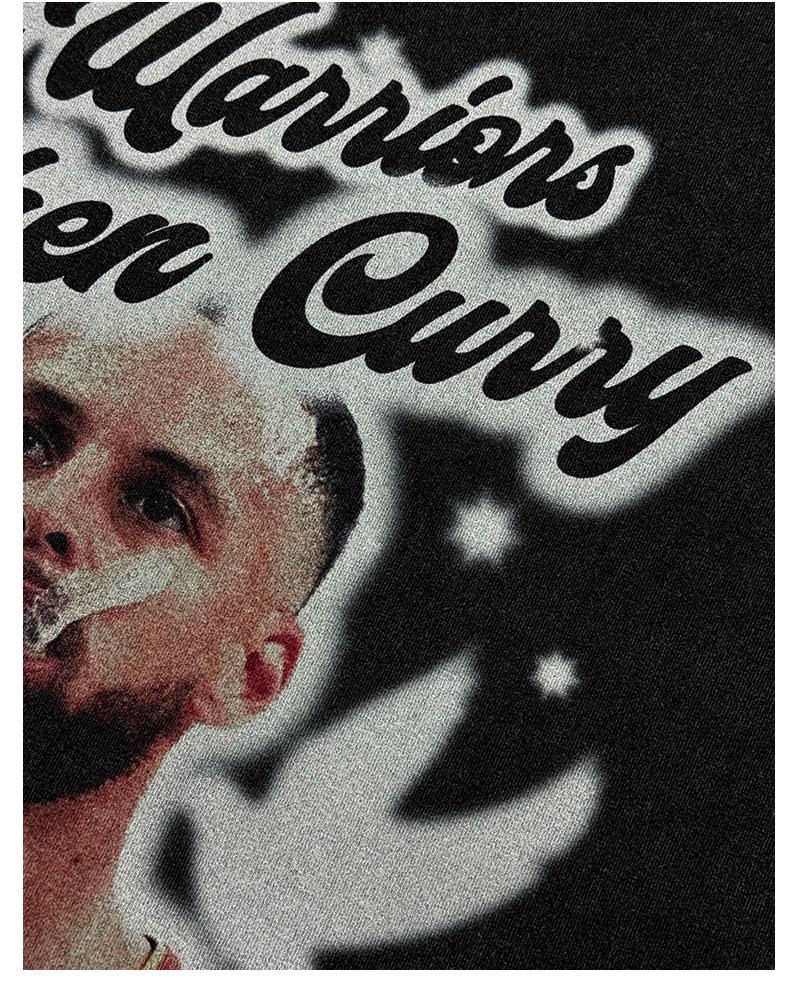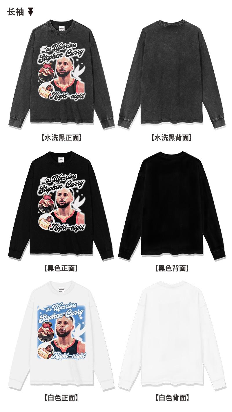 Camiseta de manga larga y manga corta estilo americano de calle alta con estampado de curry transfronterizo, lavada antigua, pesada, cuello pequeño, marca de moda
