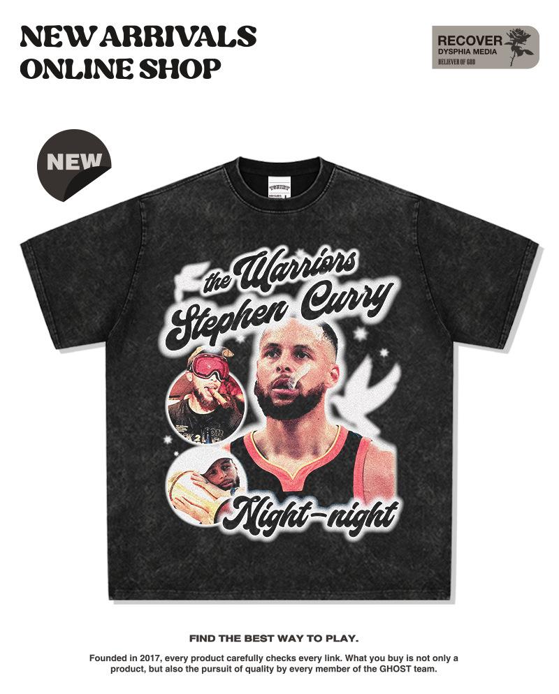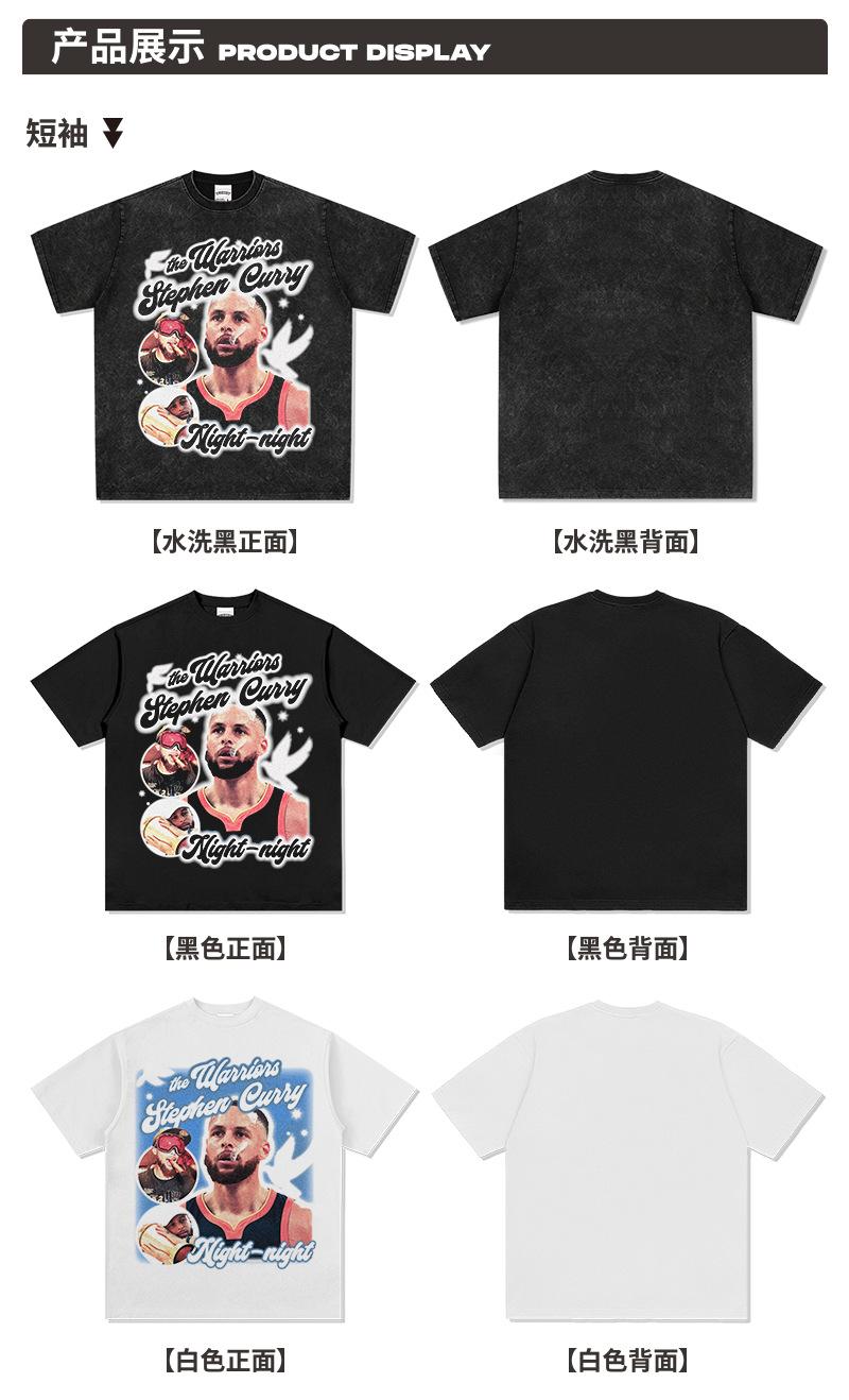 Compra Camiseta de manga larga y manga corta estilo americano de calle alta con estampado de curry transfronterizo, lavada antigua, pesada, cuello pequeño, marca de moda al por mayor en Joom.pro