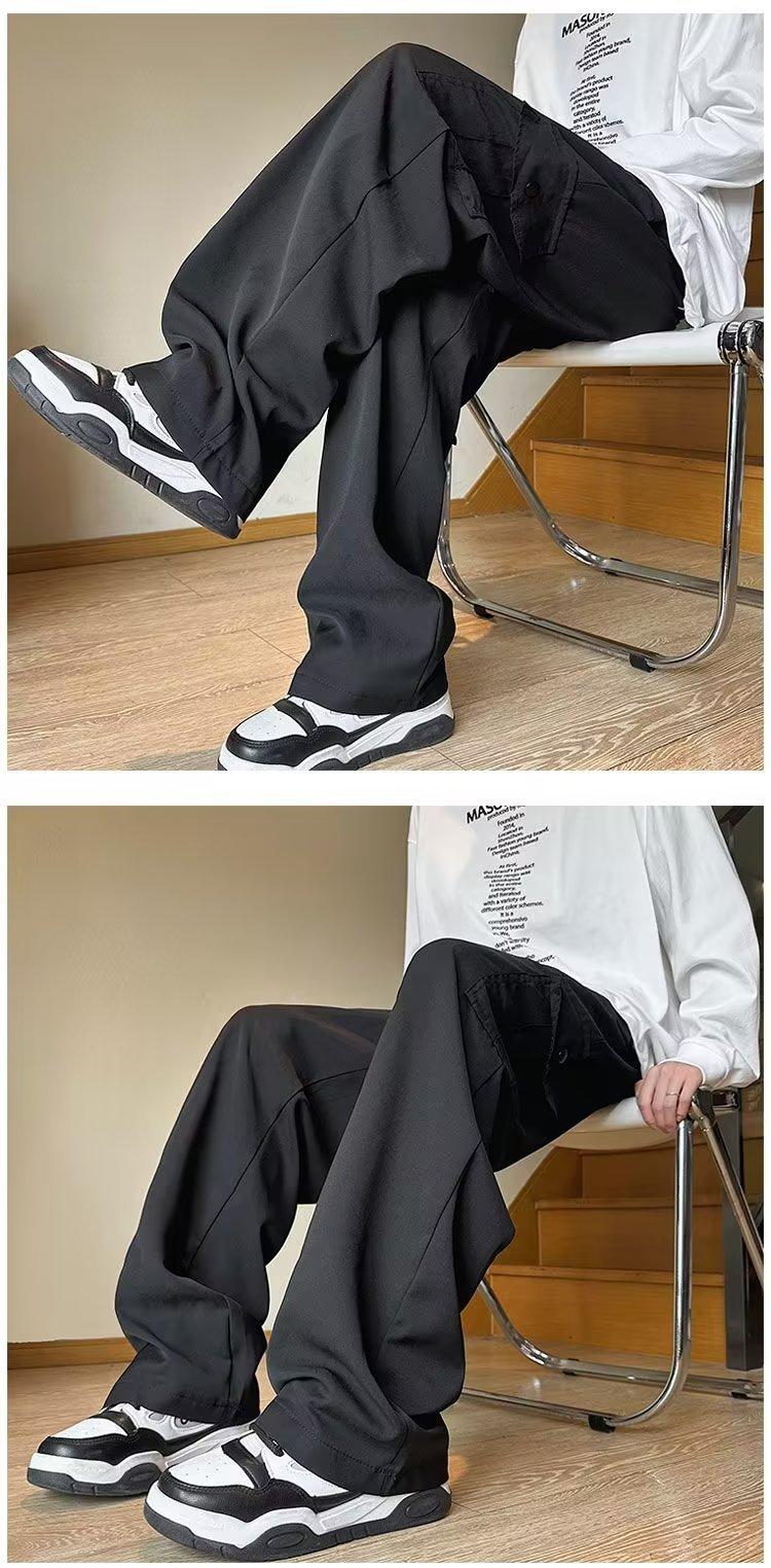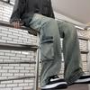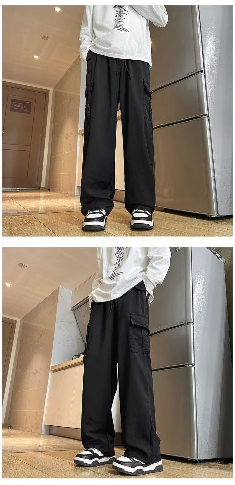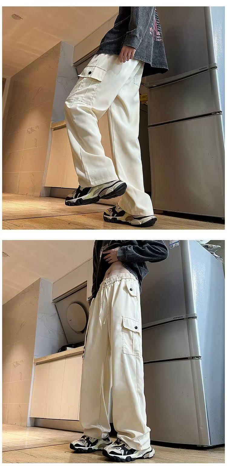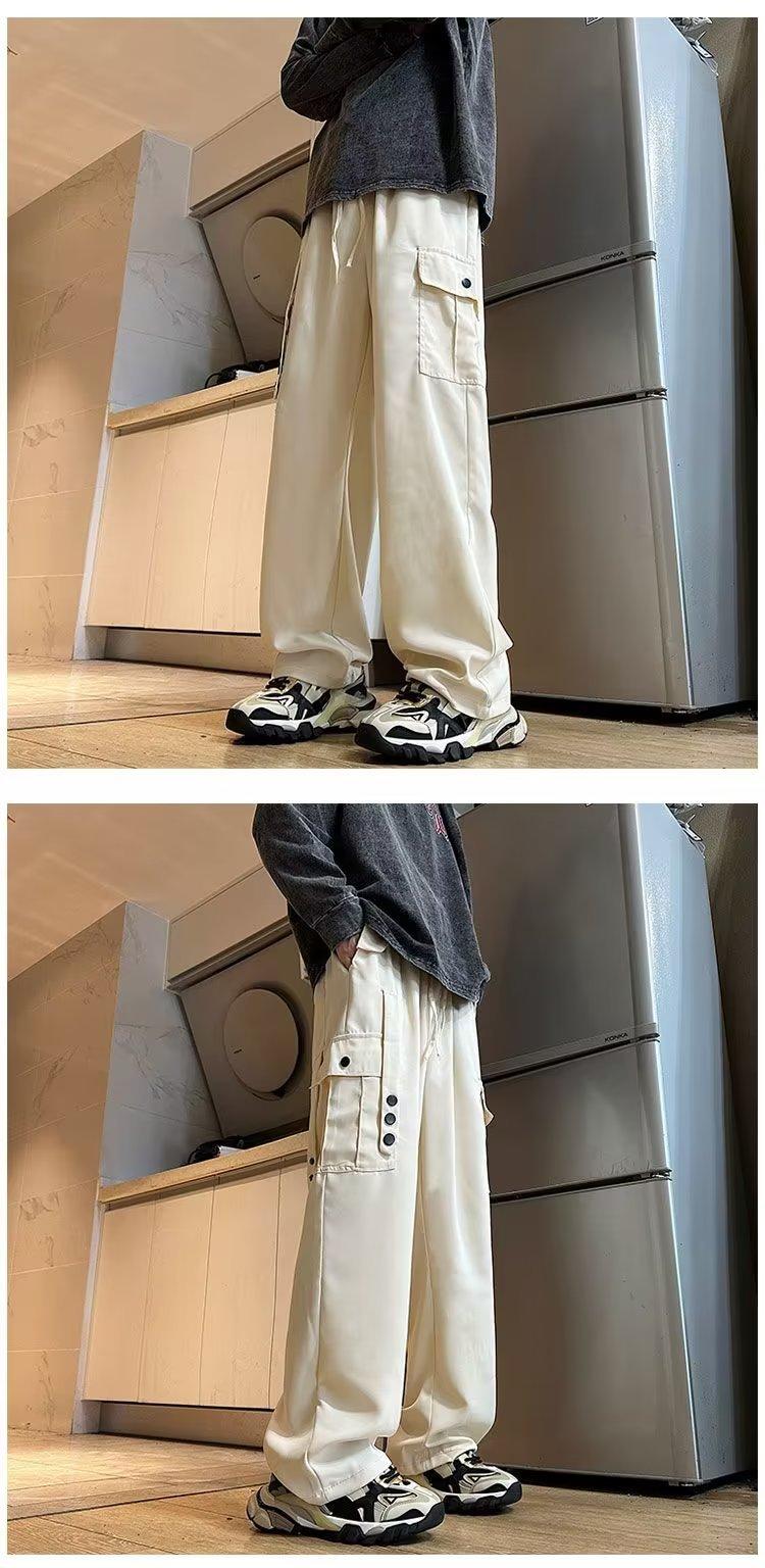 Mono estilo americano para hombre, pantalones largos rectos y sueltos de calle alta de otoño, pantalones casuales elegantes con volantes y múltiples bolsillos de marca de moda