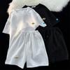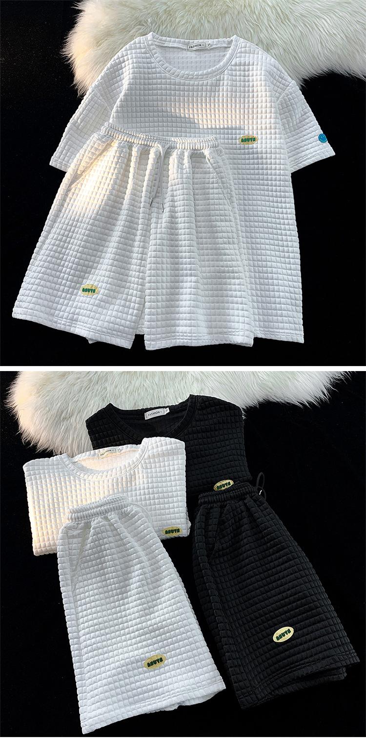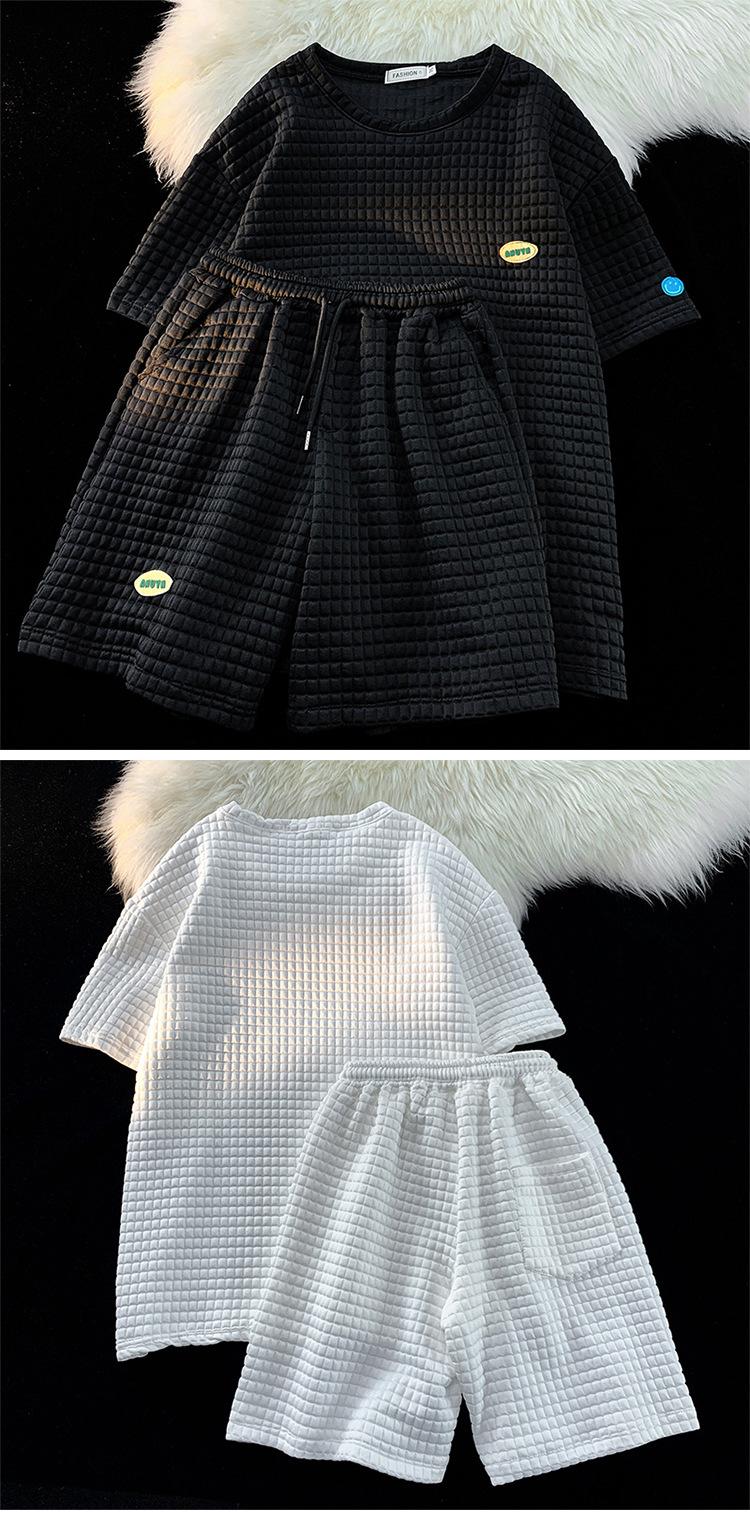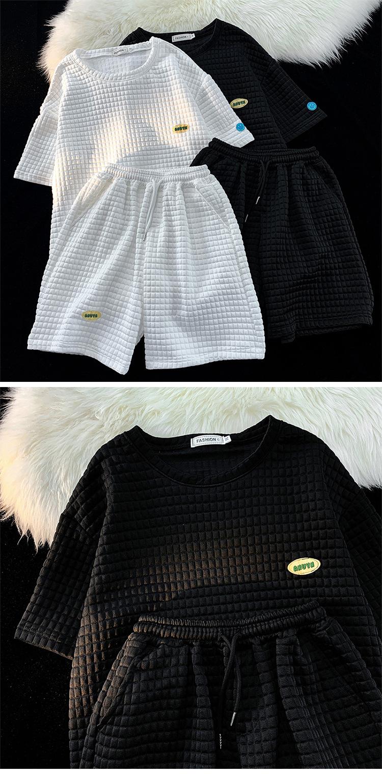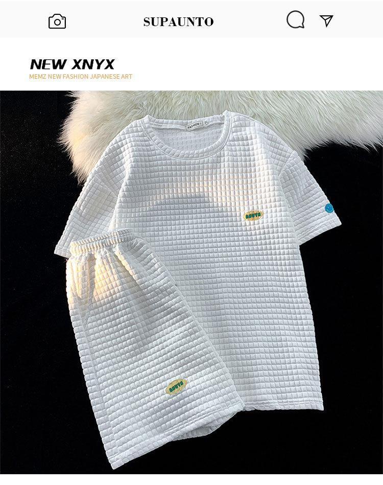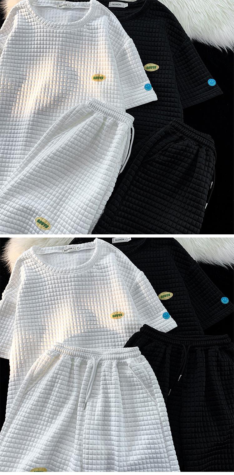 Traje de verano para hombre, moderno, elegante, holgado, a cuadros, camiseta de manga corta, pantalones cortos deportivos de pierna ancha, conjunto de dos piezas