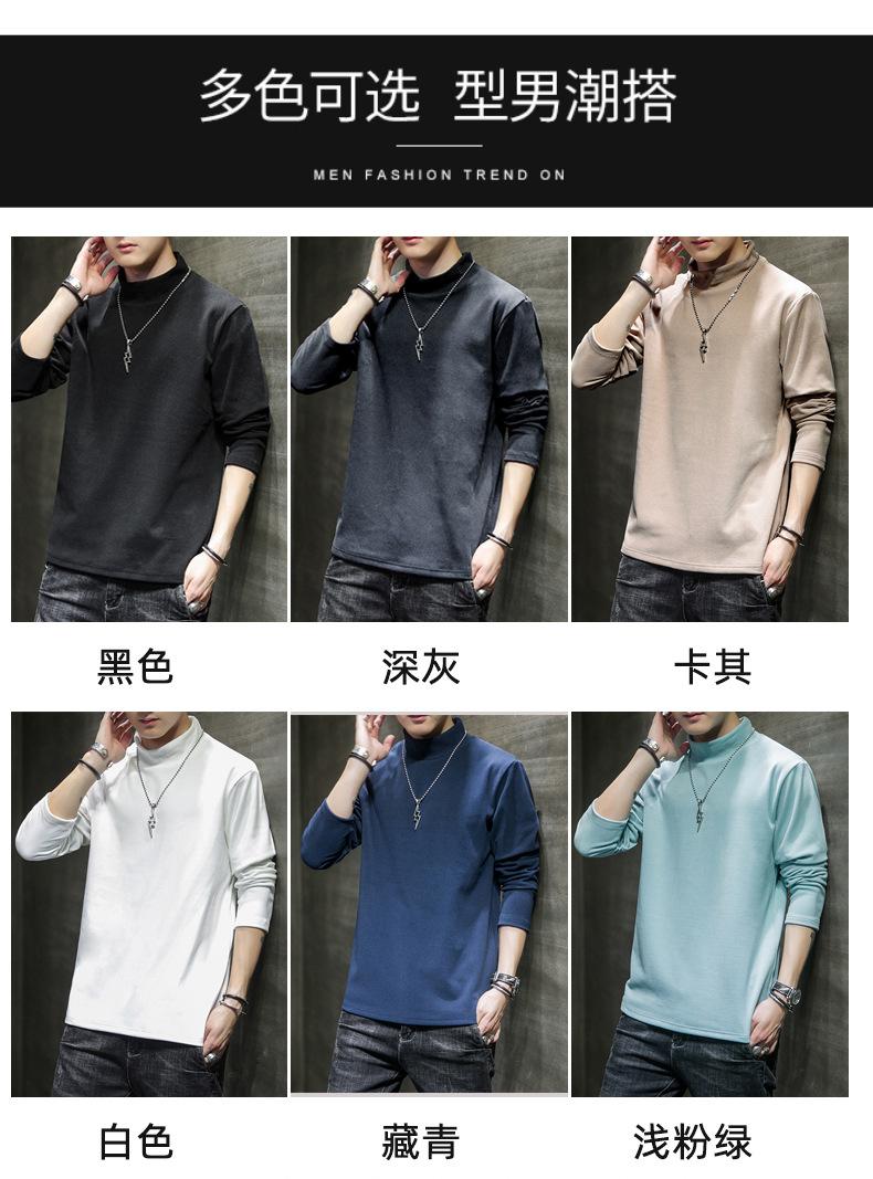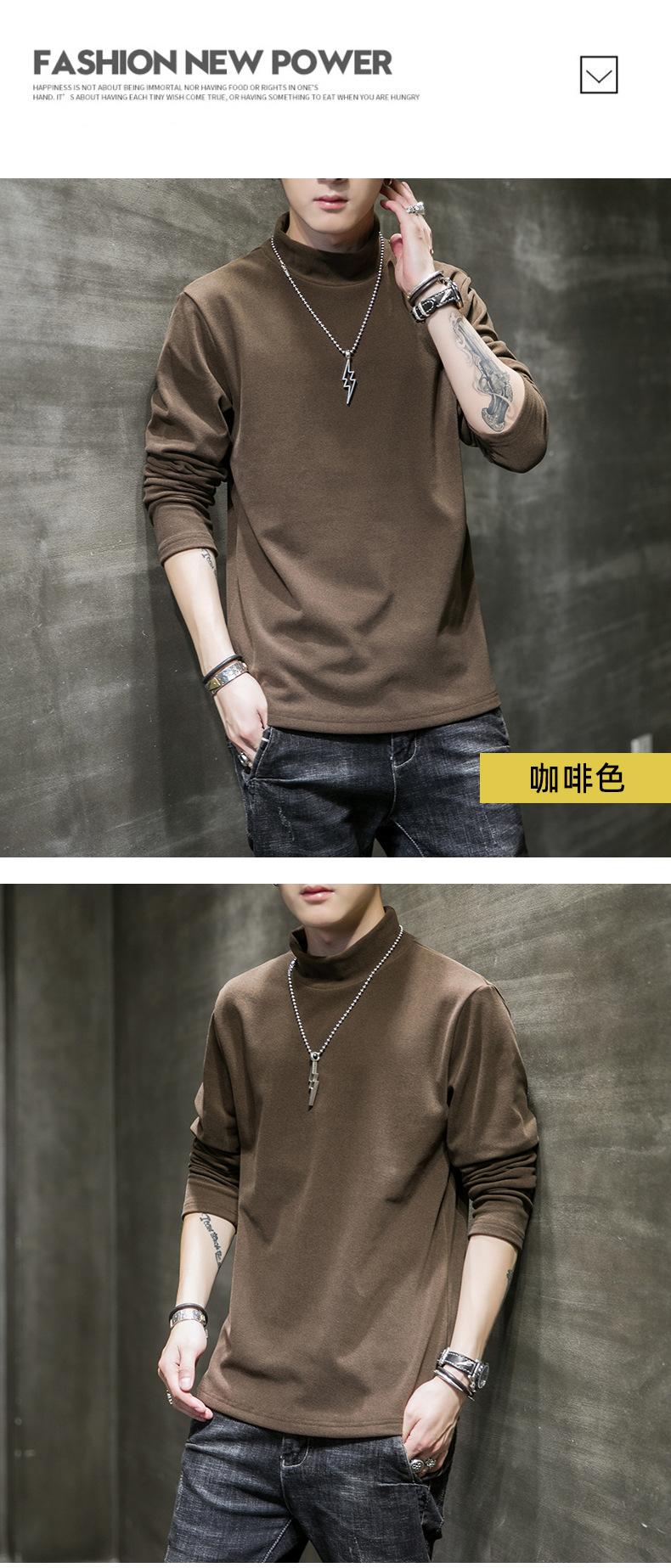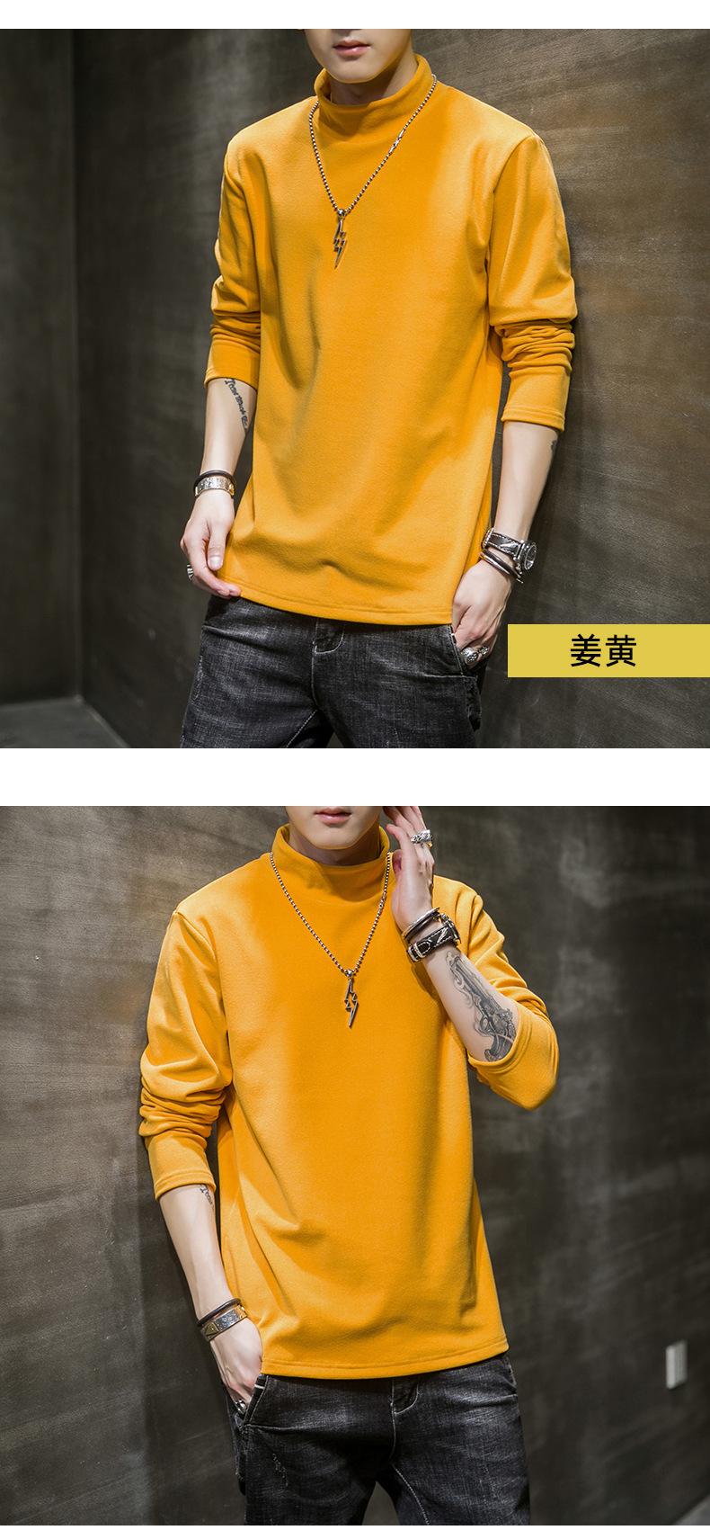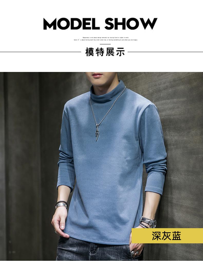 2025 Nueva Camiseta de Manga Larga de Otoño e Invierno para Hombre Estilo Coreano Trendy Terciopelo de Conejo Cuello Medio Tortuga Color Sólido Camiseta de Manga Larga Dropshipping