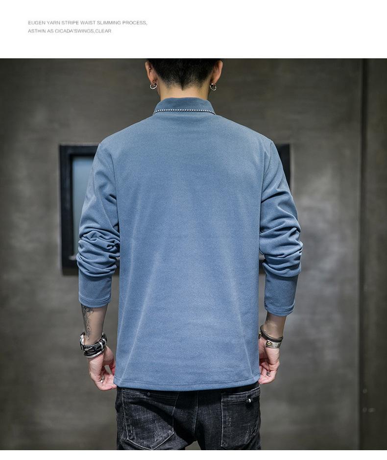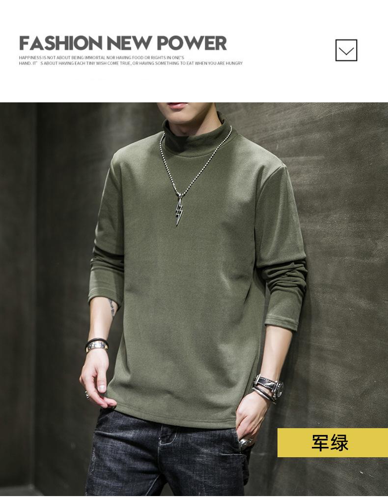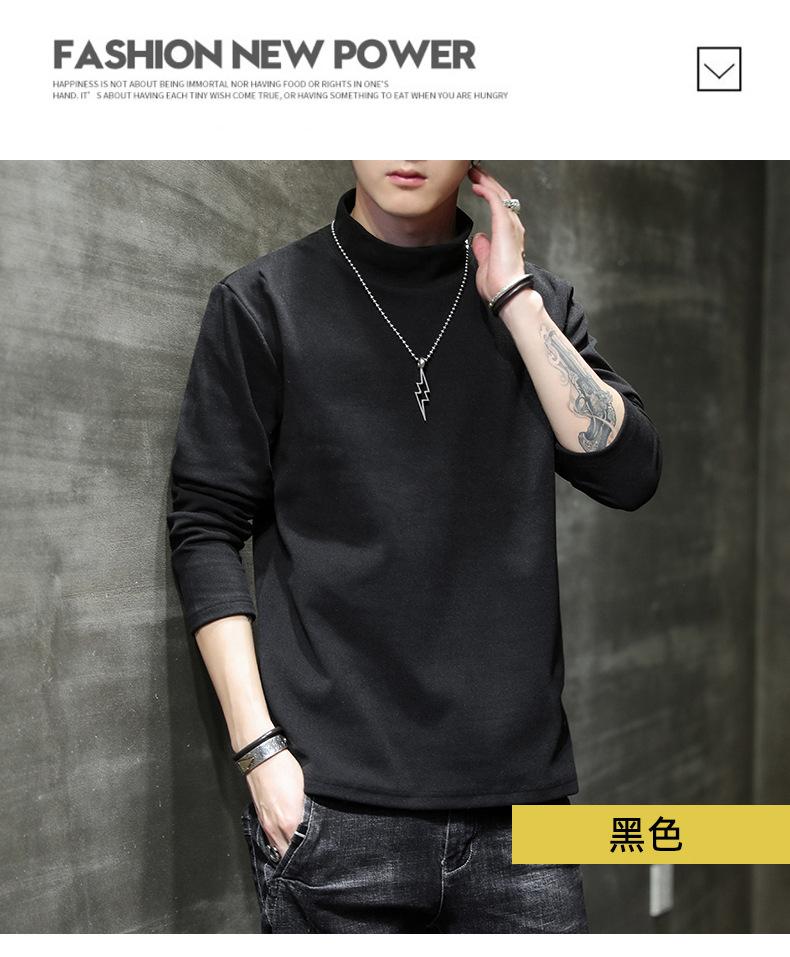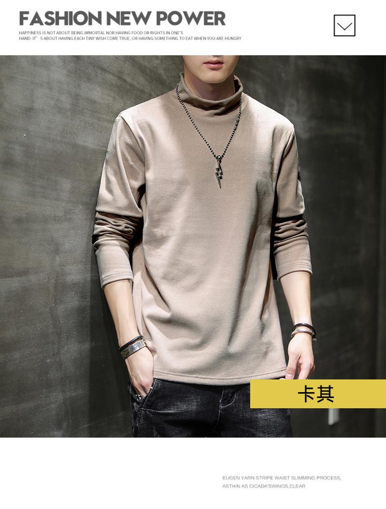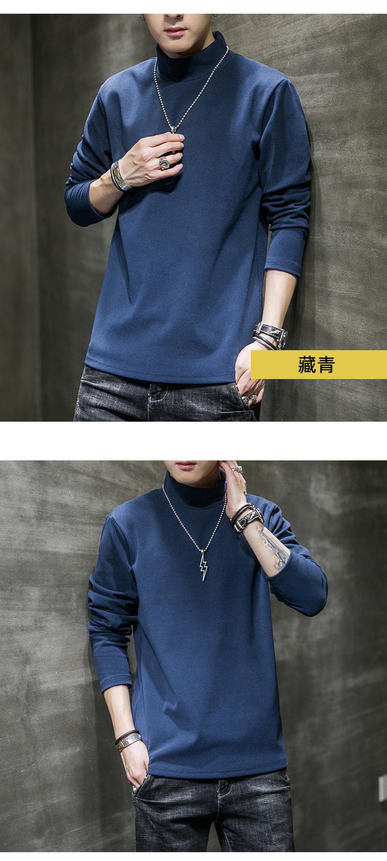 2025 Nueva Camiseta de Manga Larga de Otoño e Invierno para Hombre Estilo Coreano Trendy Terciopelo de Conejo Cuello Medio Tortuga Color Sólido Camiseta de Manga Larga Dropshipping