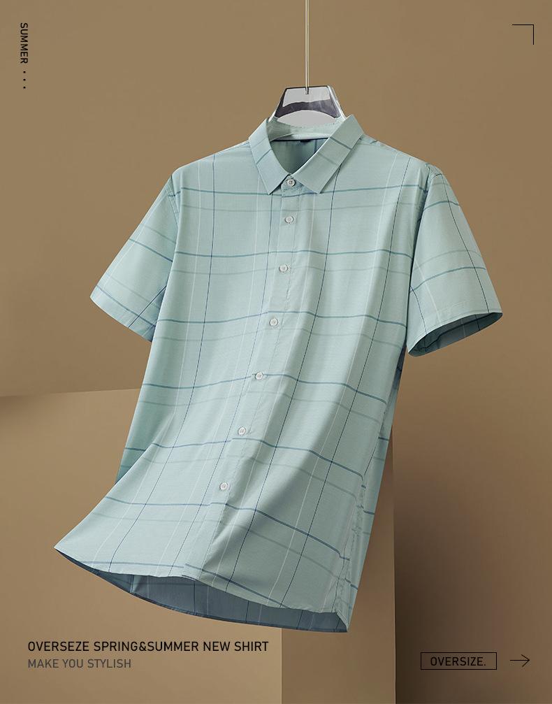 Compra Camisa de manga corta para hombre de talla grande, de verano, fina, holgada, informal, de fibra de bambú, a cuadros, para hombres gordos al por mayor en Joom.pro