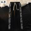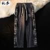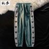 Pantalones de pana con cordón ajustable en los tobillos para hombre y mujer, estilo retro americano, de marca de moda urbana, holgados, de pierna ancha y rectos, deportivos