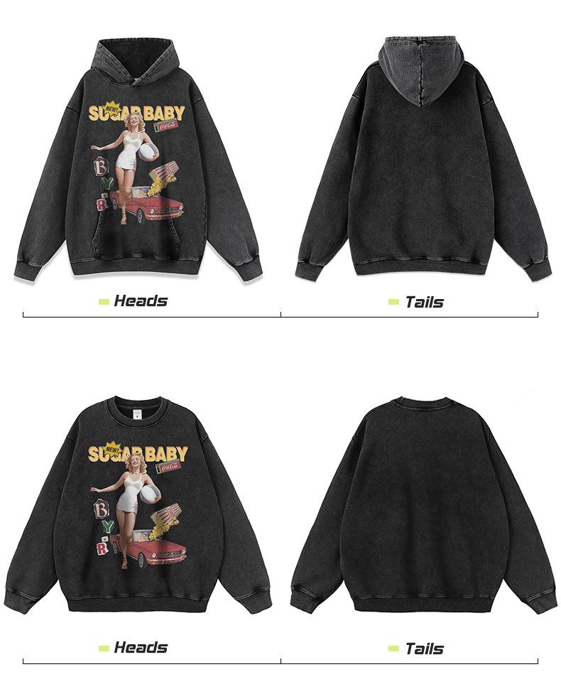 Suéter con capucha viejo, lavado pesado, de marca de moda callejera de hip-hop estilo americano, para hombres y mujeres, sudadera holgada de manga larga de gran tamaño