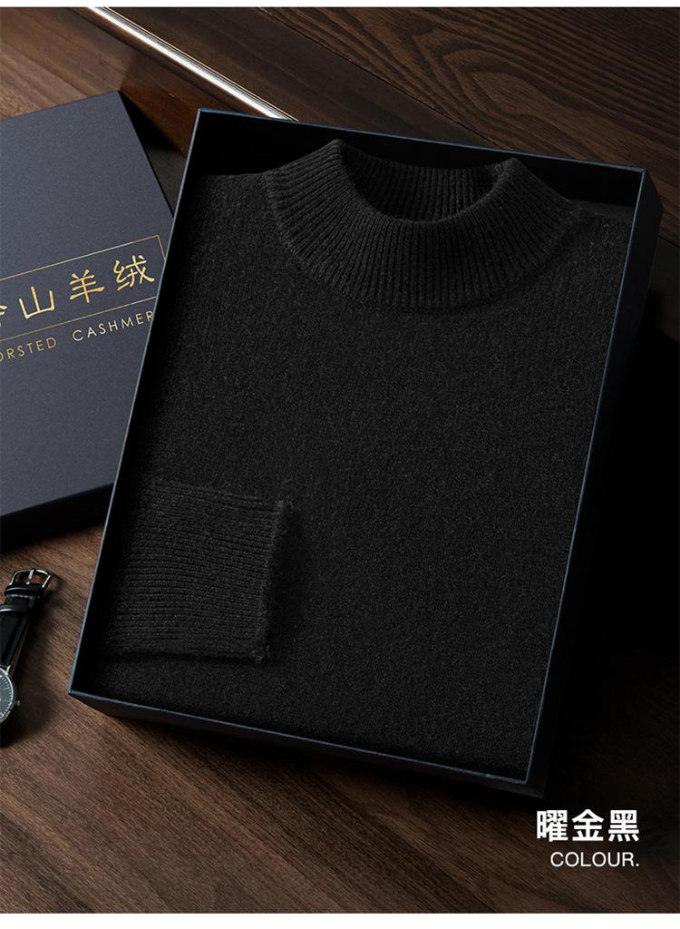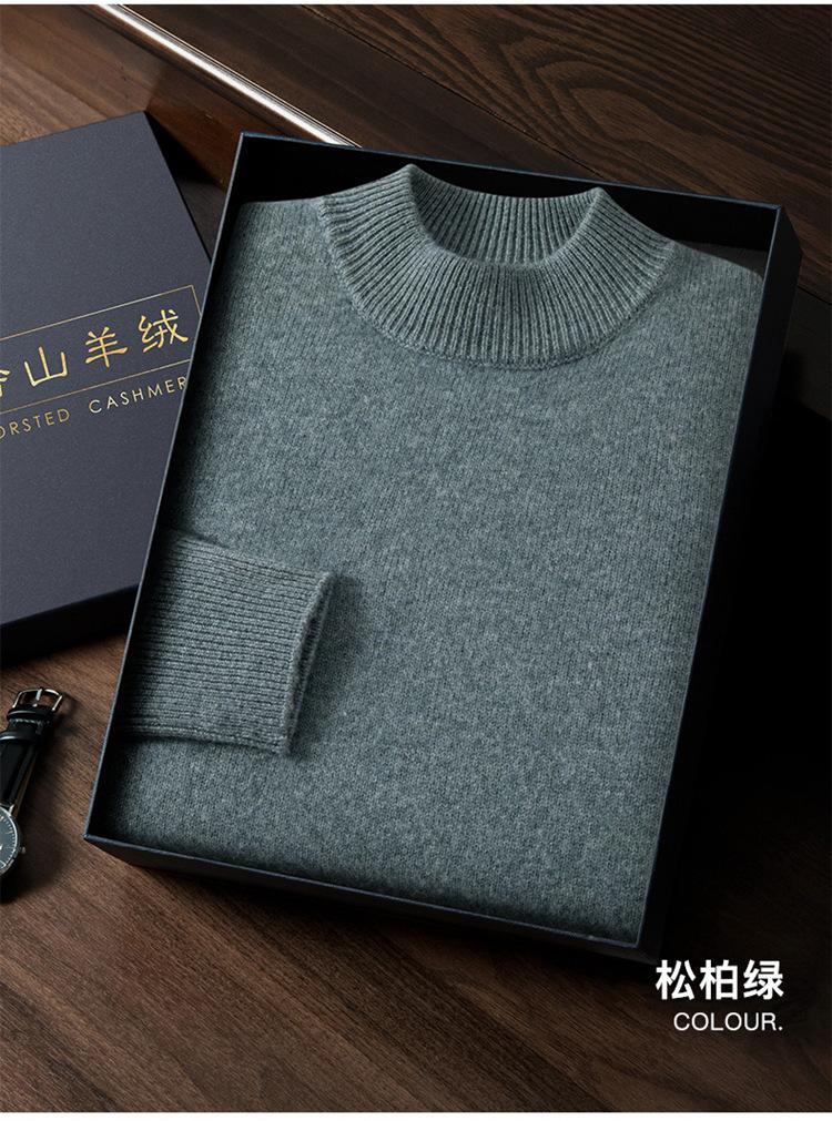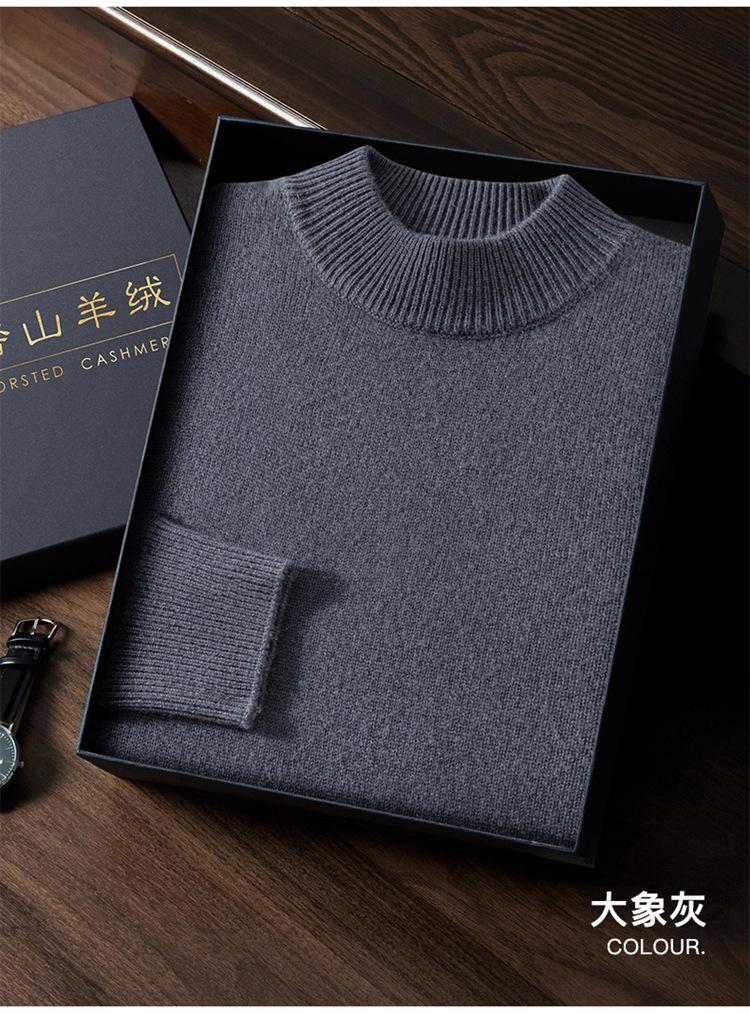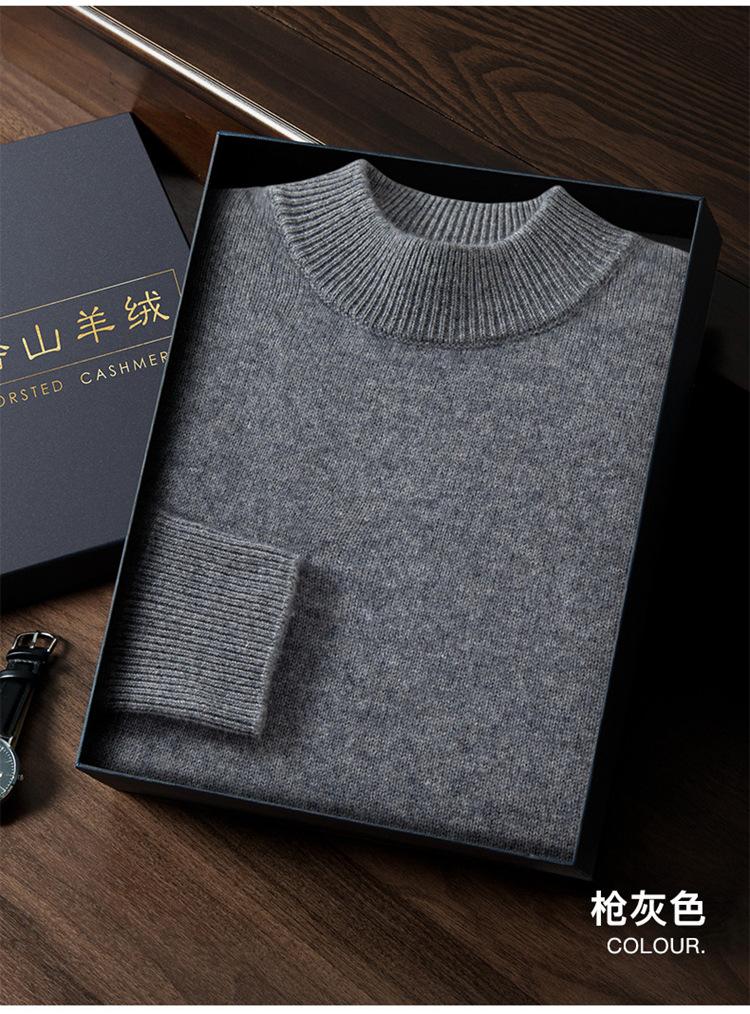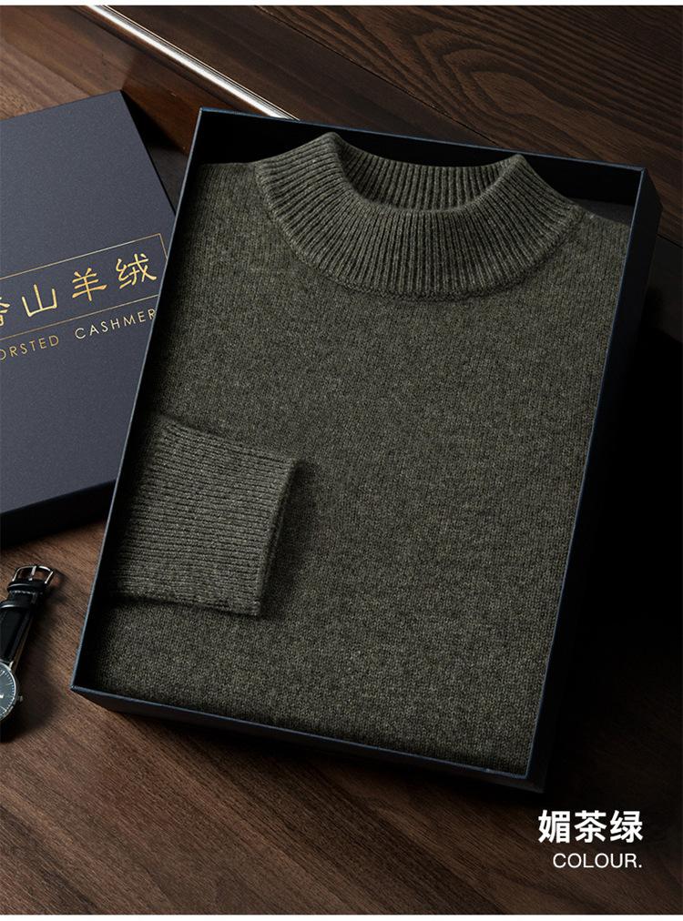 Suéter de cachemira para hombre, suéter exterior, suéter de cuello redondo semialto, suéter de invierno grueso, cálido, camisa de fondo de lana, moda superior