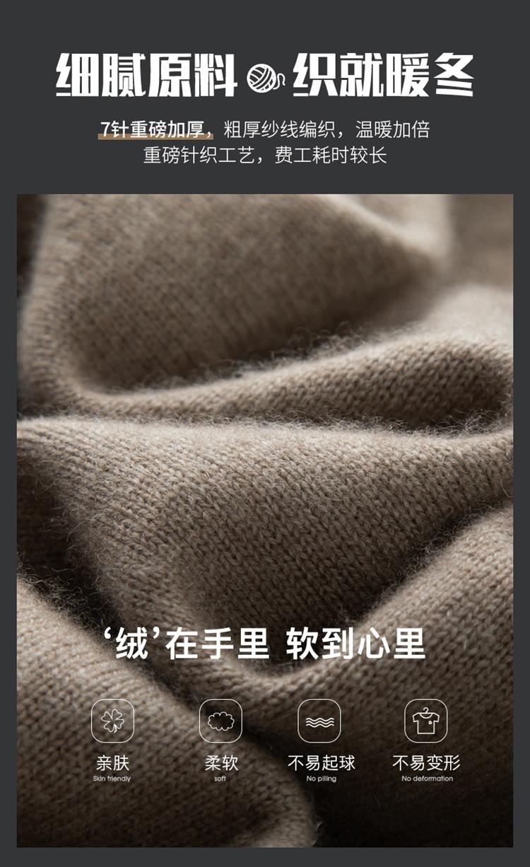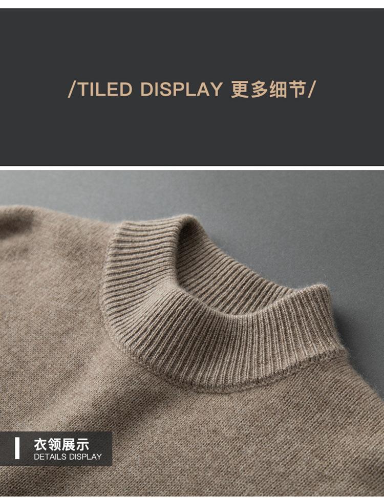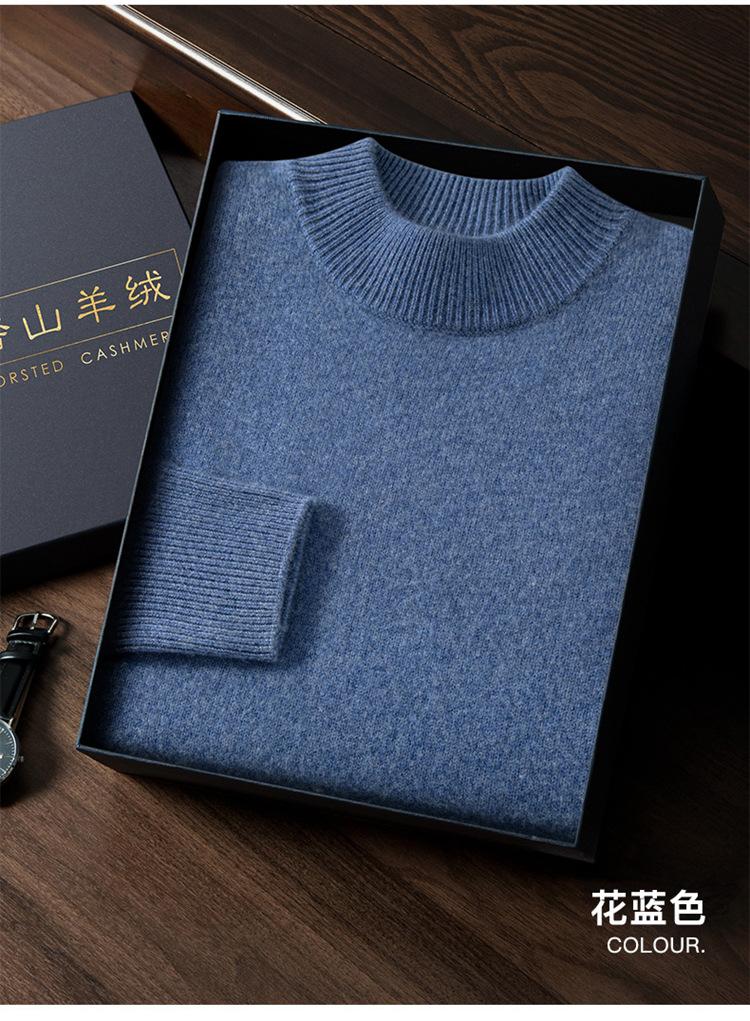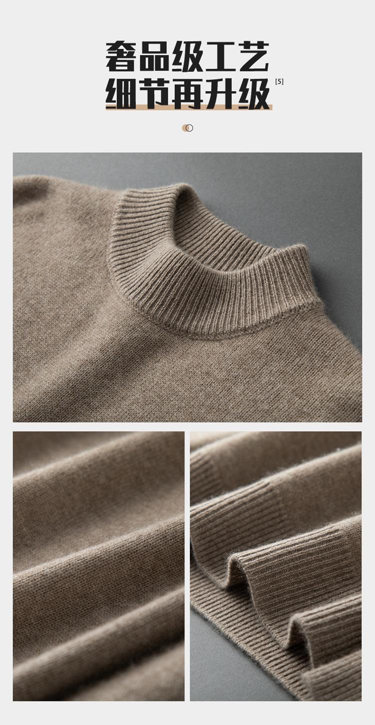 Suéter de cachemira para hombre, suéter exterior, suéter de cuello redondo semialto, suéter de invierno grueso, cálido, camisa de fondo de lana, moda superior