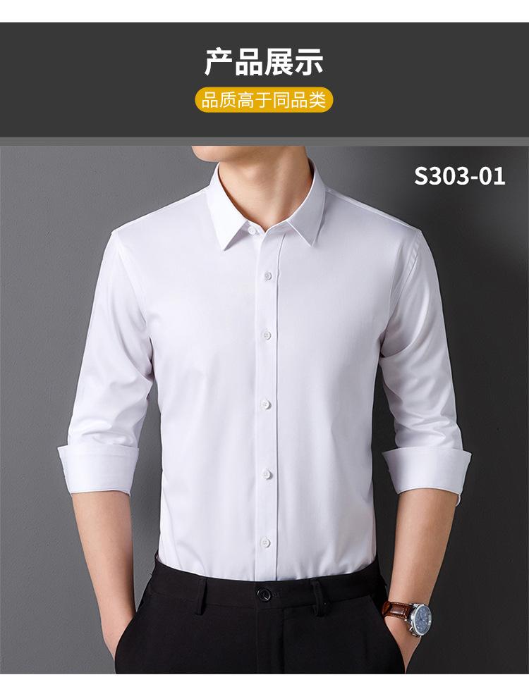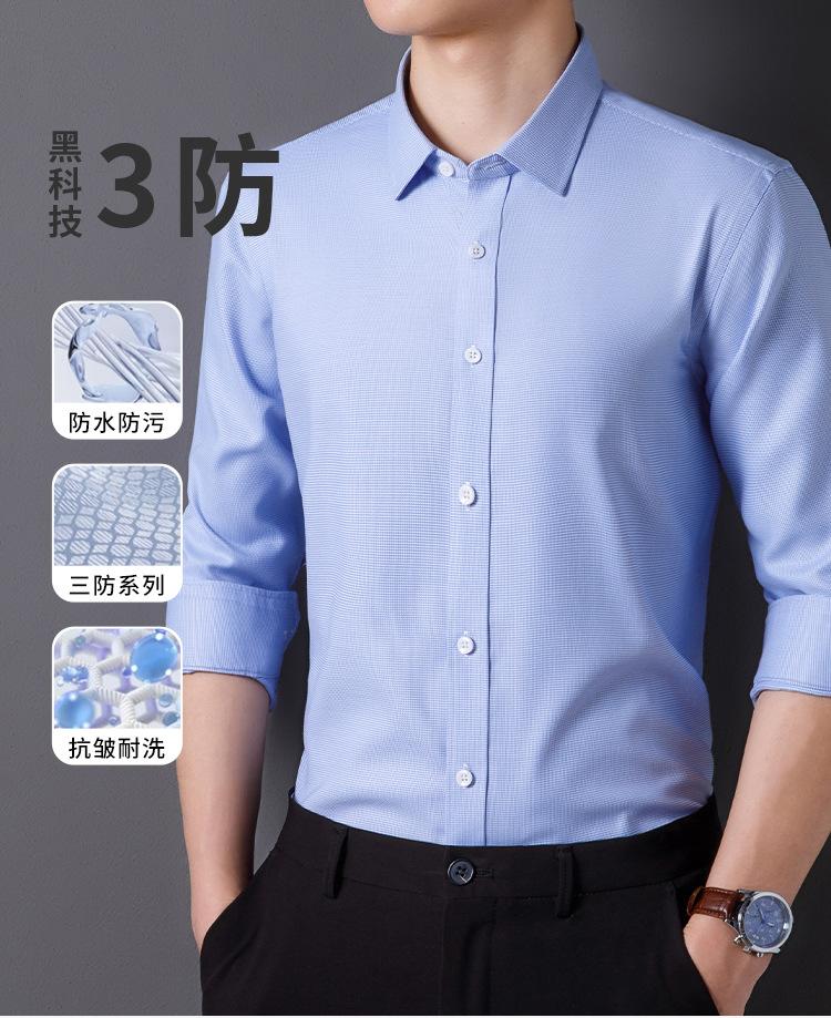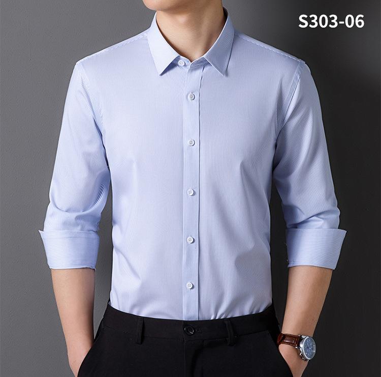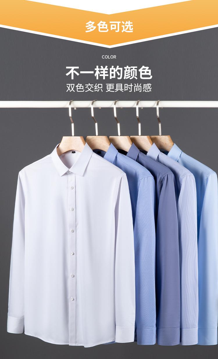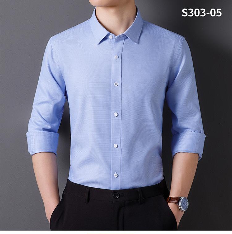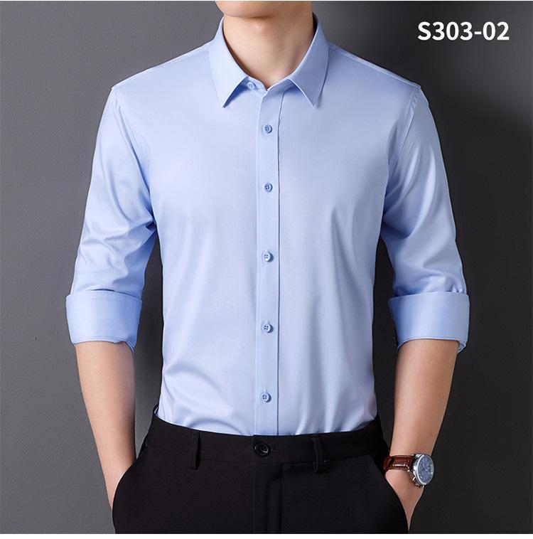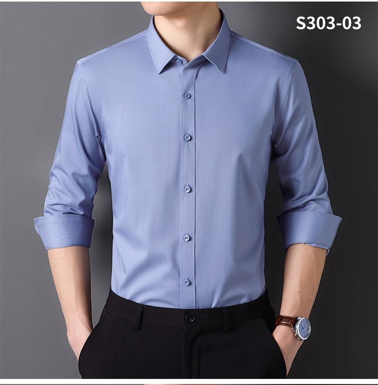 Camisa de tres capas de primavera y otoño para hombre, de manga larga, de negocios, de fibra de bambú, elástica, sin planchado.
