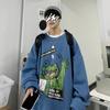 Sudadera para Hombre Primavera Nueva Americana Retro Estampado de Gamuza Cuello Redondo Manga Larga Camiseta Base Estilo Estudiantil Trendy