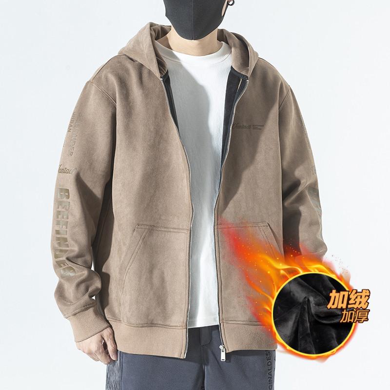 Cárdigan con forro polar para hombre, nuevo, otoño e invierno de 2023, combinable con todo, para uso diario juvenil, cárdigan grueso con cremallera a la moda para hombre.