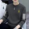 Suéter de primavera y otoño para hombre, nuevo, de manga larga, cuello redondo, costuras finas, camiseta deportiva holgada para el cabello.