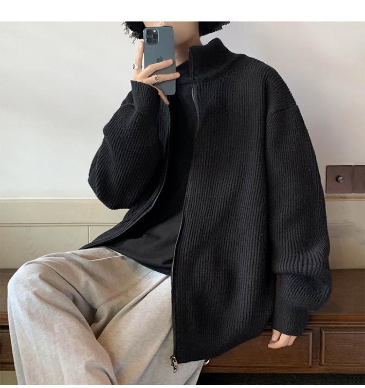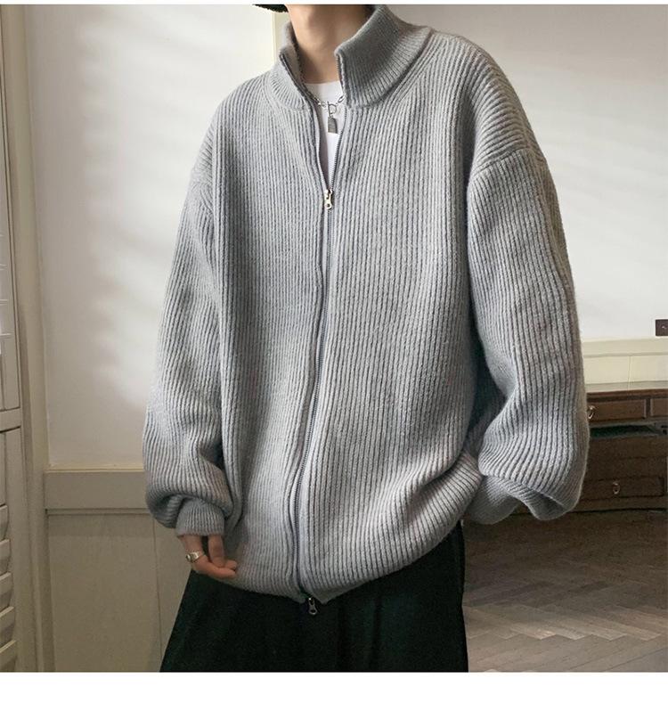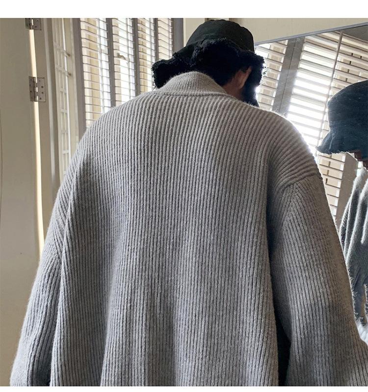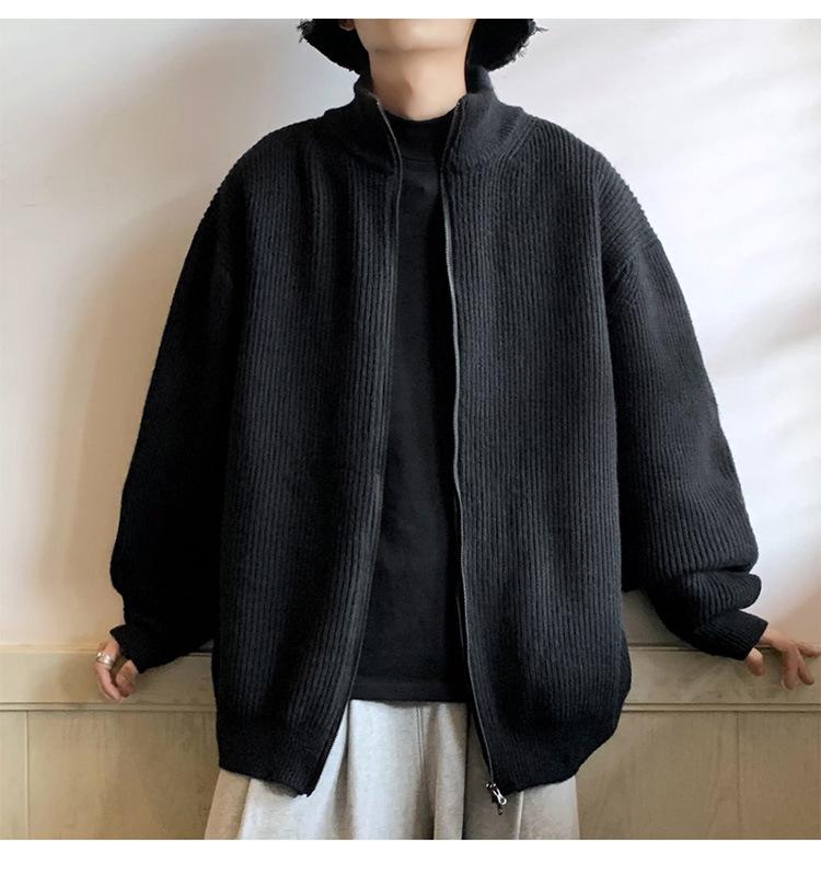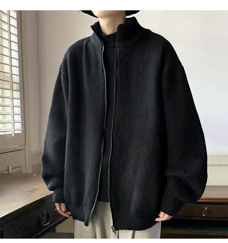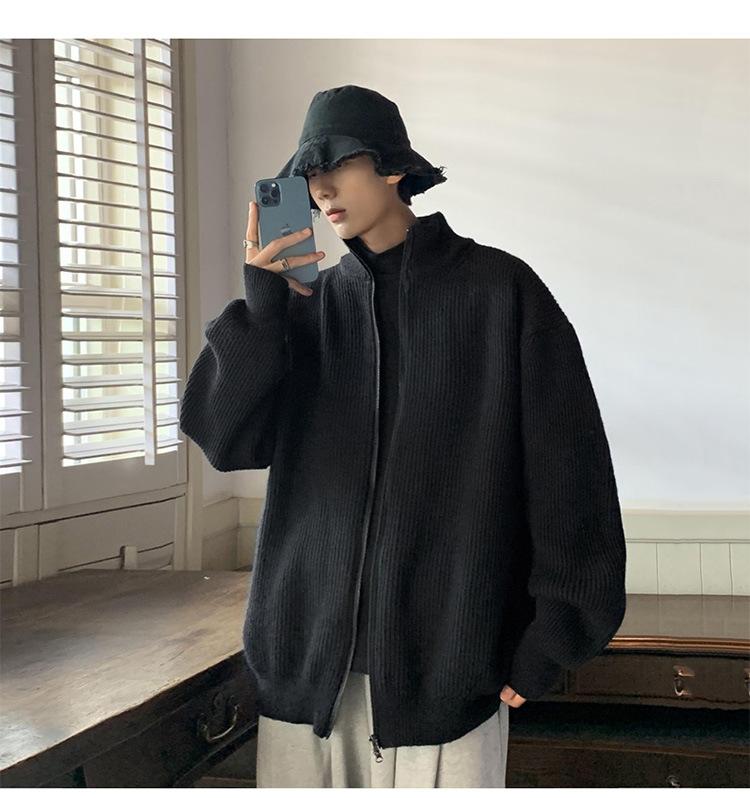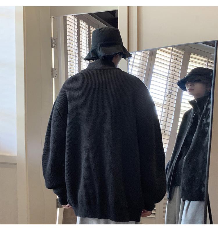 Suéter tipo cárdigan para hombre, otoño e invierno, estilo japonés retro holgado, suéter con hombros caídos, cremallera y cuello alto, abrigo