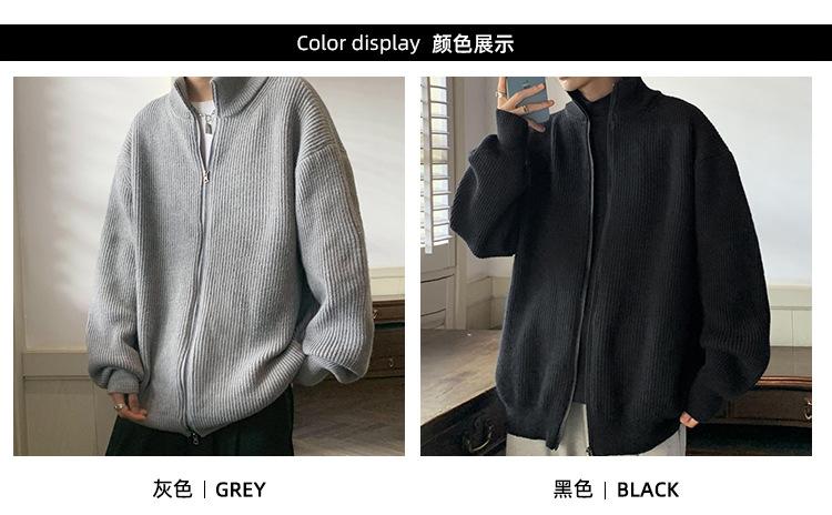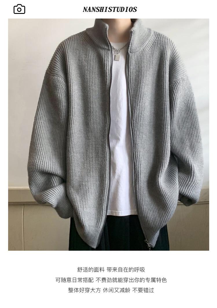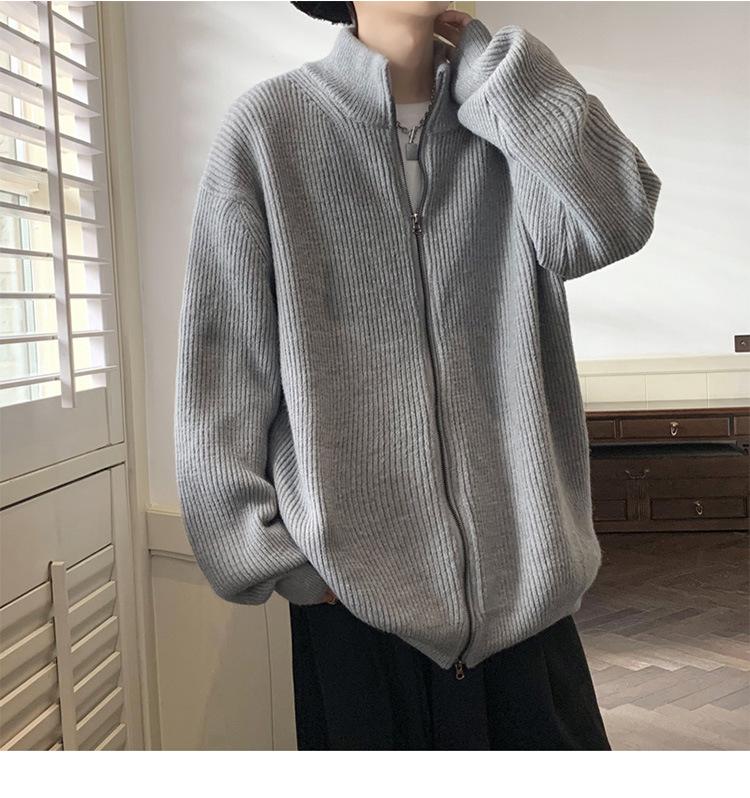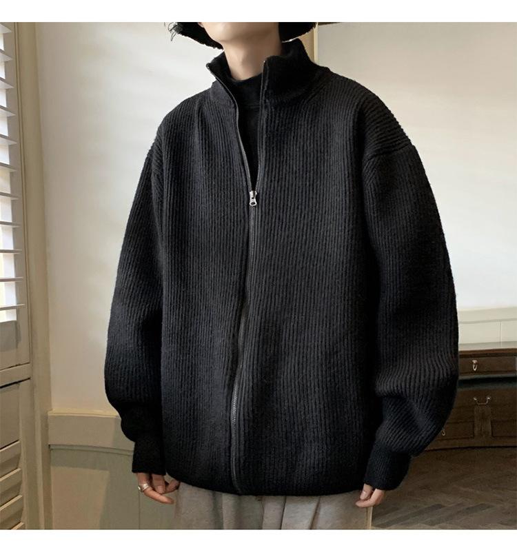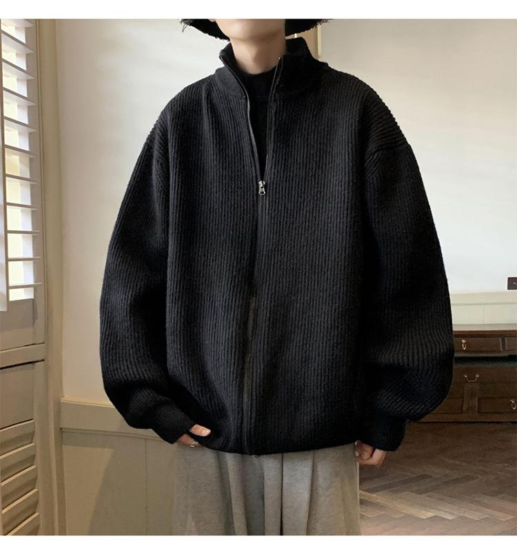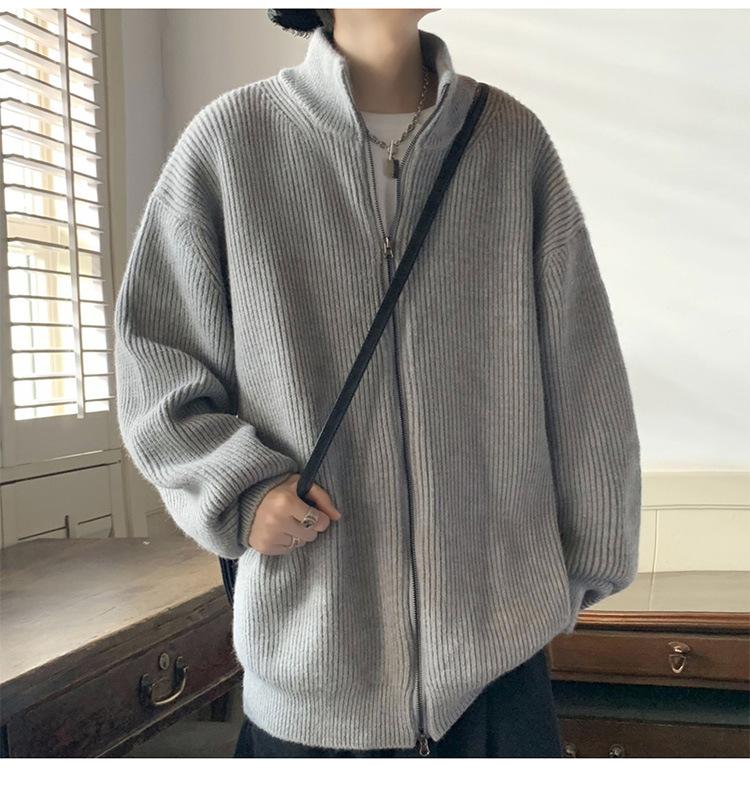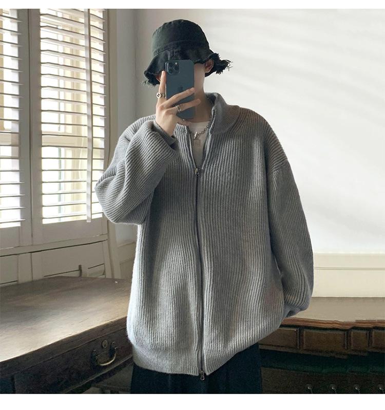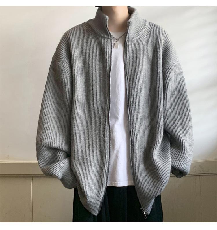 Suéter tipo cárdigan para hombre, otoño e invierno, estilo japonés retro holgado, suéter con hombros caídos, cremallera y cuello alto, abrigo