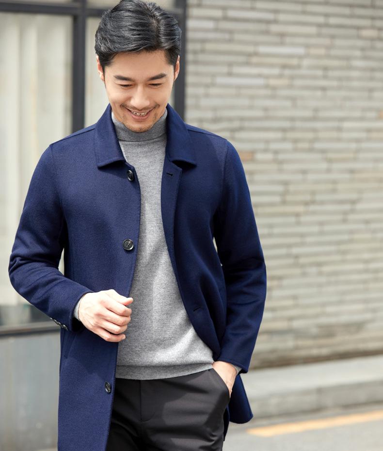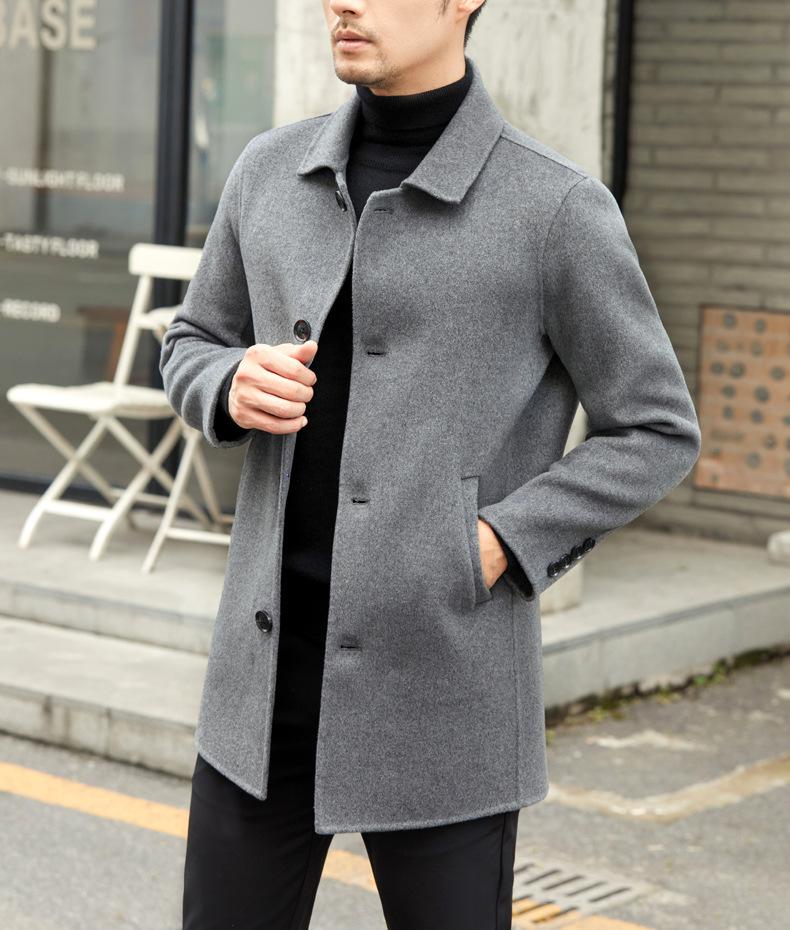 2024 Nuevo Otoño e Invierno Abrigo de Lana de Doble Cara para Hombre de Largo Medio Abrigo de Lana Pura Cortavientos Business Casual