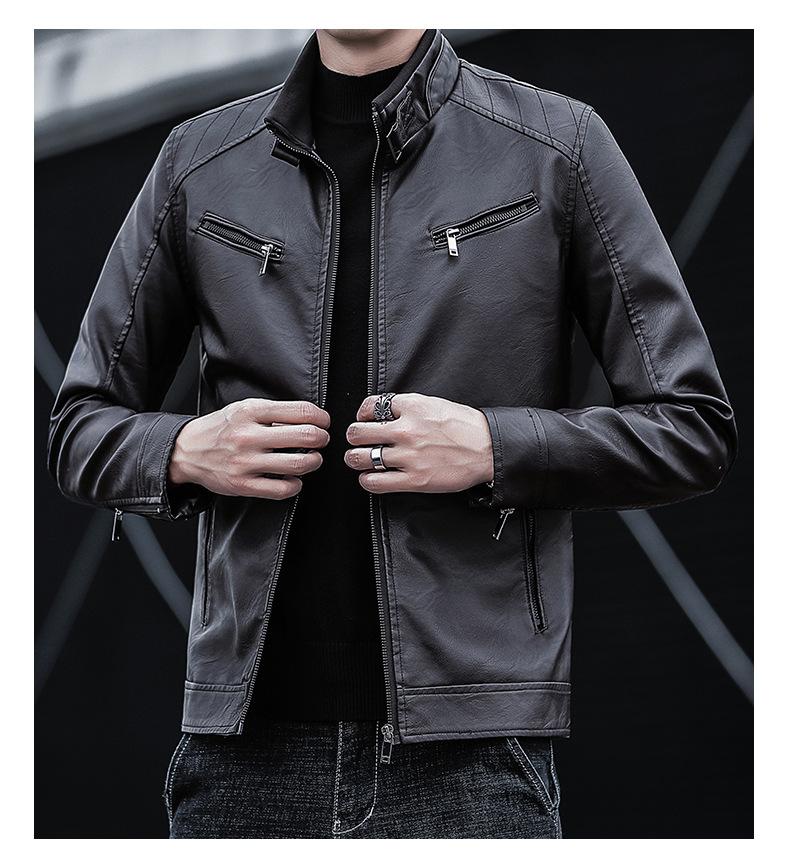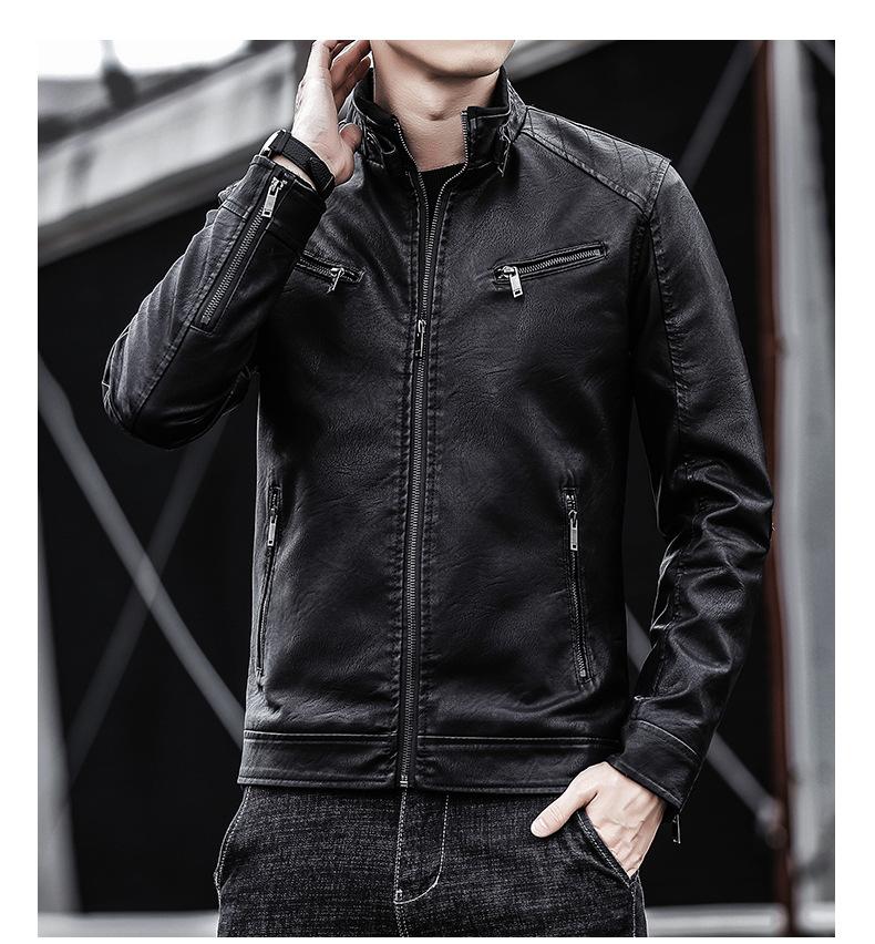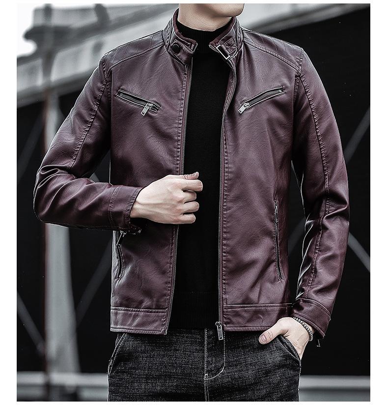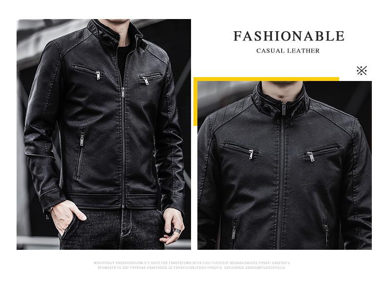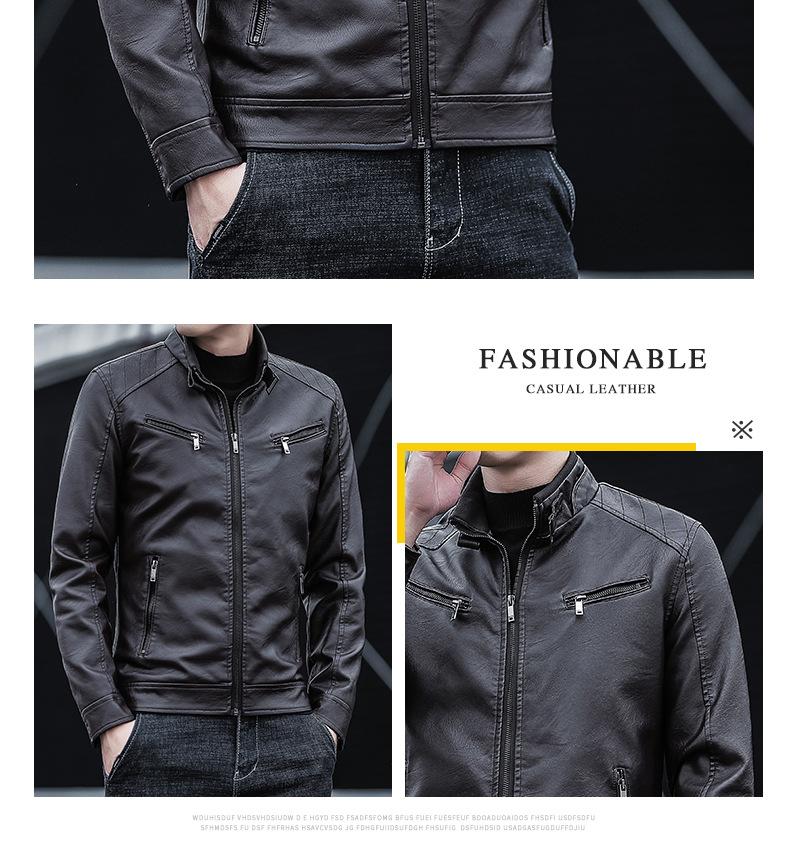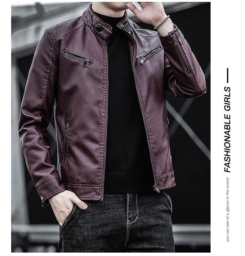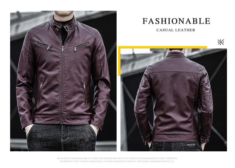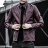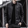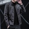 Chaqueta de cuero sintético para hombre, estilo coreano, informal, de primavera y otoño, con cuello vertical, ajustada, para motocicleta, juvenil