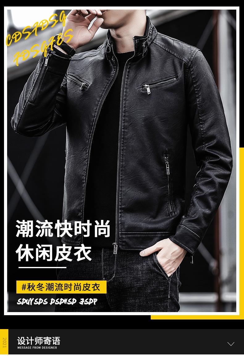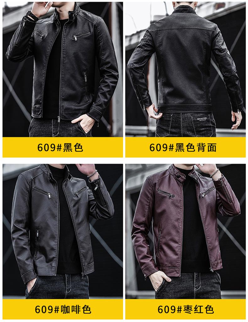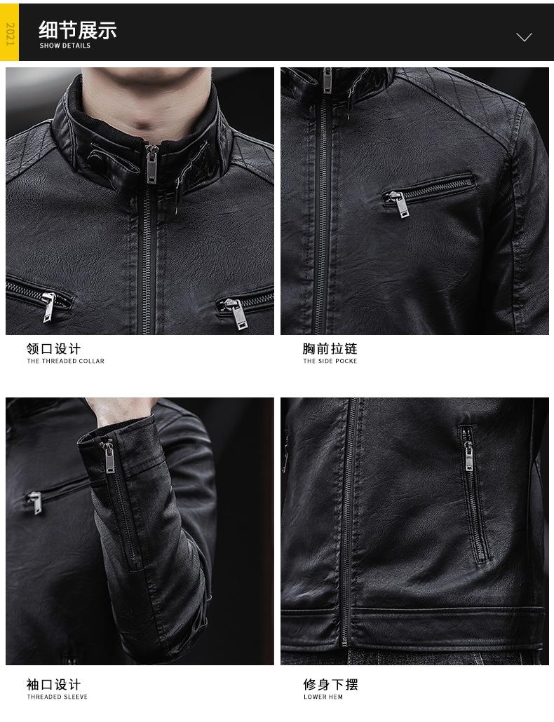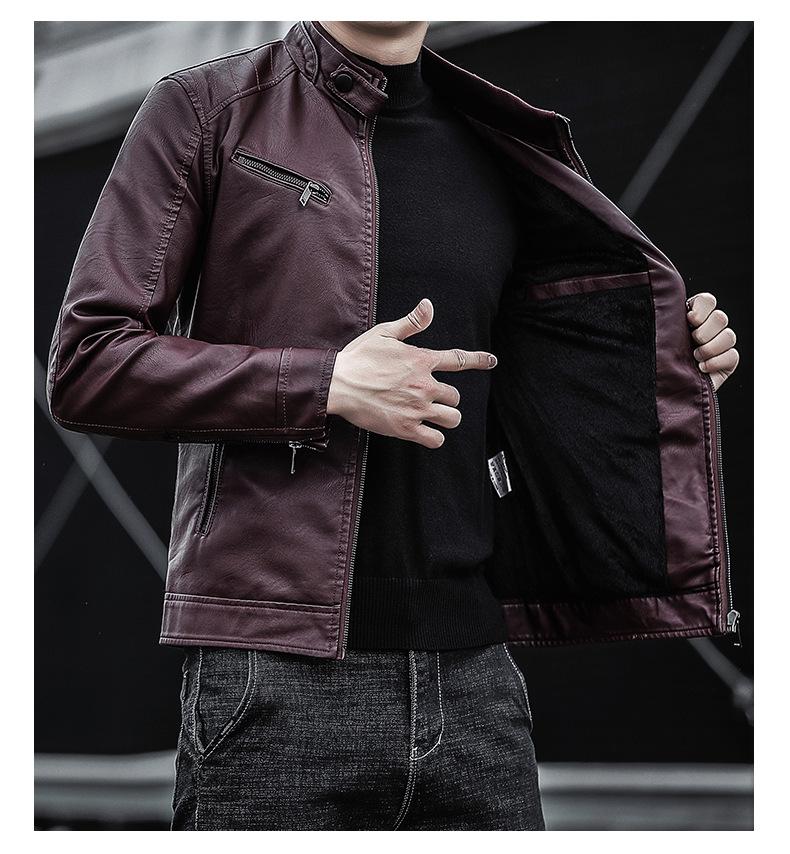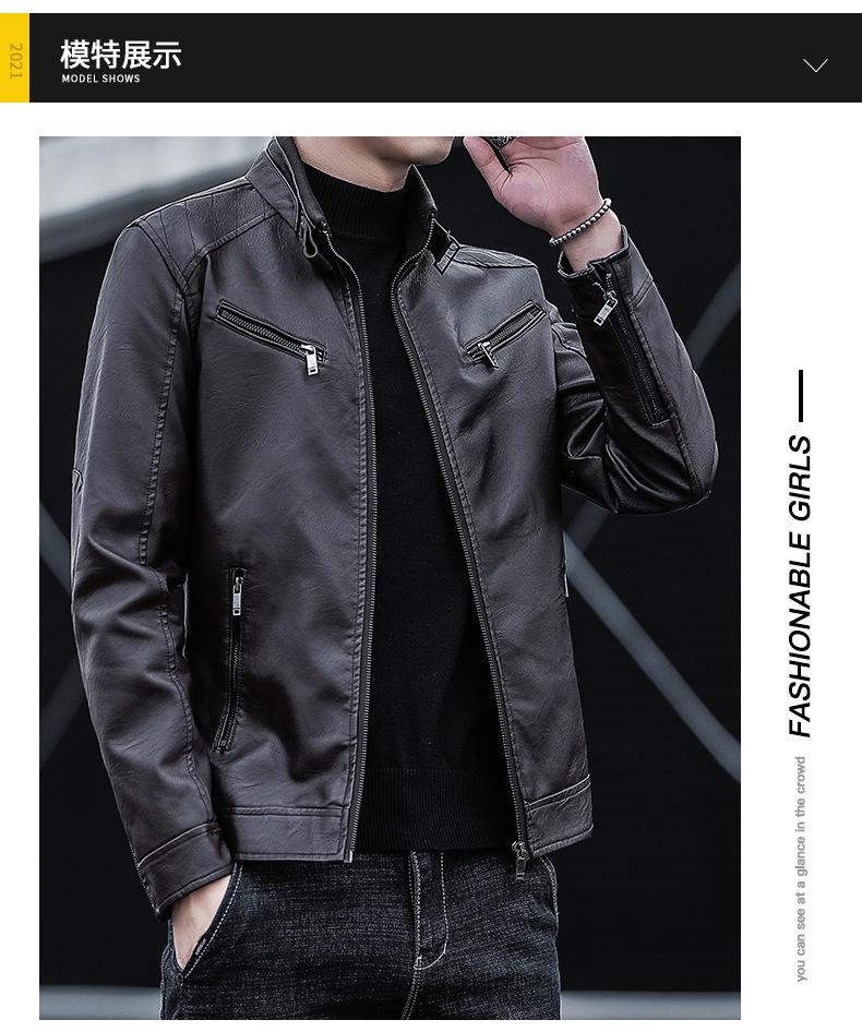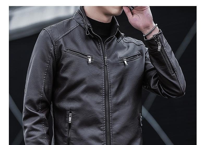 Chaqueta de cuero sintético para hombre, estilo coreano, informal, de primavera y otoño, con cuello vertical, ajustada, para motocicleta, juvenil