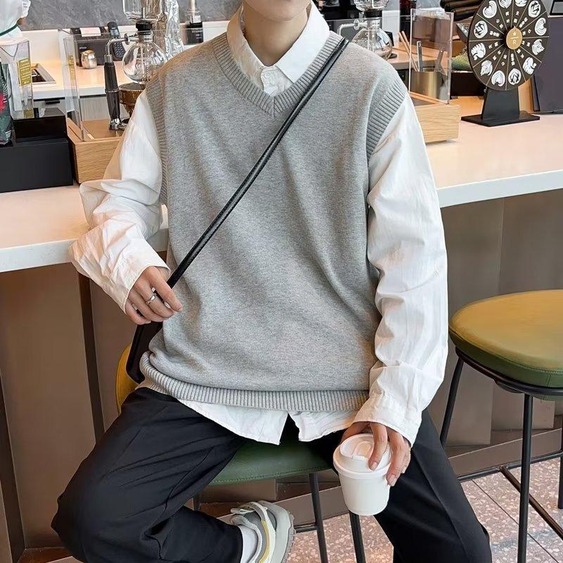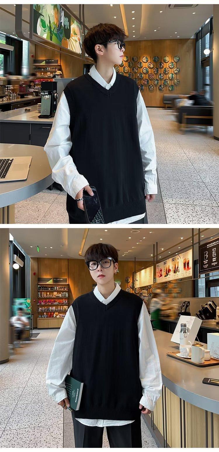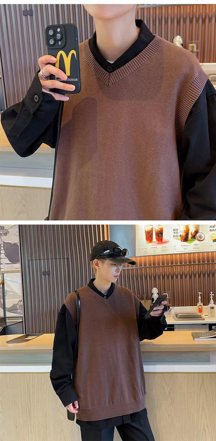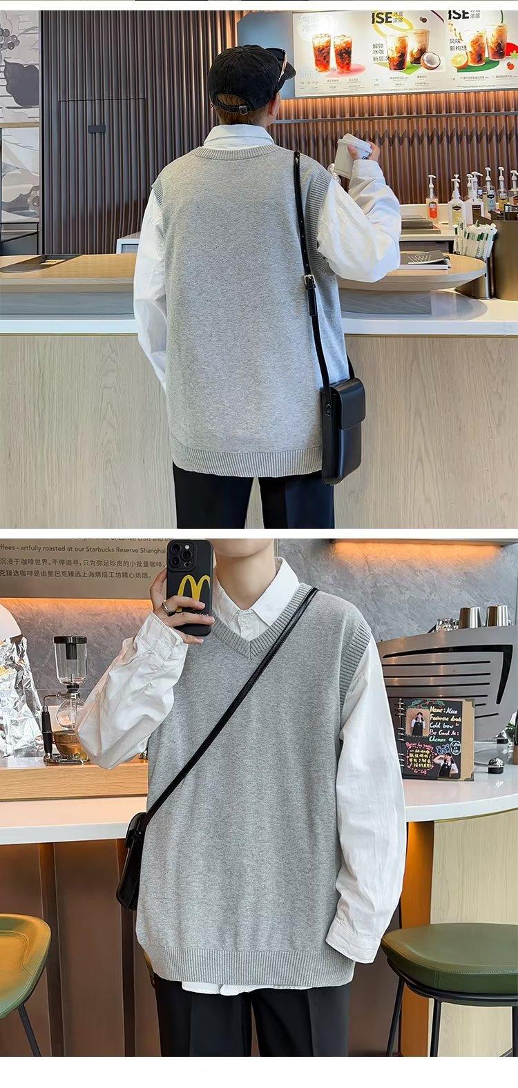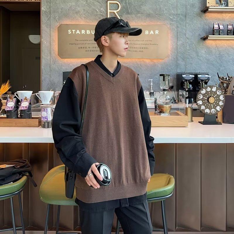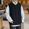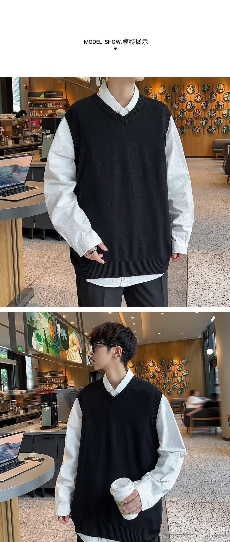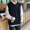 Suéter con cuello en V para hombre, otoño e invierno, estilo coreano, suéter holgado de moda, chaleco de otoño, estilo Hong Kong, chaleco sin mangas de estilo japonés.