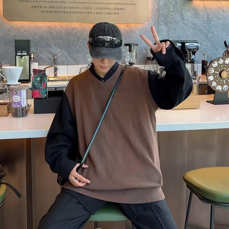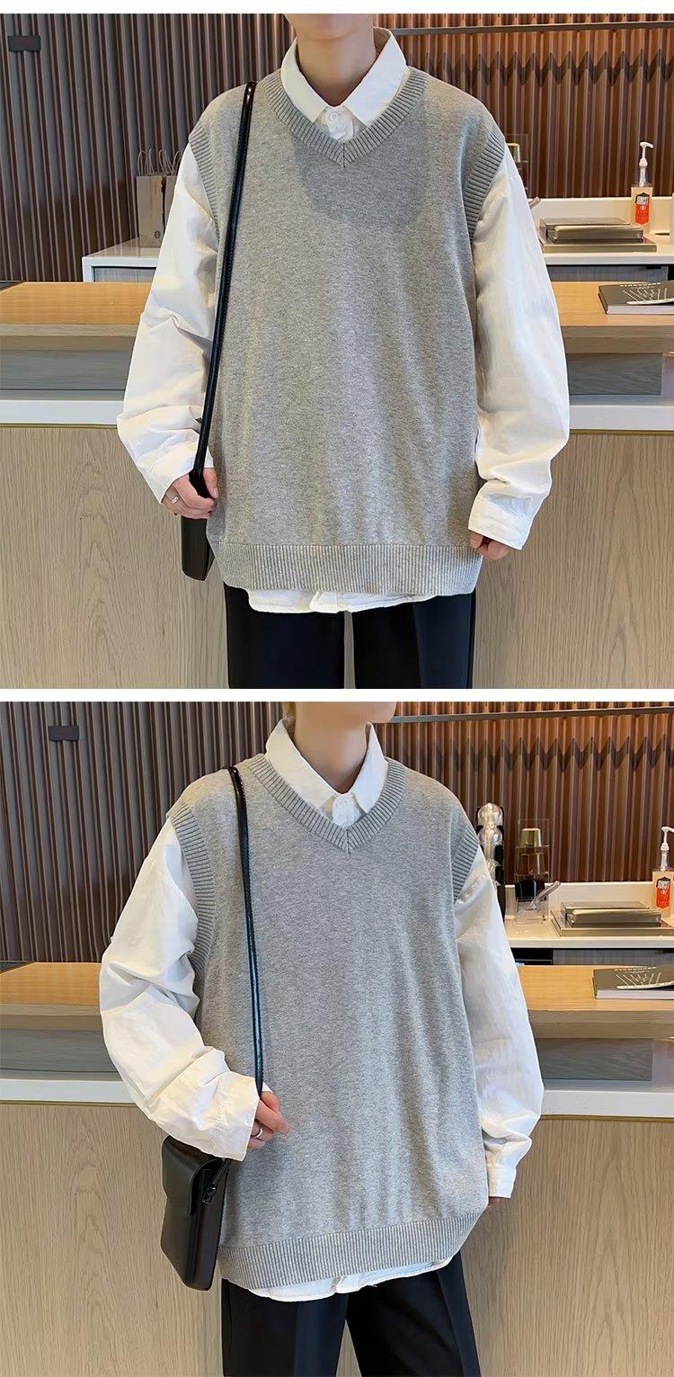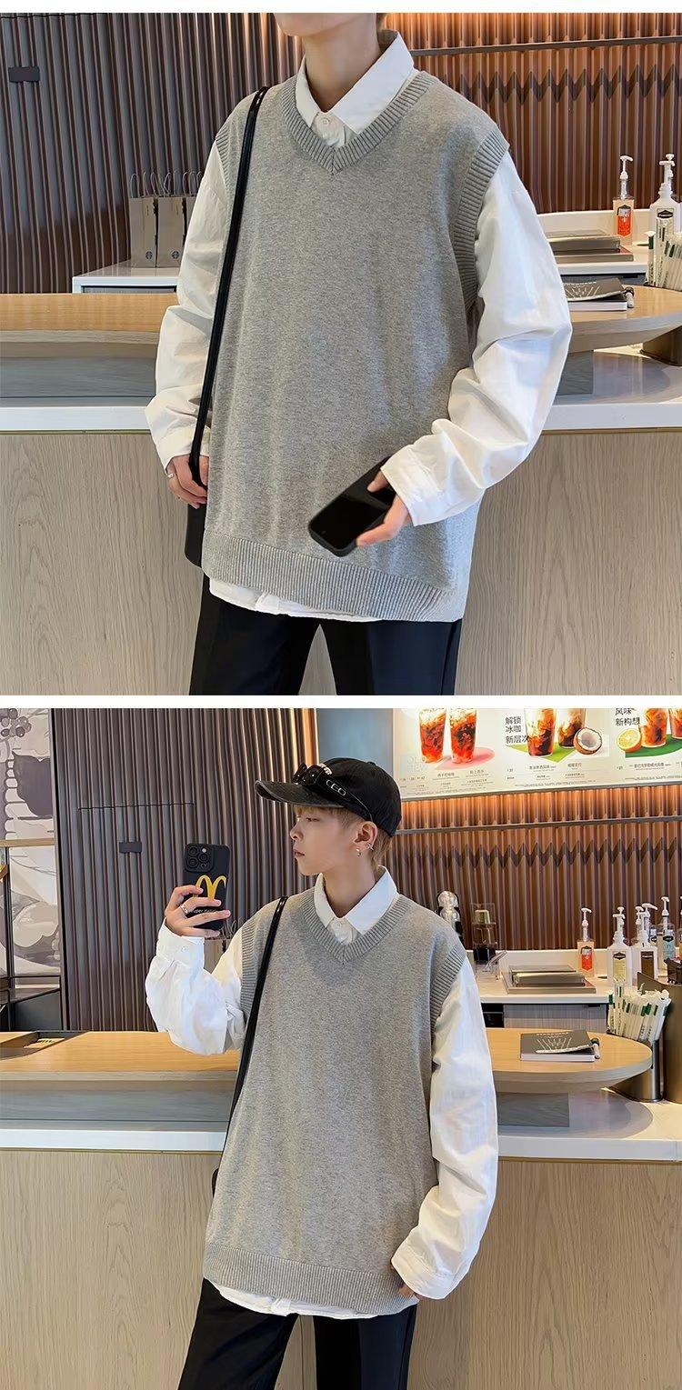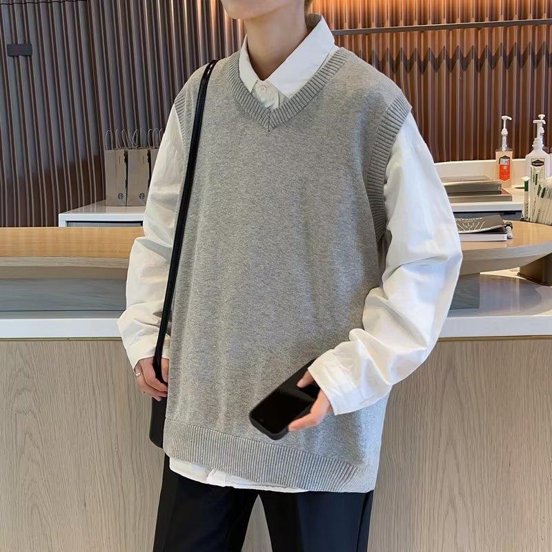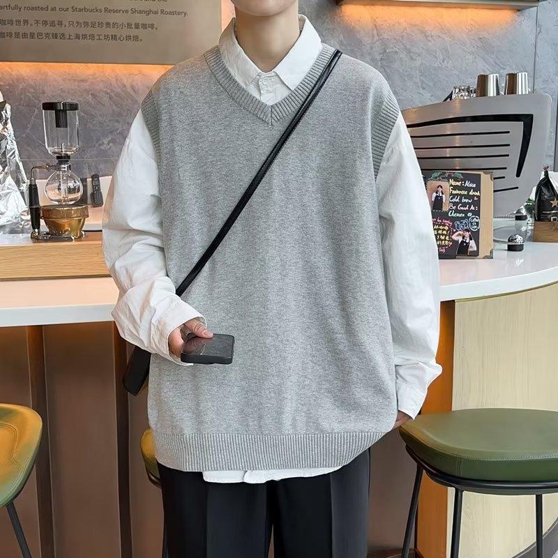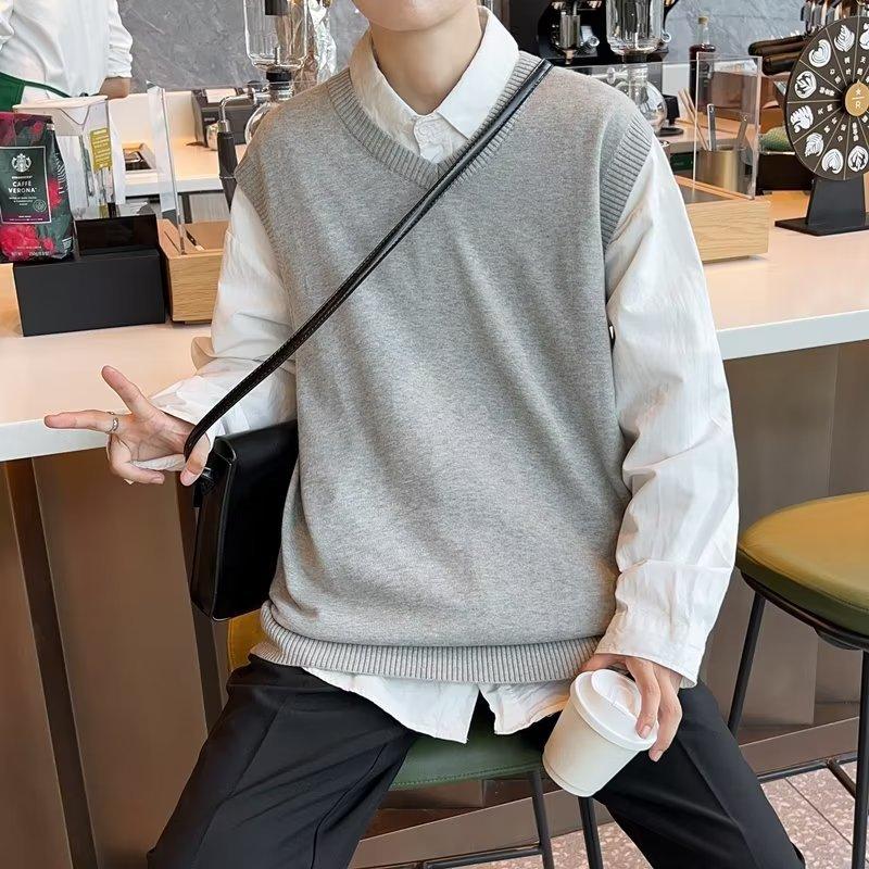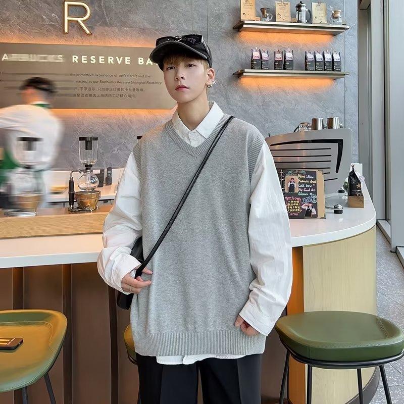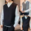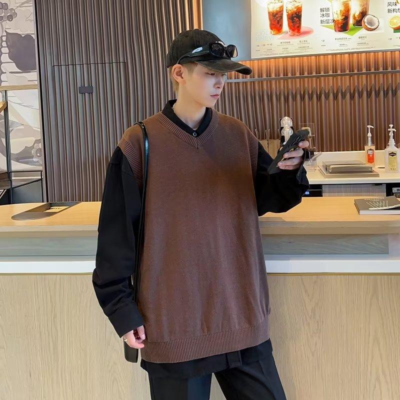 Suéter con cuello en V para hombre, otoño e invierno, estilo coreano, suéter holgado de moda, chaleco de otoño, estilo Hong Kong, chaleco sin mangas de estilo japonés.