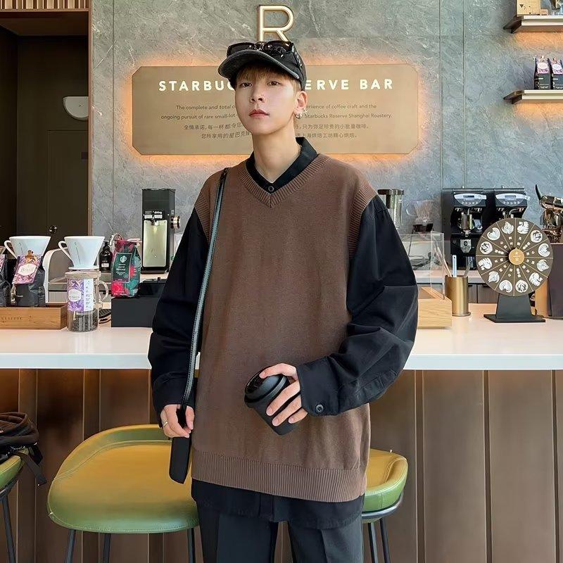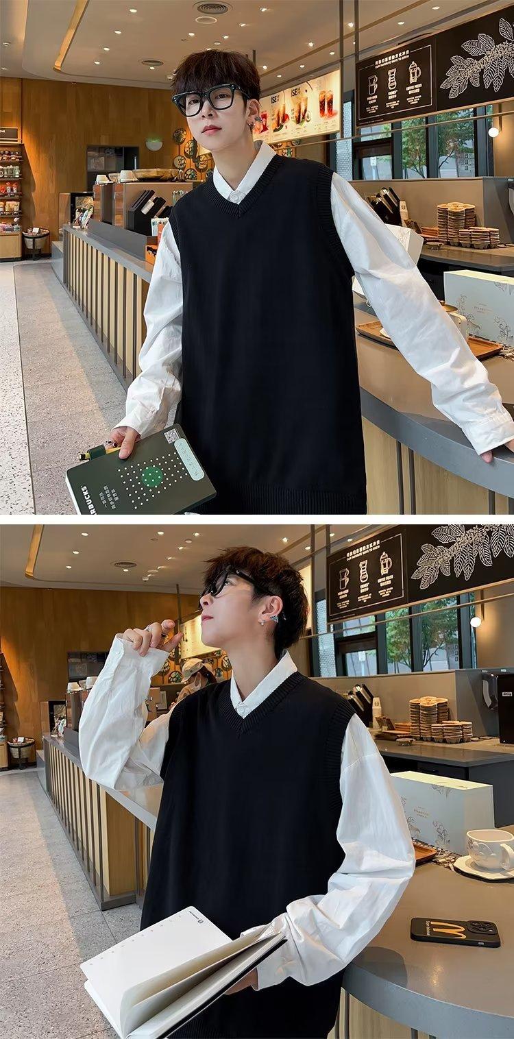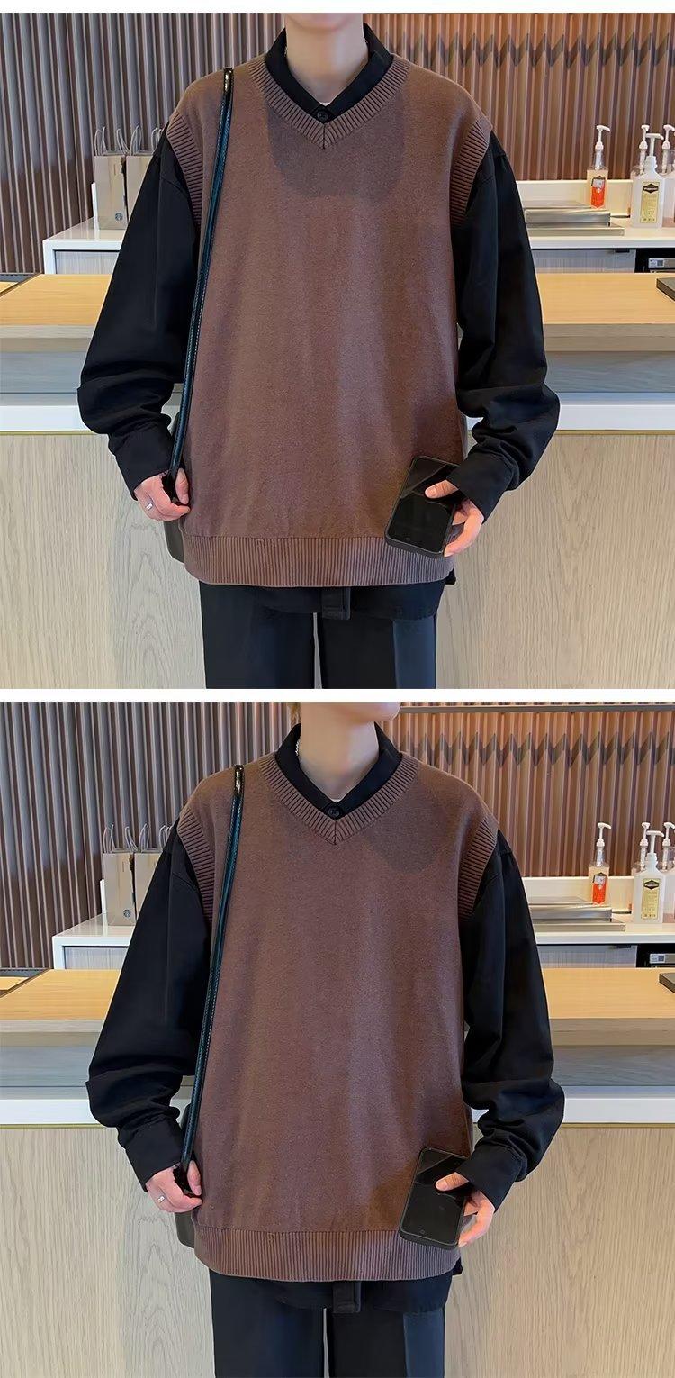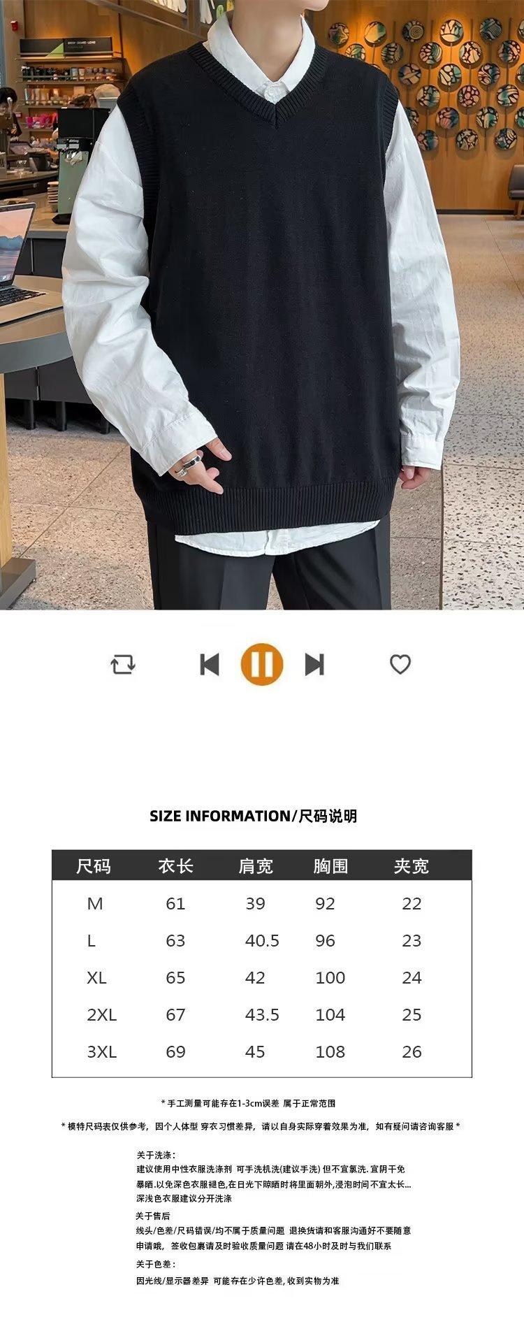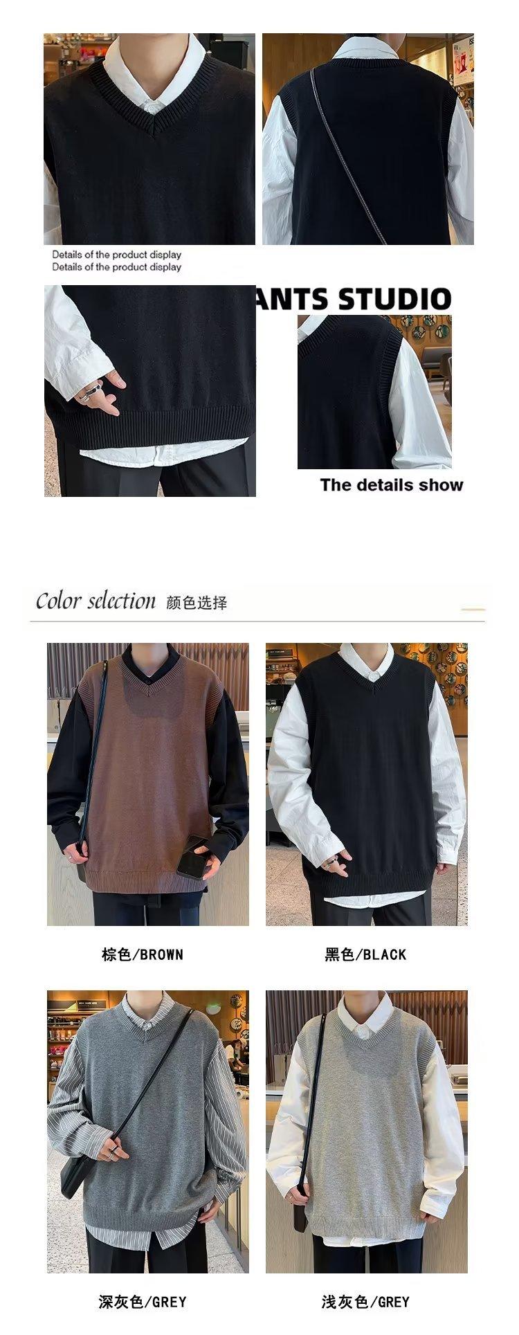 Suéter con cuello en V para hombre, otoño e invierno, estilo coreano, suéter holgado de moda, chaleco de otoño, estilo Hong Kong, chaleco sin mangas de estilo japonés.