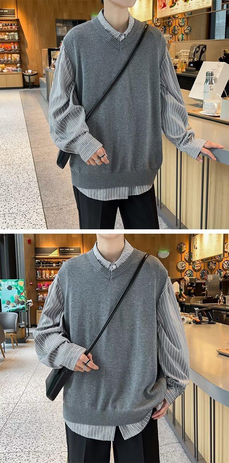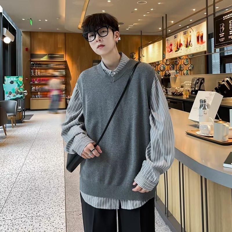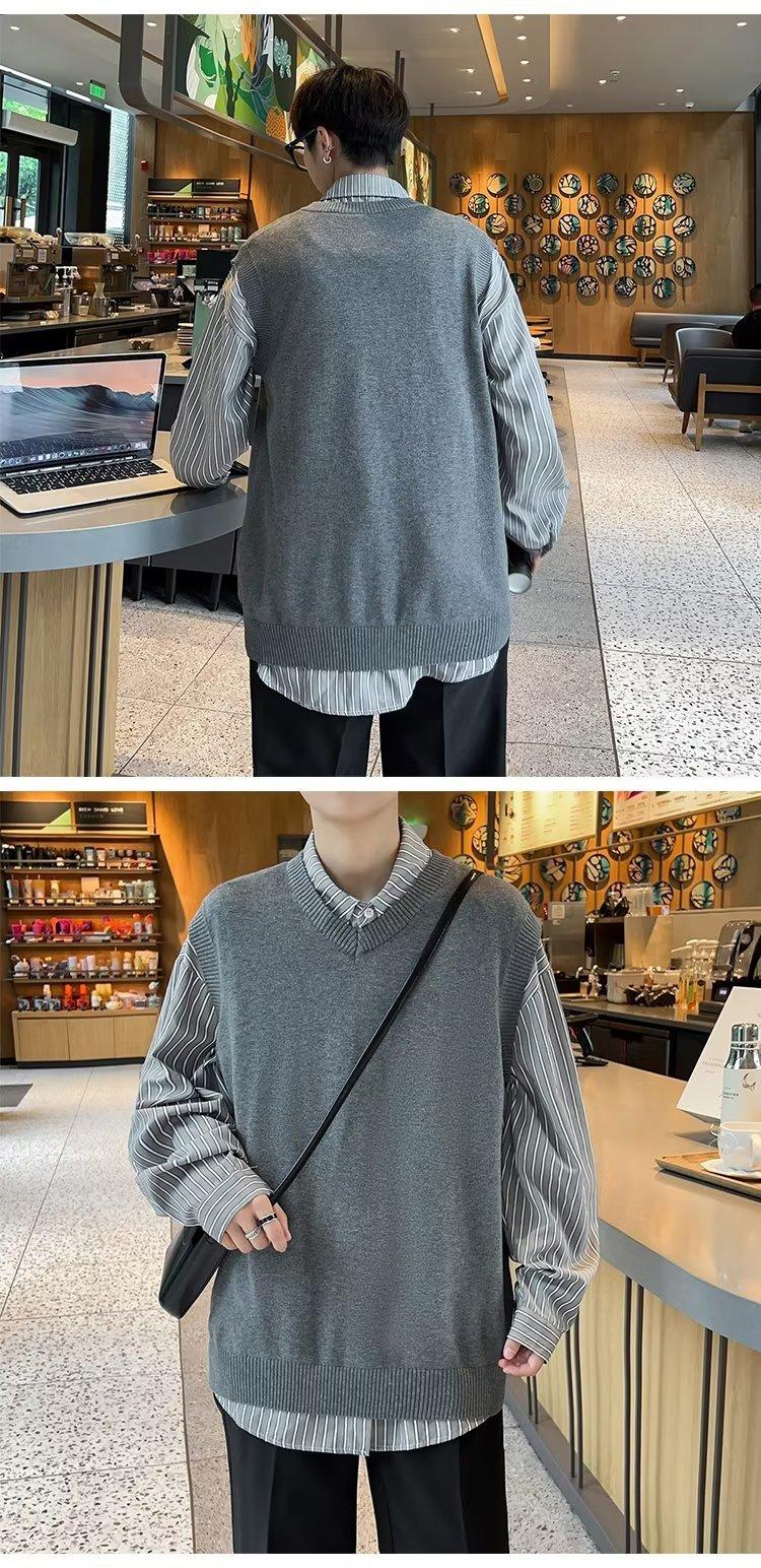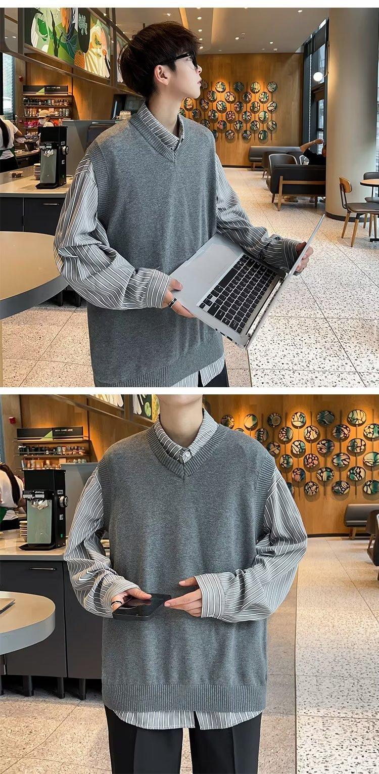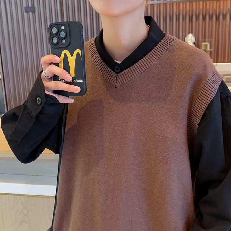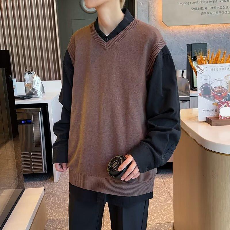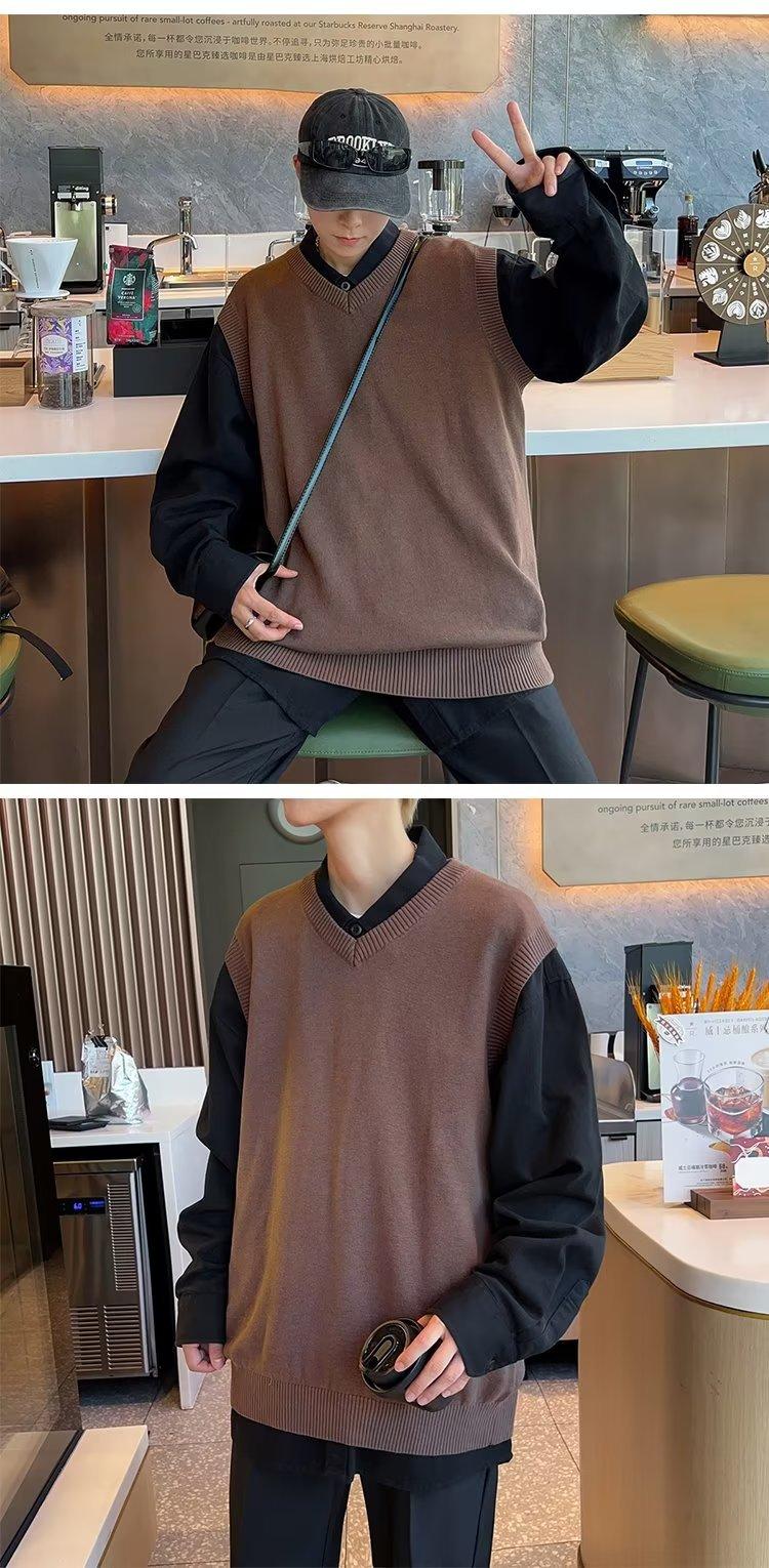 Suéter con cuello en V para hombre, otoño e invierno, estilo coreano, suéter holgado de moda, chaleco de otoño, estilo Hong Kong, chaleco sin mangas de estilo japonés.