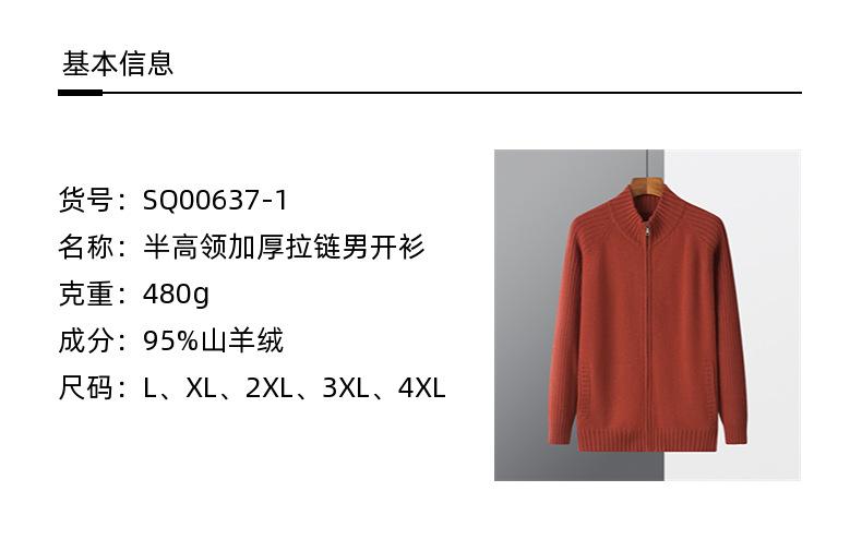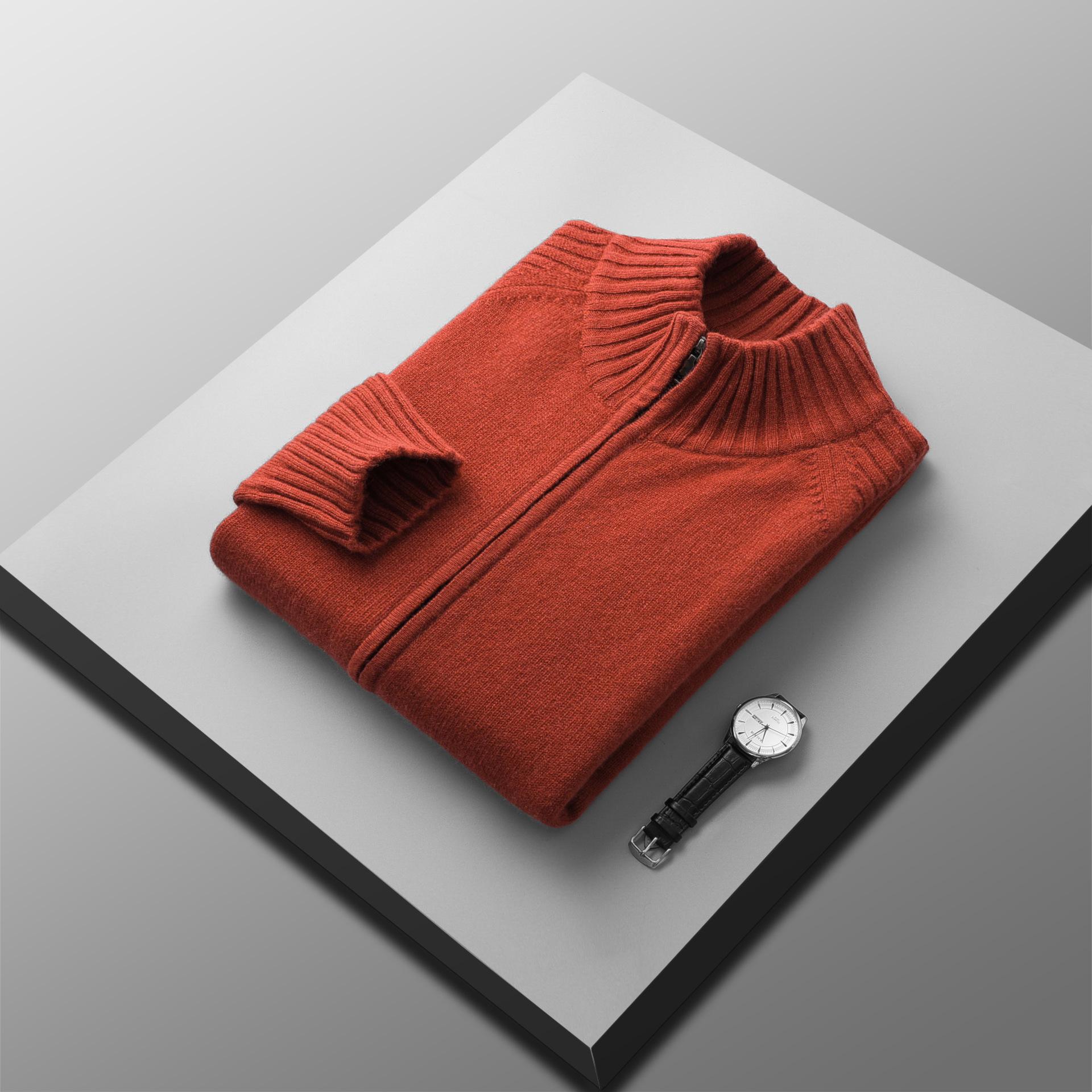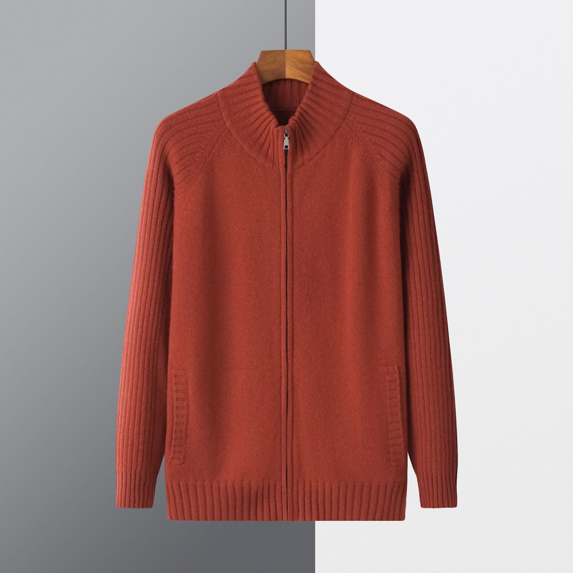 Cárdigan de hombre con cremallera engrosado de cuello medio alto, suéter 100% cachemira, suéter de hombre, suministro directo de fábrica de Ordos