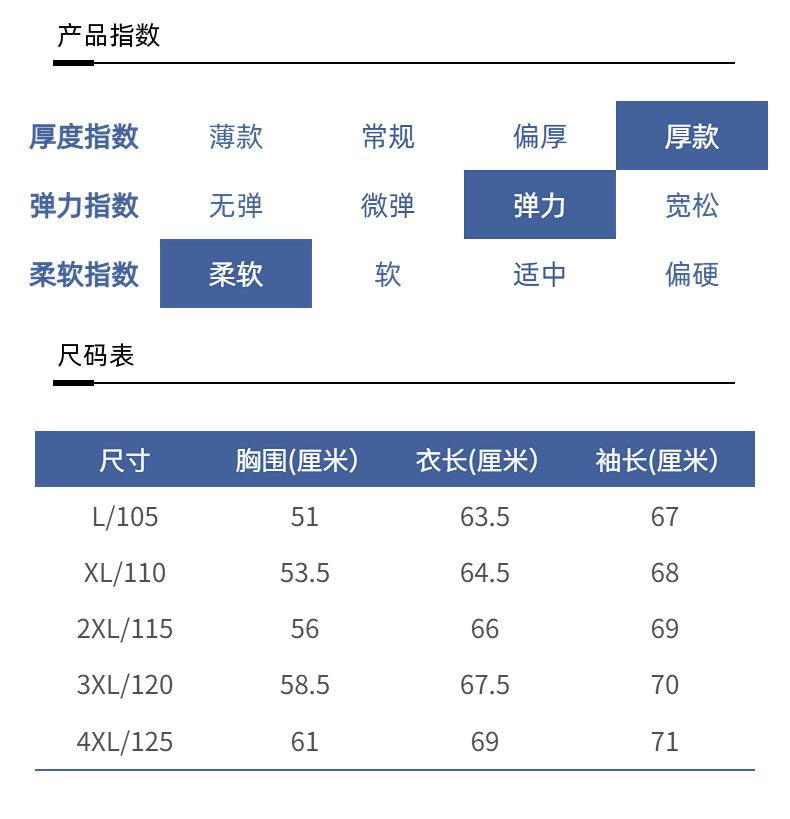 L/105, XL/110, 2XL/115, 3XL/120, 4XL/125