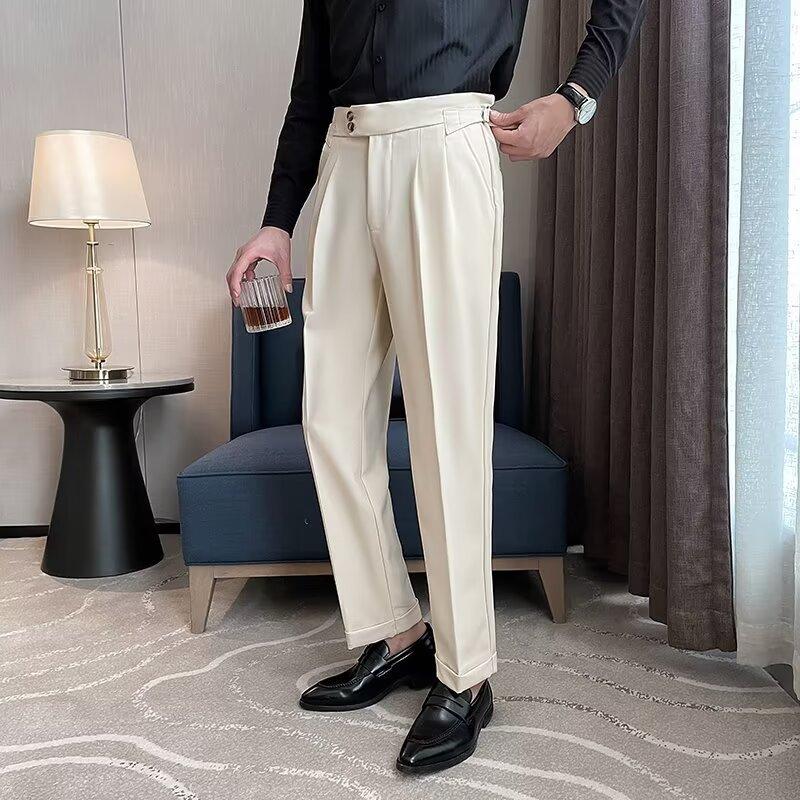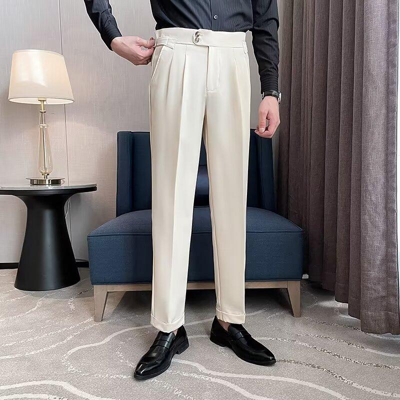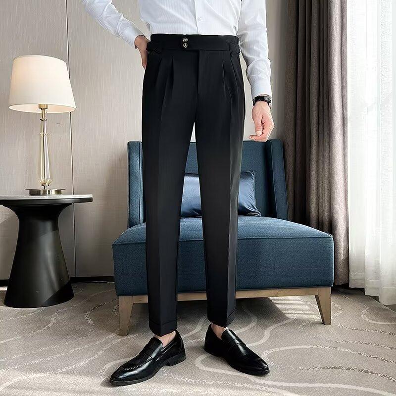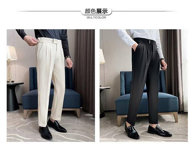 Pantalones de traje de alta gama para hombre, corte entallado, pies pequeños, informales, rectos, de negocios, con brillo napolitano.