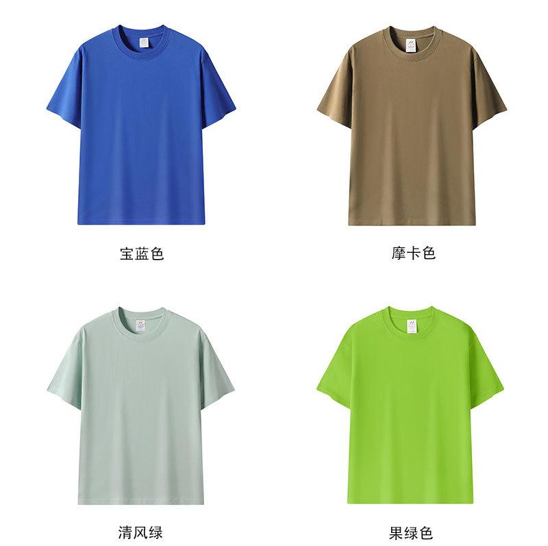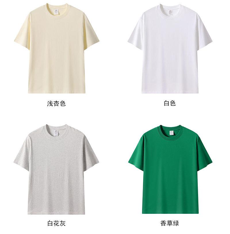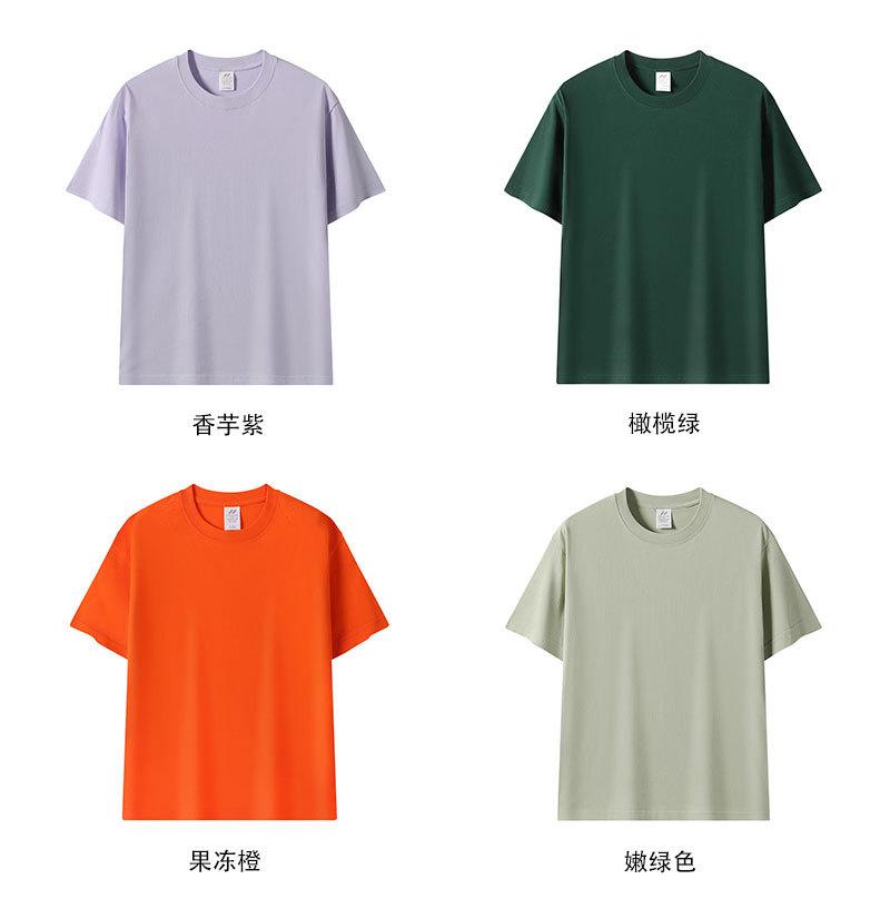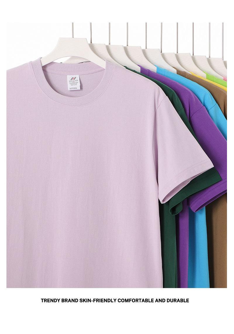 Japón 230g algodón color Morandi cuello redondo manga corta hombres y mujeres parejas suelto camiseta básica camisa blanca pura en stock