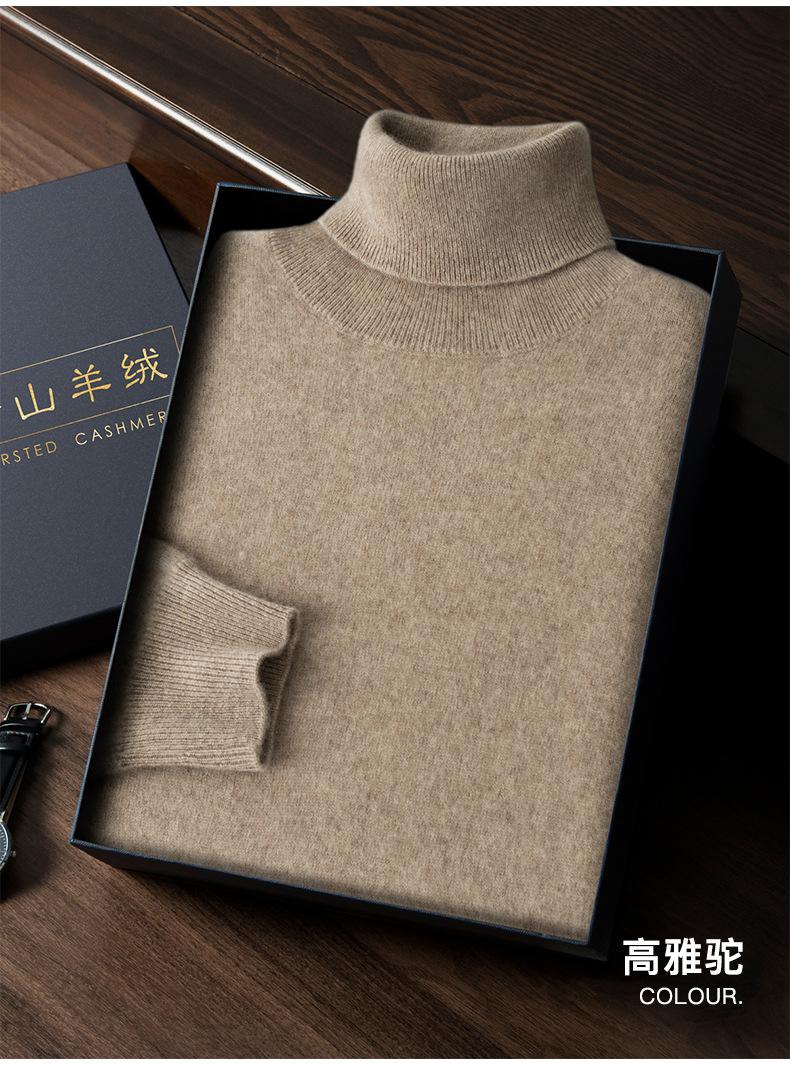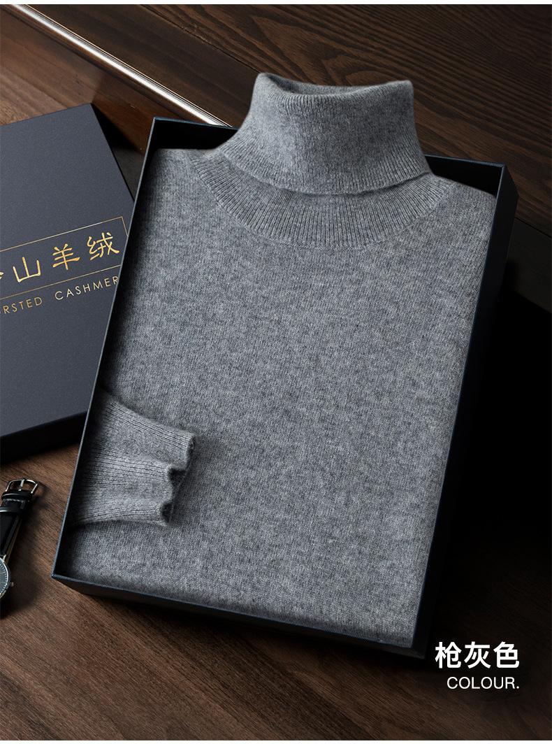 Suéter de cachemira de solapa alta para hombre, suéter de punto de cachemira pura informal de negocios para hombre, camisa de cachemira para hombre