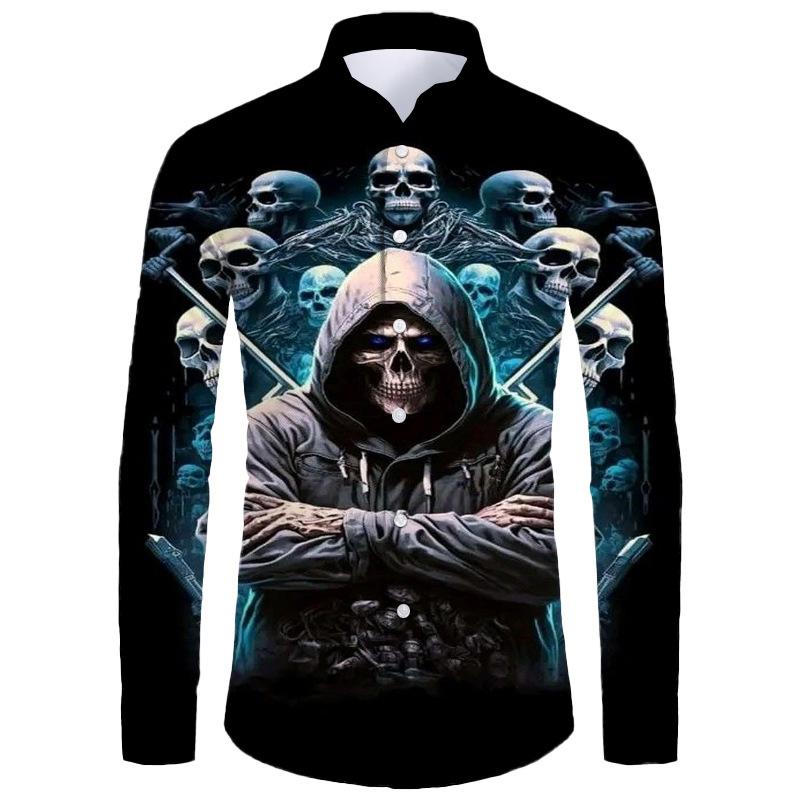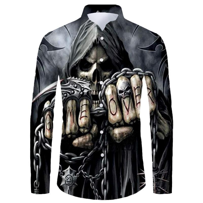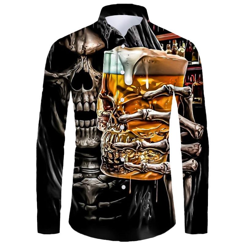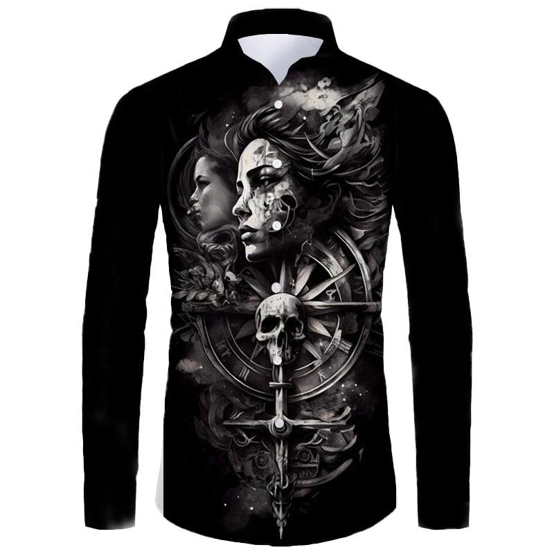 Camisa de manga larga para hombre, estilo europeo y americano, estilo transfronterizo de otoño, con solapa, cárdigan informal holgado, estampado digital 3D