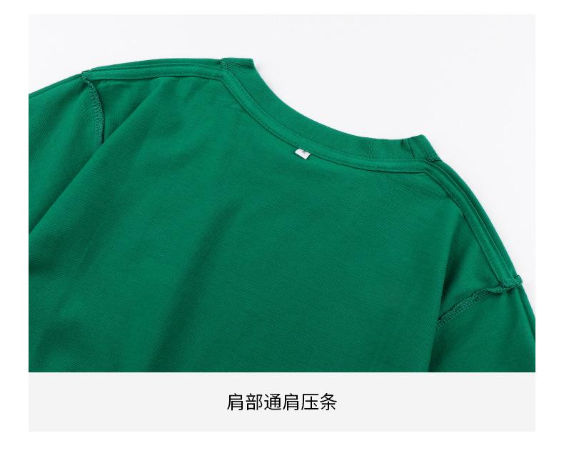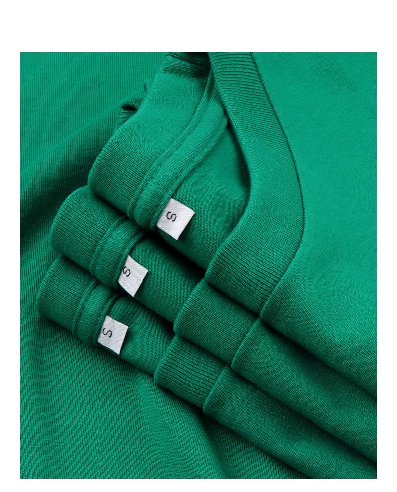 230g Pesada Manga Corta Algodón Puro Xinjiang Camiseta Verde Hombre Cuello Pequeño Mujer Top Casual Holgado Pareja Verano