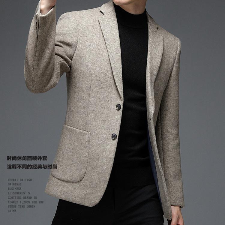 Traje Casual de Lana Nuevo Primavera 2025 para Hombre Slim Business Chaqueta Superior Juvenil Estilo Coreano Traje Único