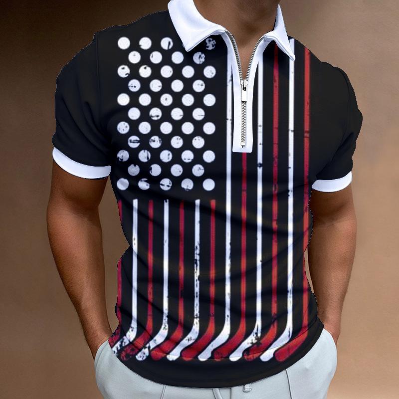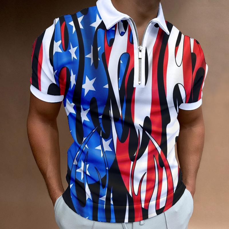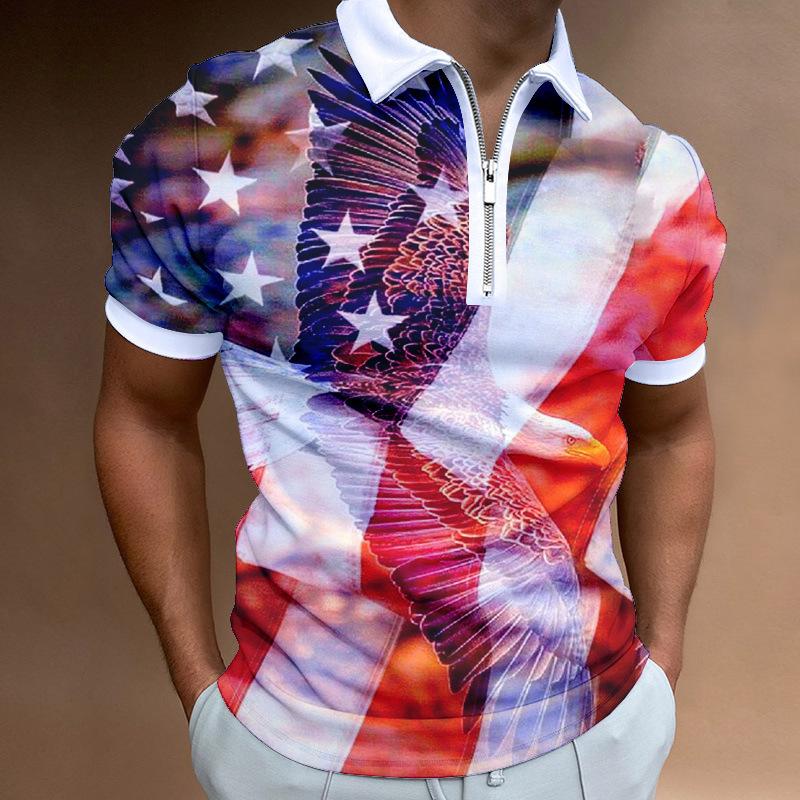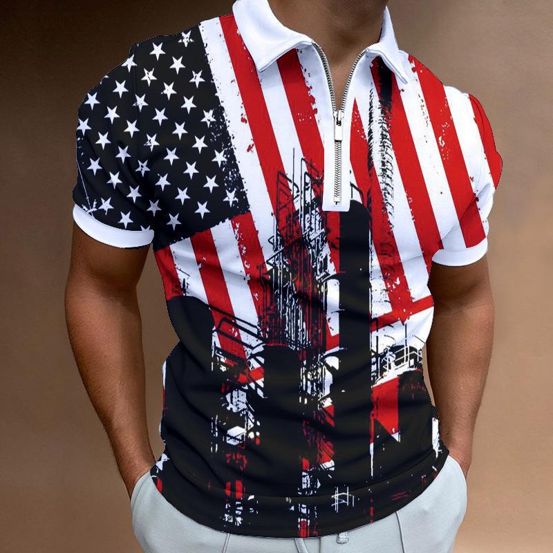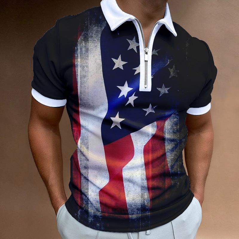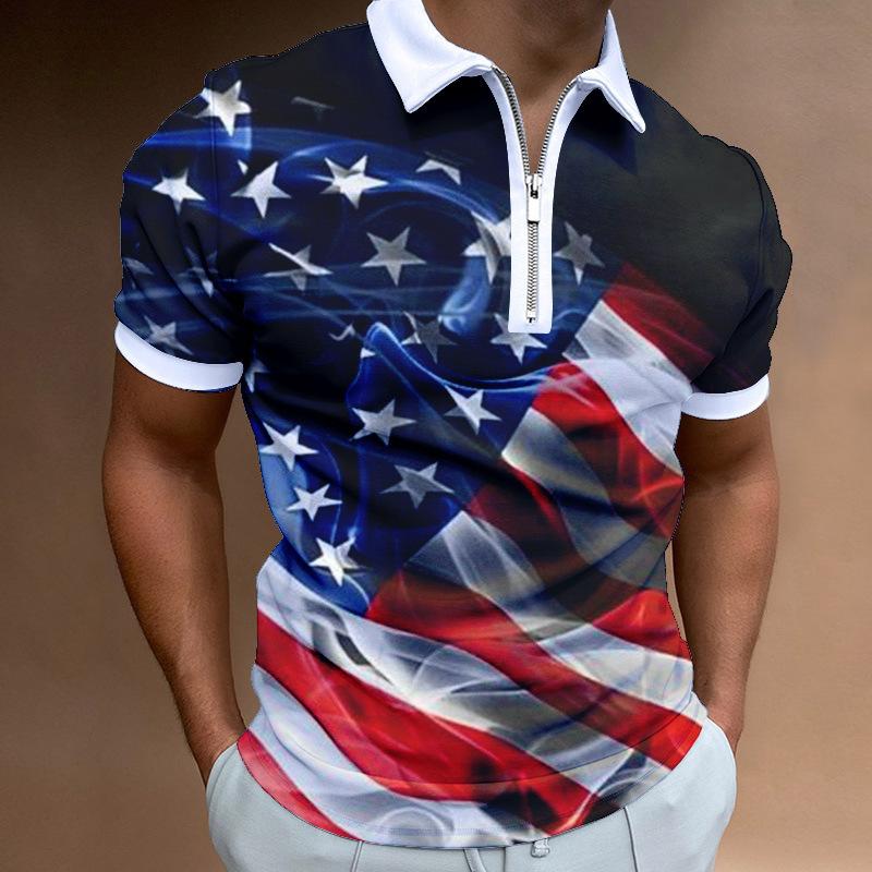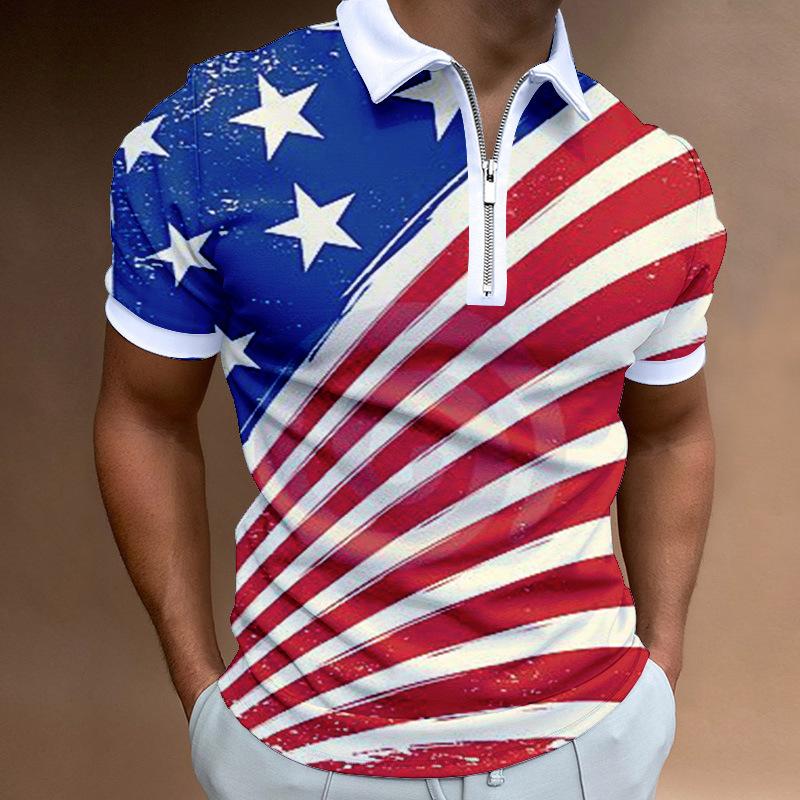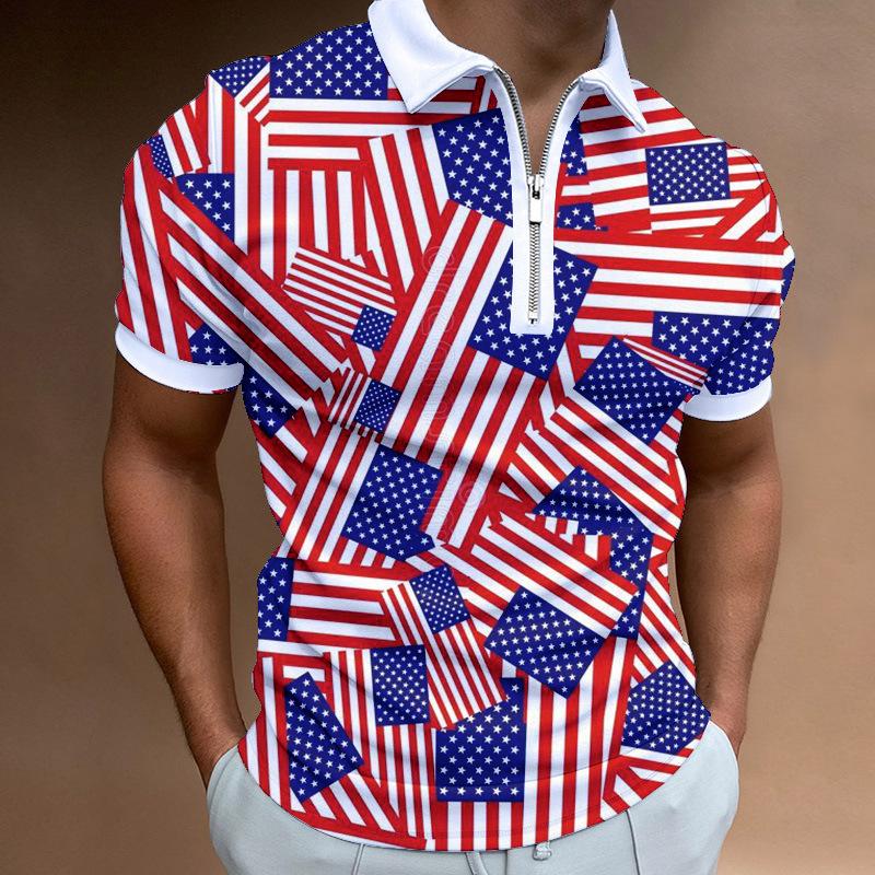 Compra Polo de manga corta con cremallera y estampado 3D del Día de la Independencia de verano 2023 para hombre, estilo diario al por mayor en Joom.pro