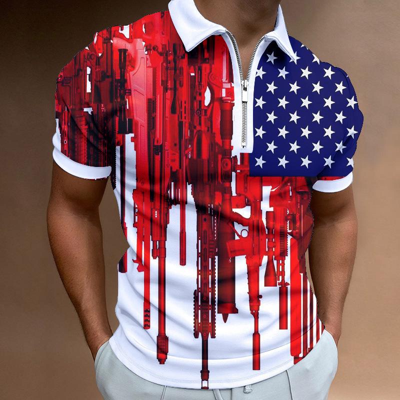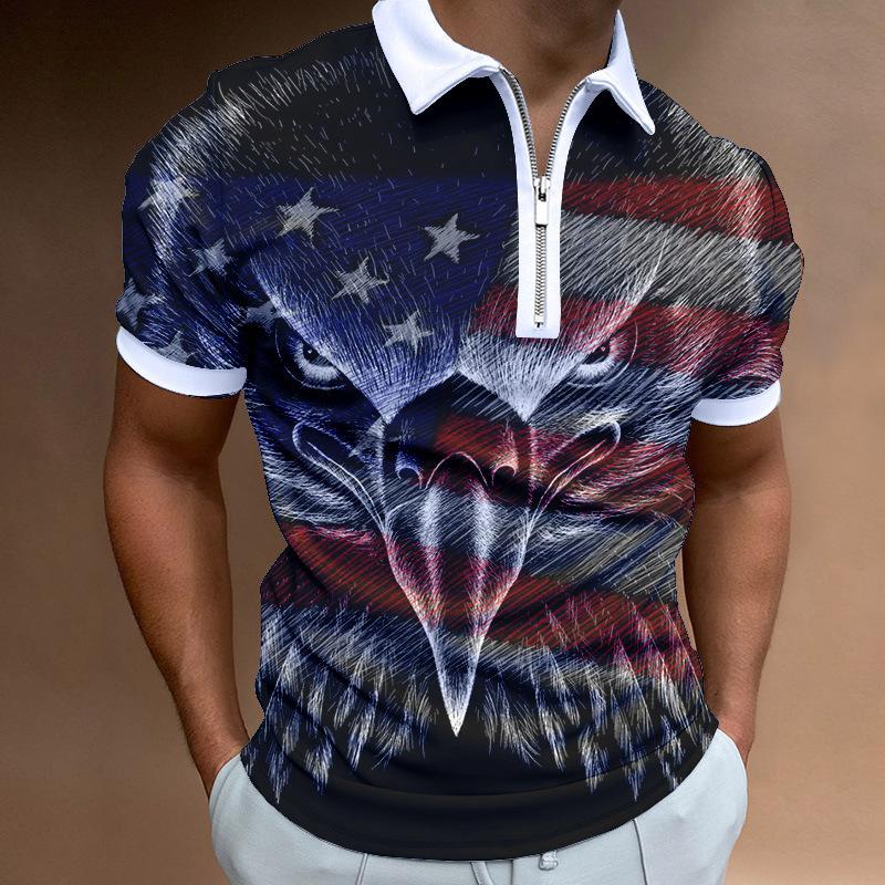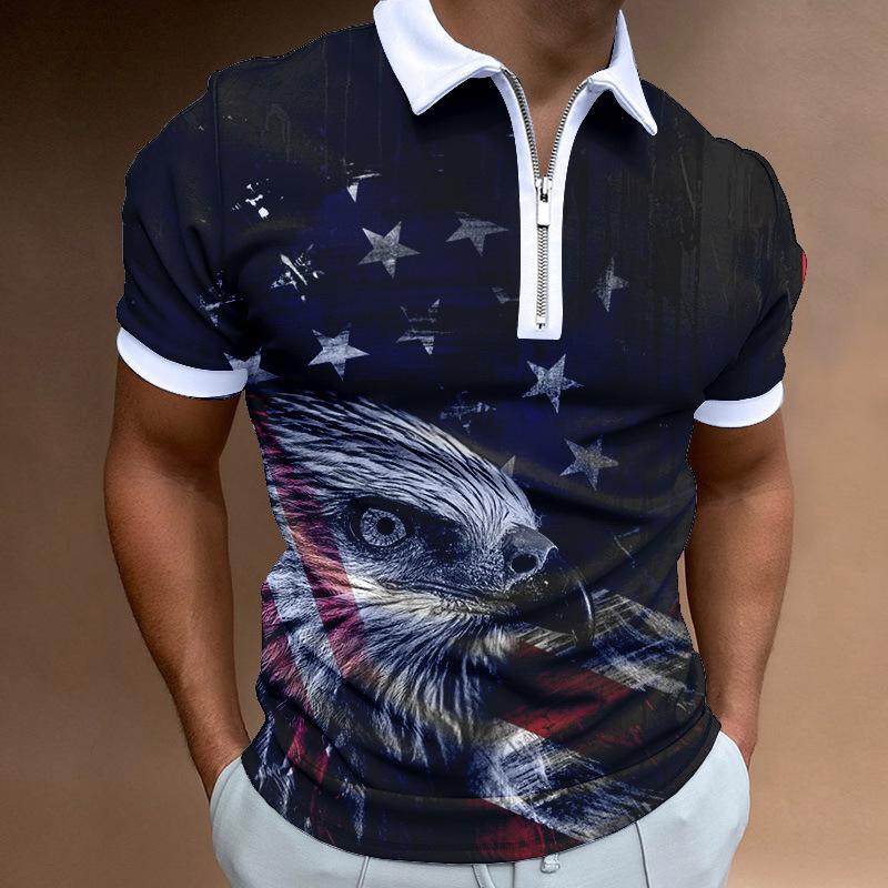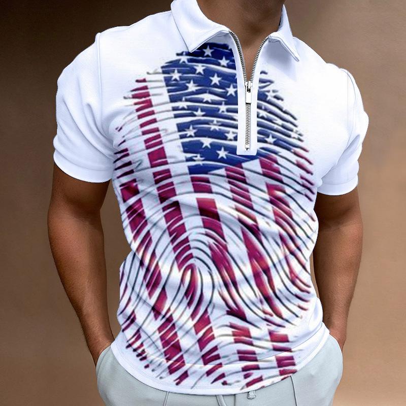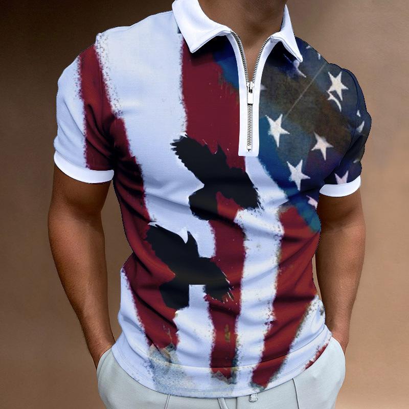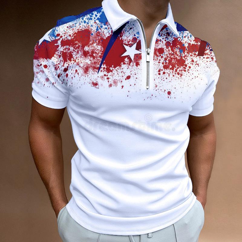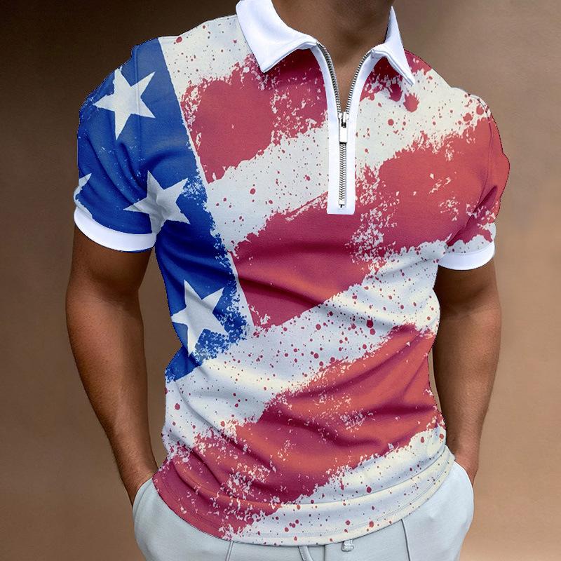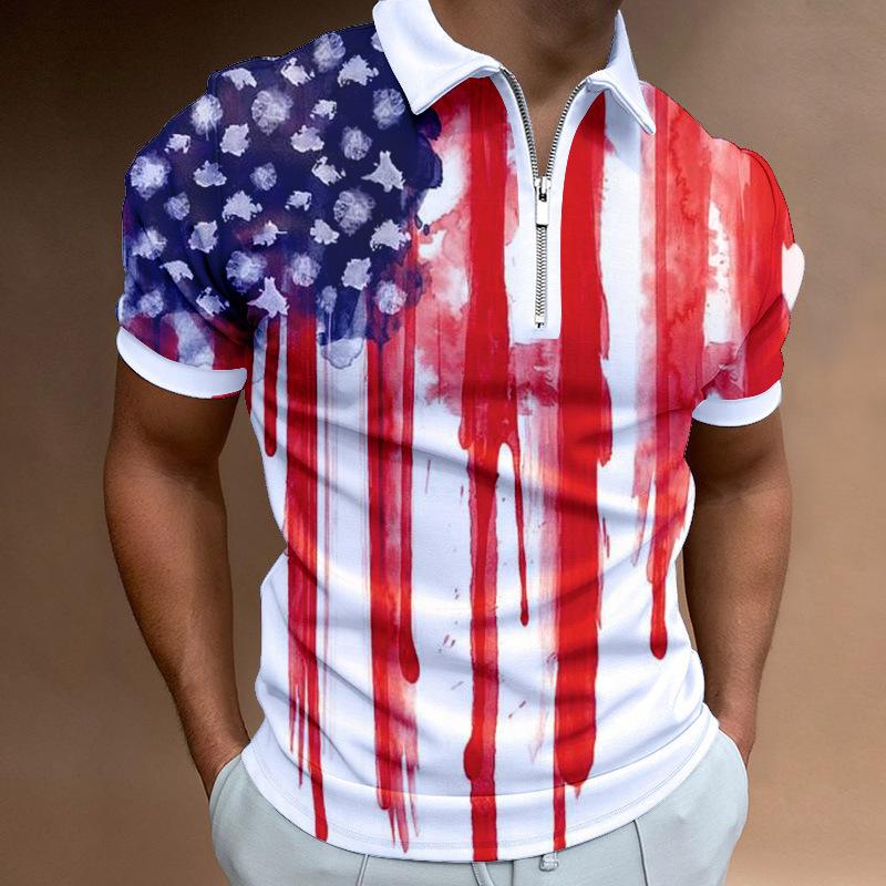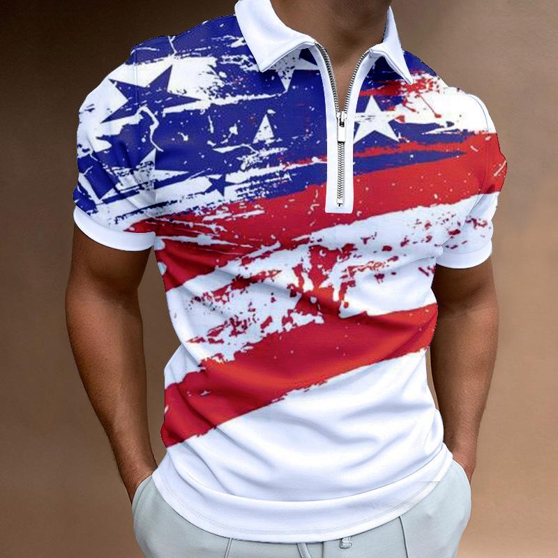Compra Polo de manga corta con cremallera y estampado 3D del Día de la Independencia de verano 2023 para hombre, estilo diario al por mayor en Joom.pro