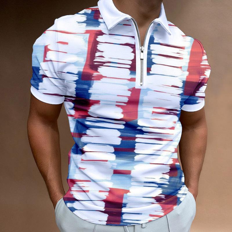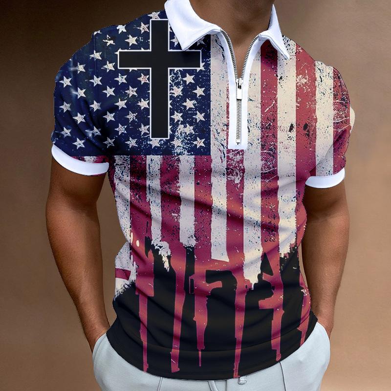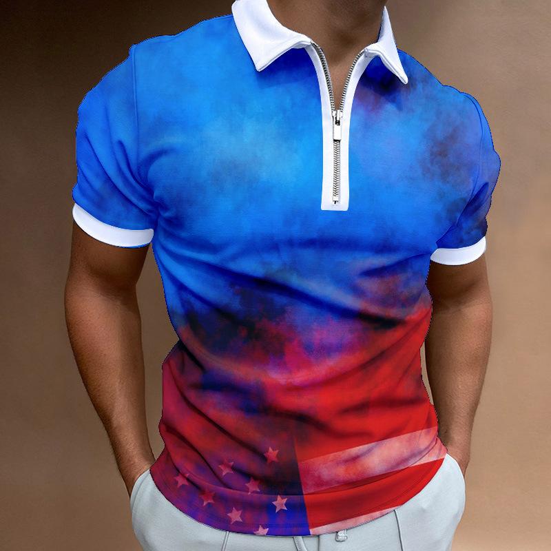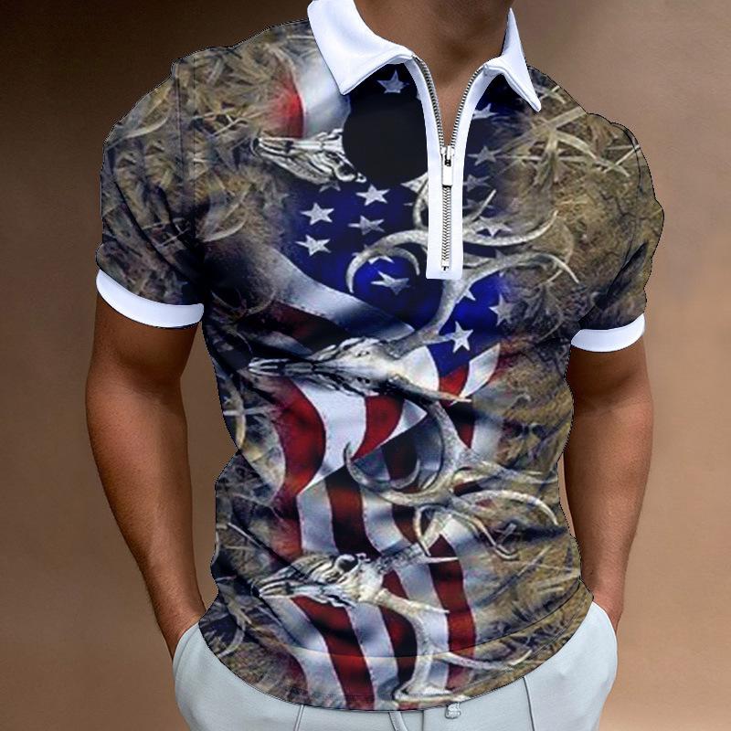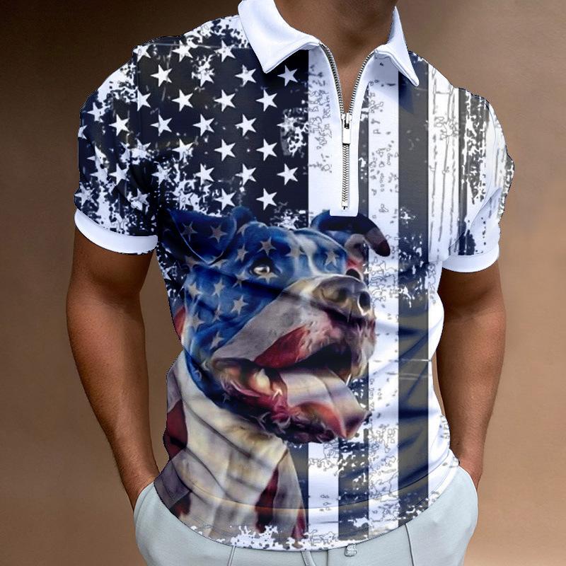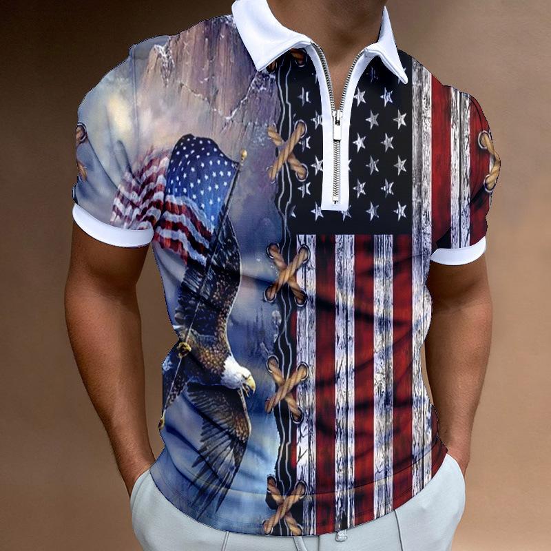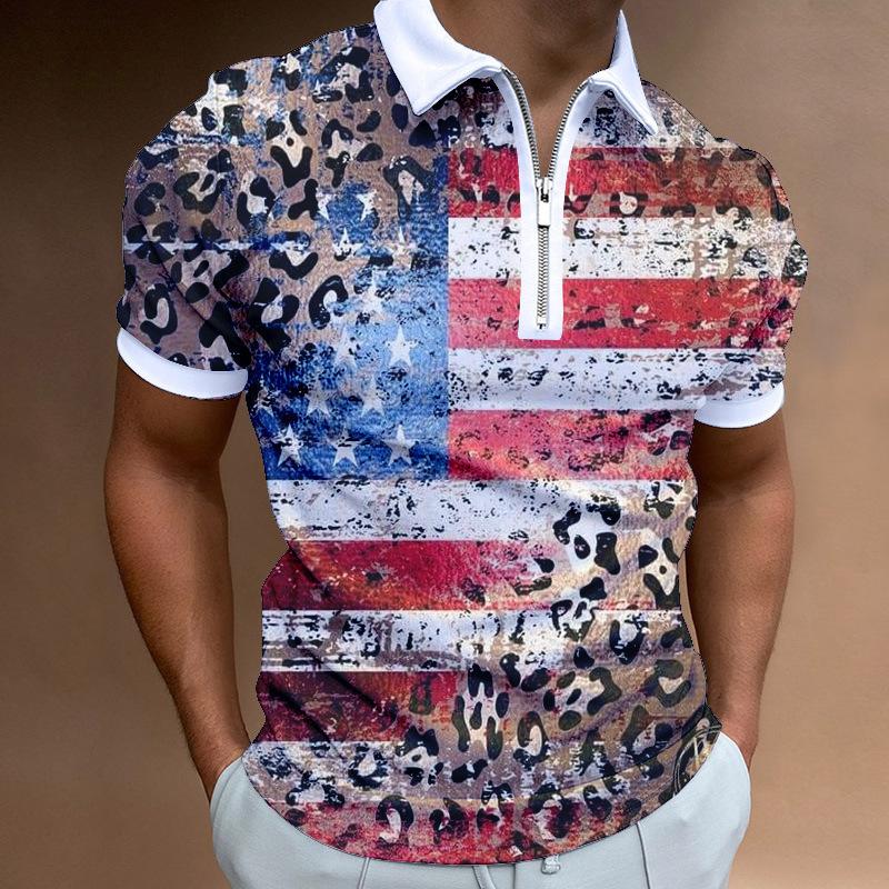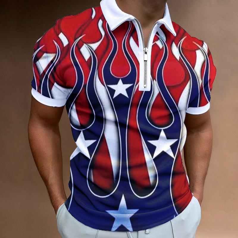 Compra Polo de manga corta con cremallera y estampado 3D del Día de la Independencia de verano 2023 para hombre, estilo diario al por mayor en Joom.pro