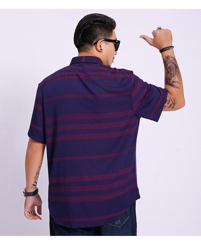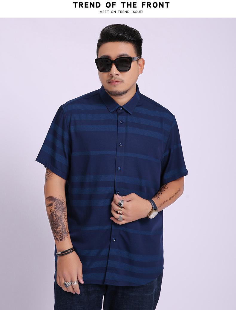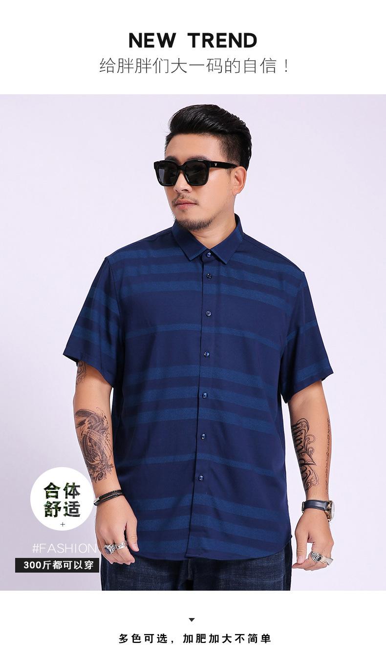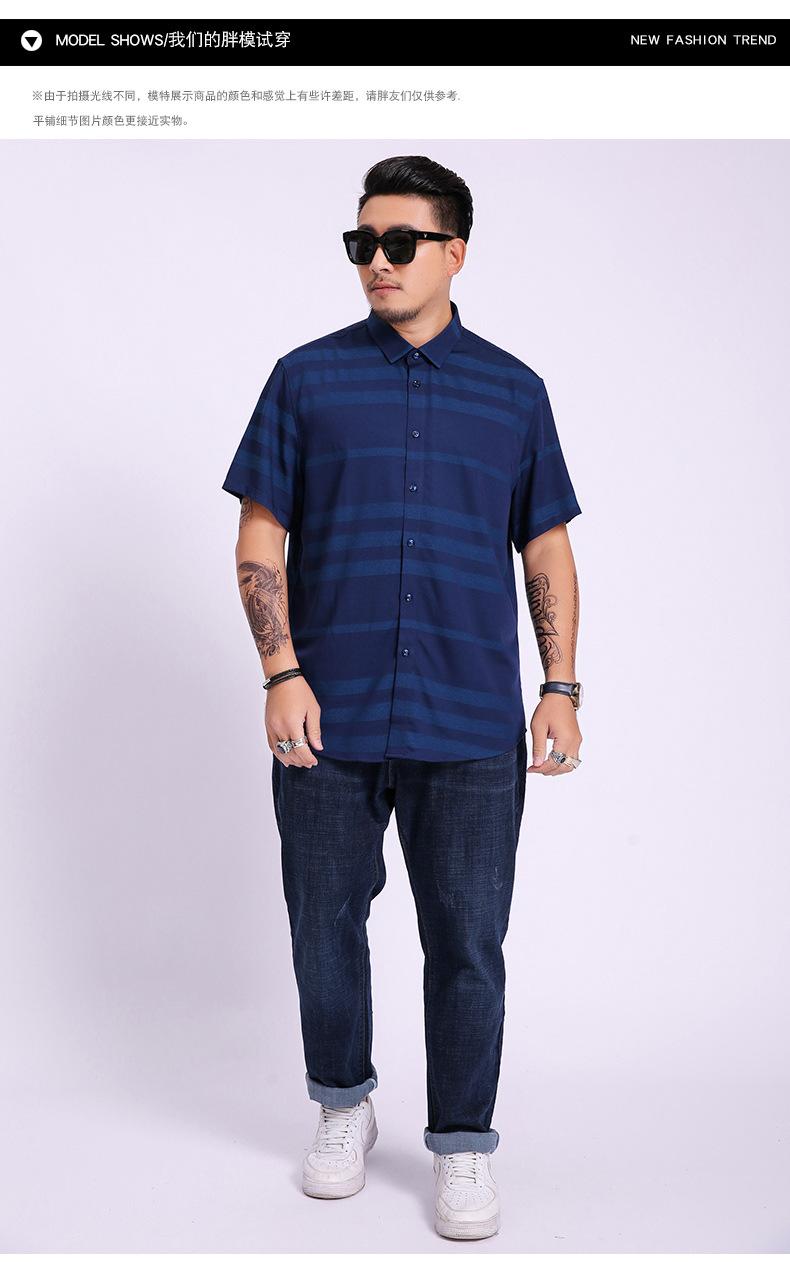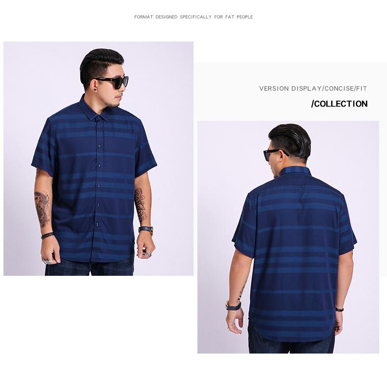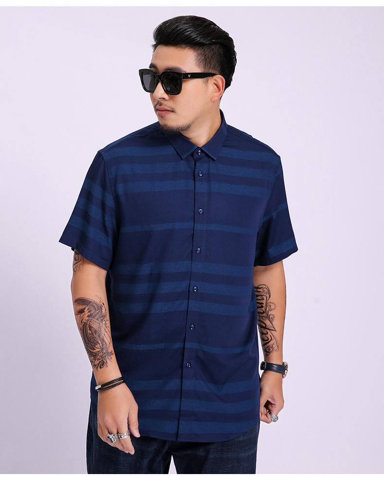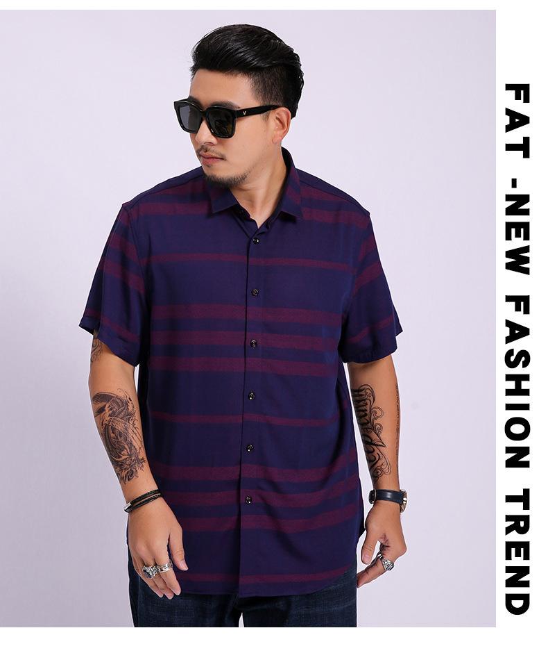 Camisa de Manga Corta para Hombre Talla Grande Business Casual Suelta Teñida en Hilo a Rayas Gordo talla grande Gordo Camisa de Manga Corta