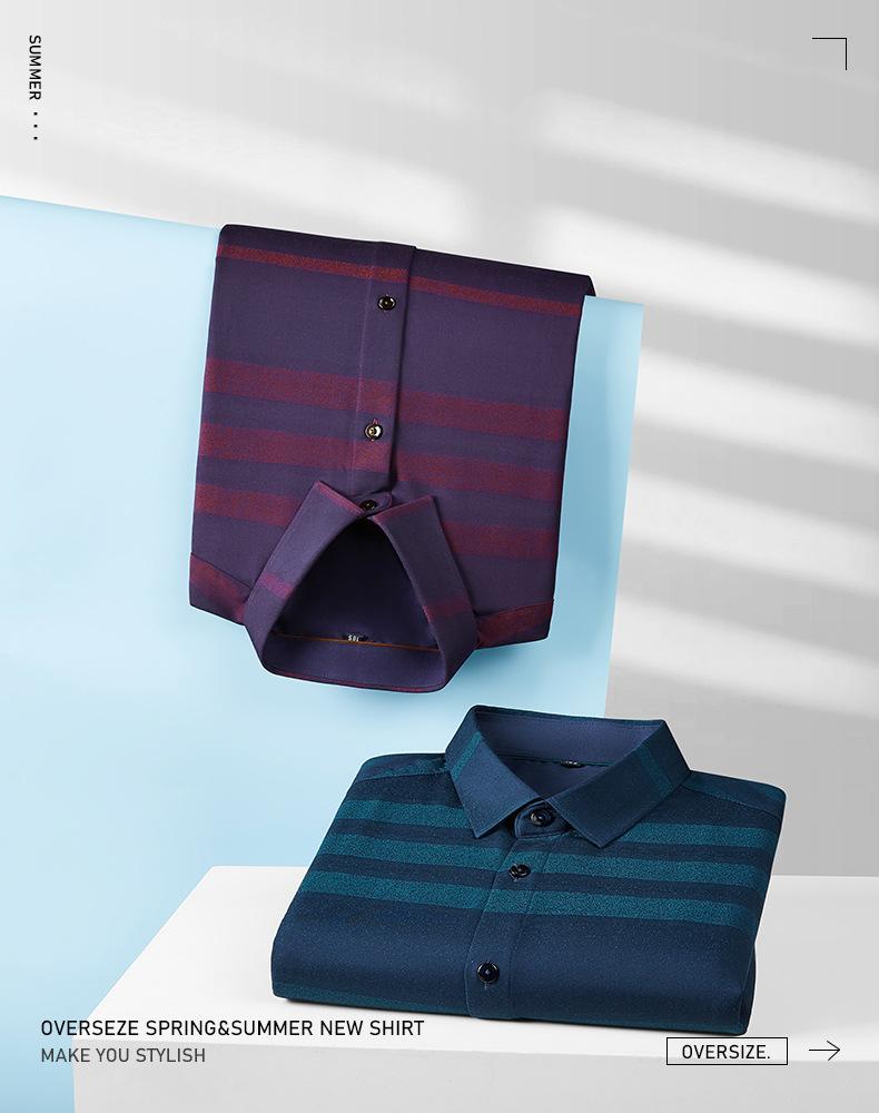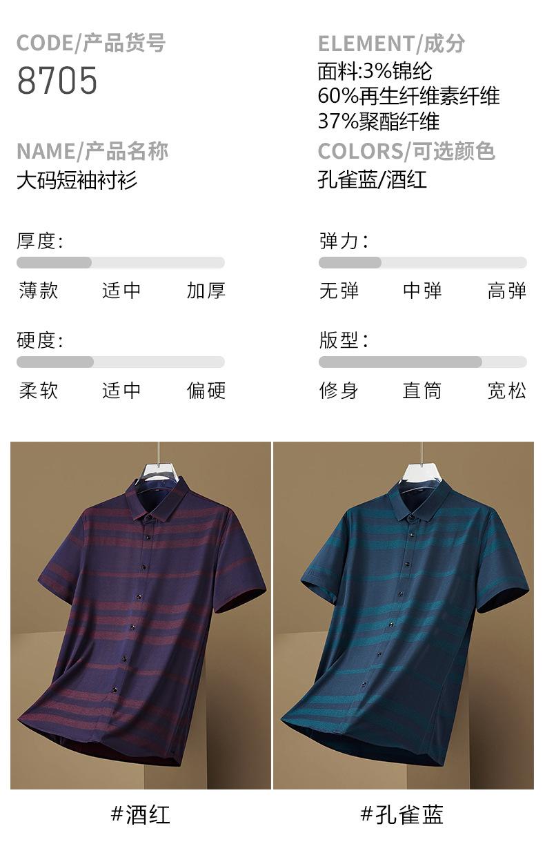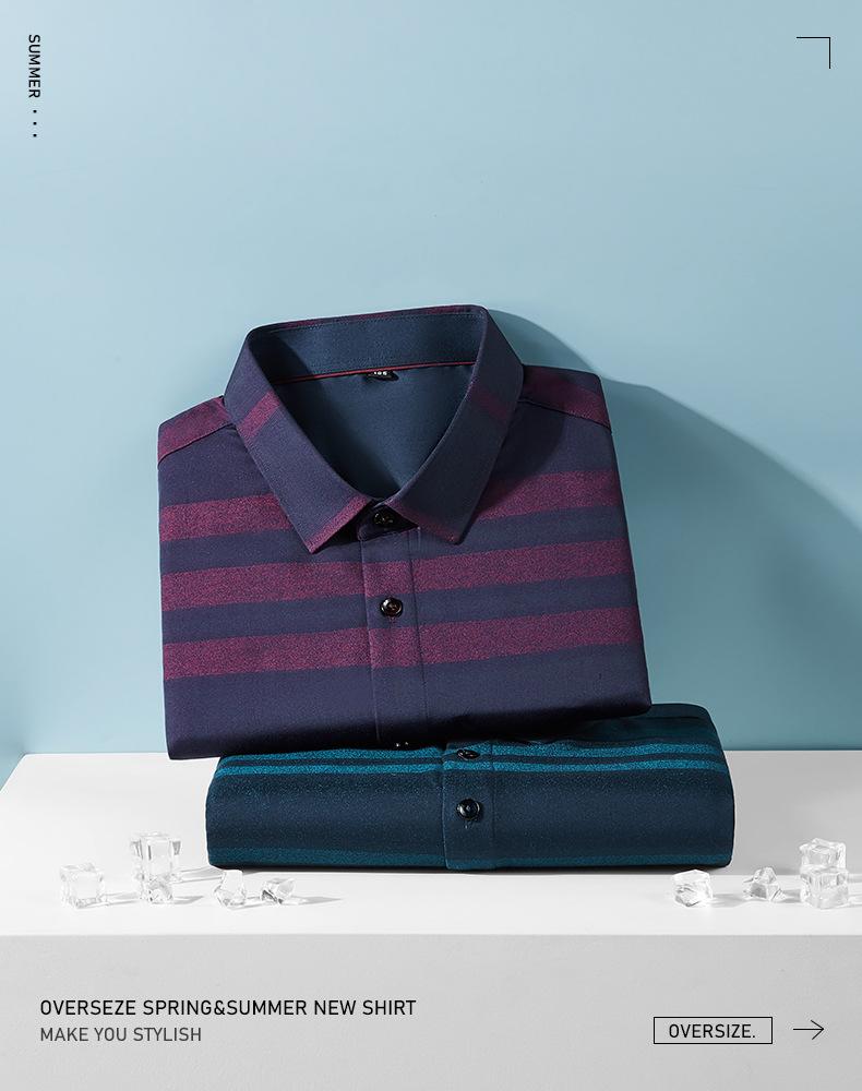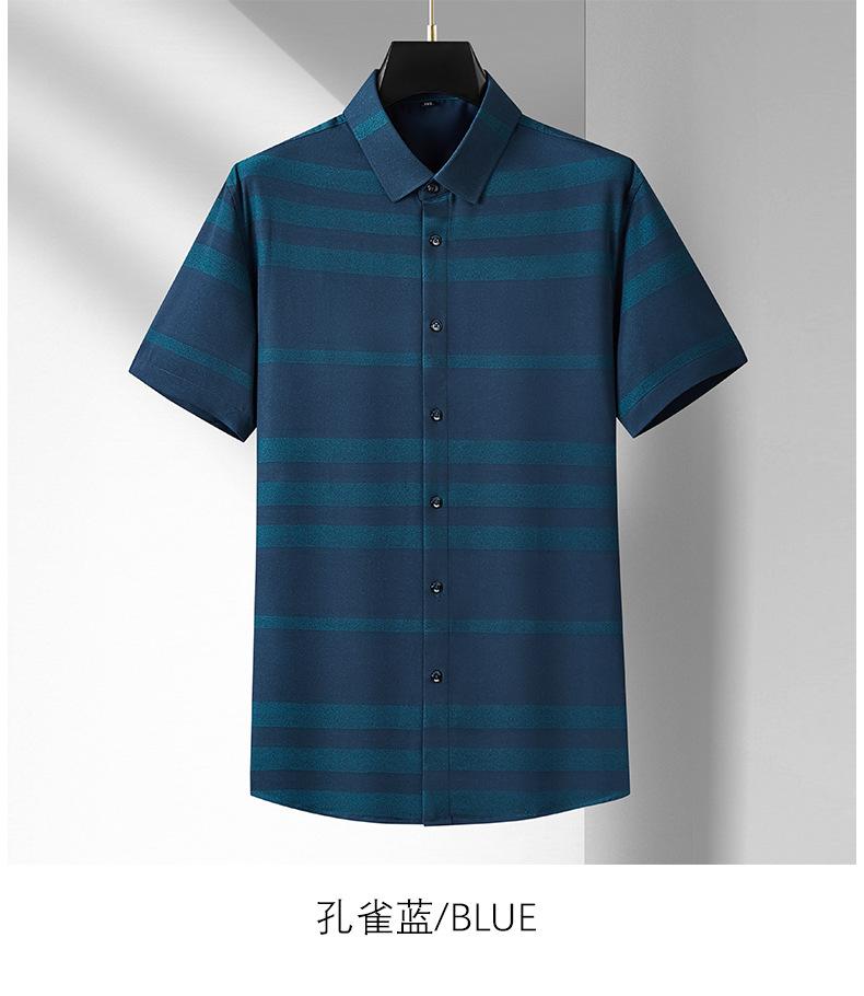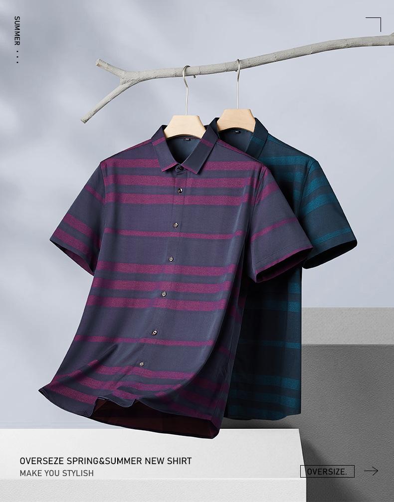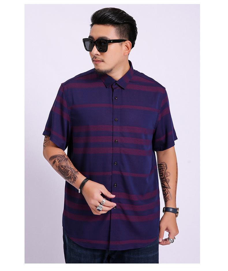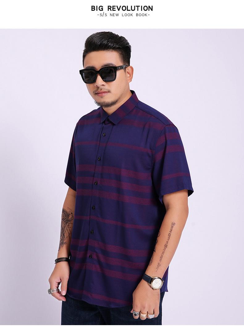 Camisa de Manga Corta para Hombre Talla Grande Business Casual Suelta Teñida en Hilo a Rayas Gordo talla grande Gordo Camisa de Manga Corta