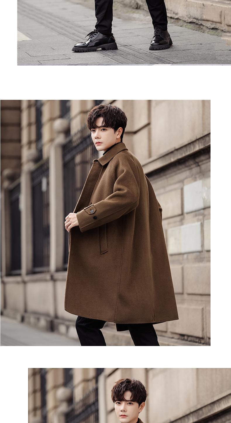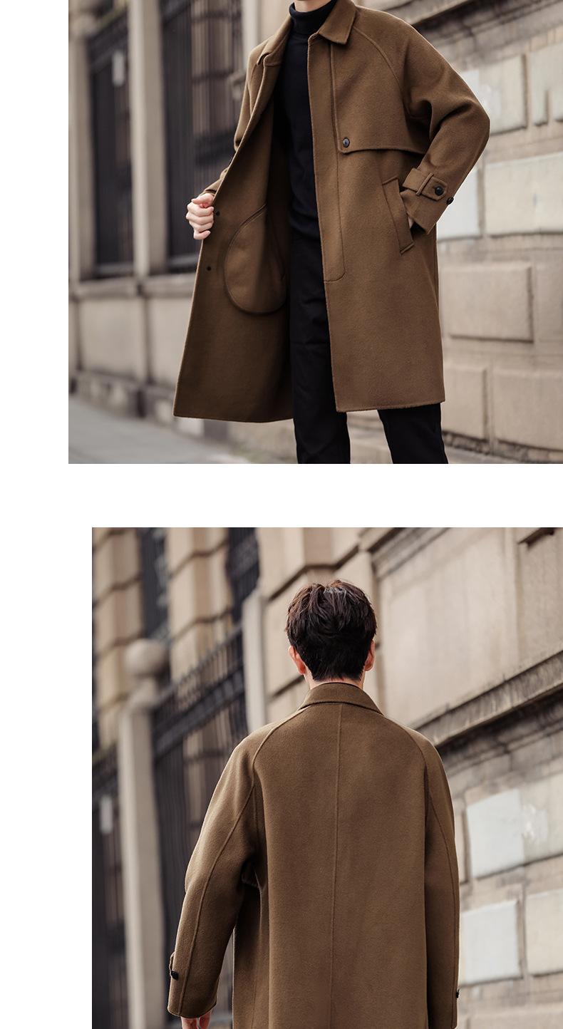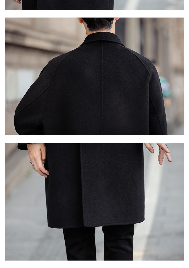Abrigo de lana pura para hombre, abrigo de cachemira de doble cara de estilo coreano de longitud media, cortavientos grueso de invierno de alta calidad