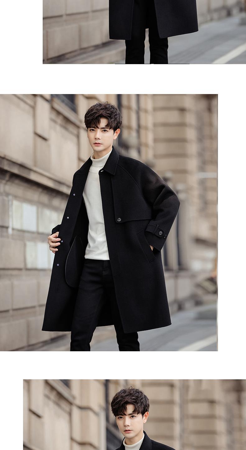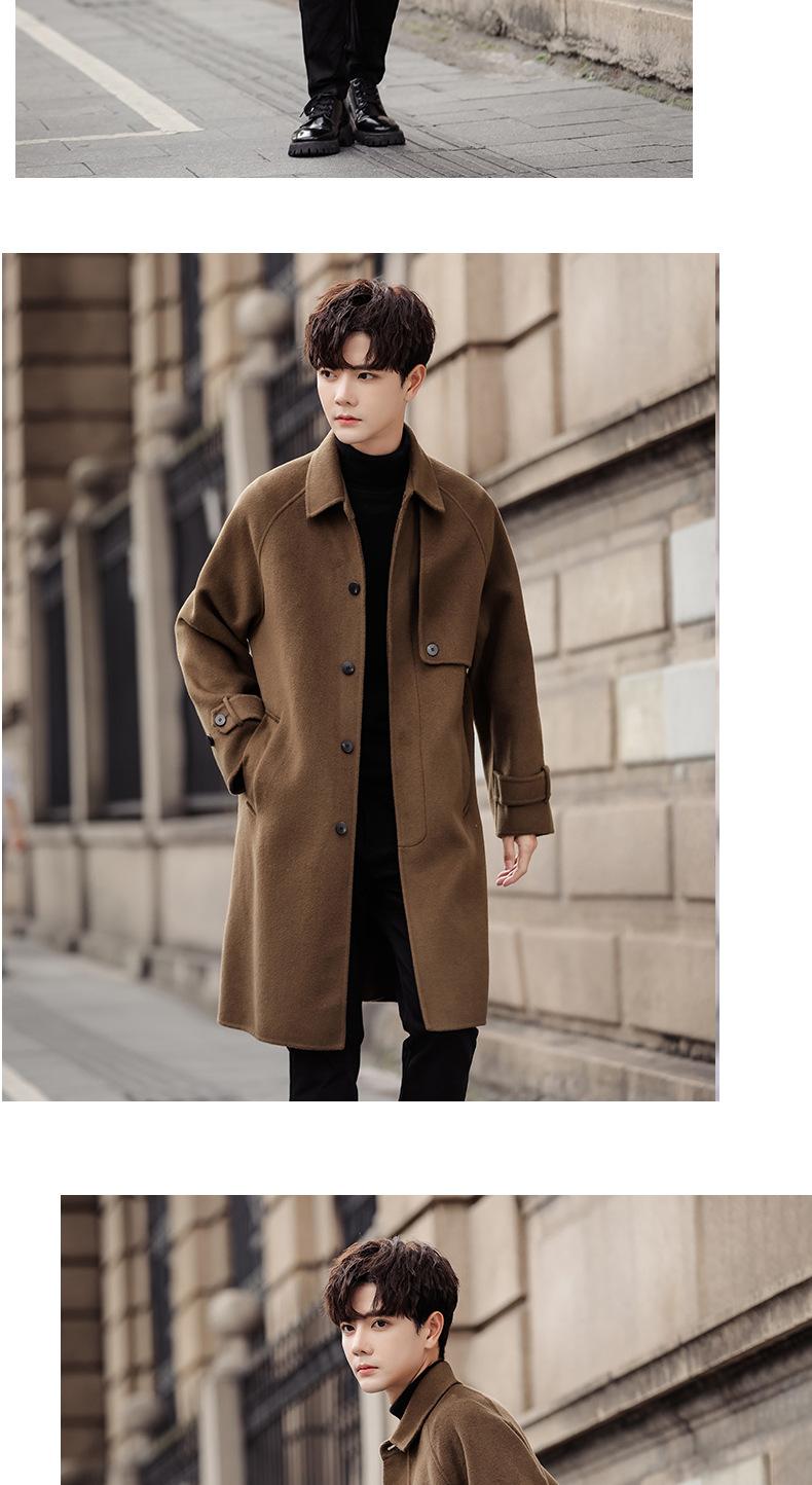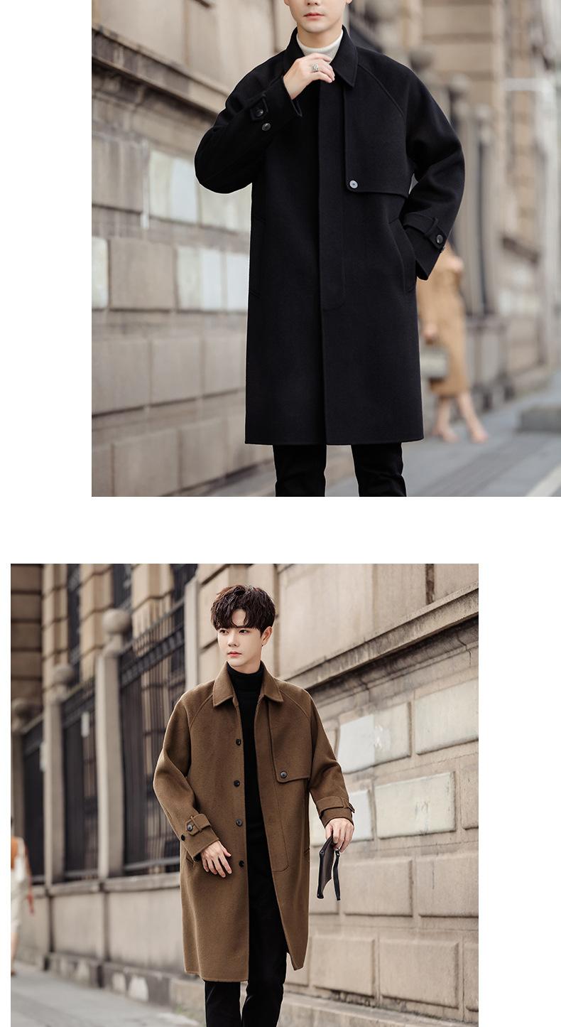 Abrigo de lana pura para hombre, abrigo de cachemira de doble cara de estilo coreano de longitud media, cortavientos grueso de invierno de alta calidad