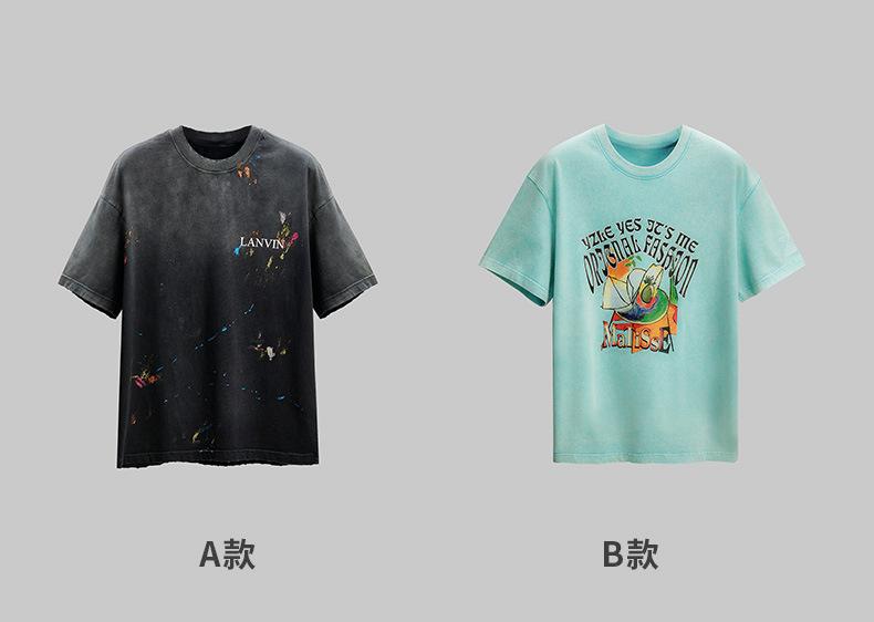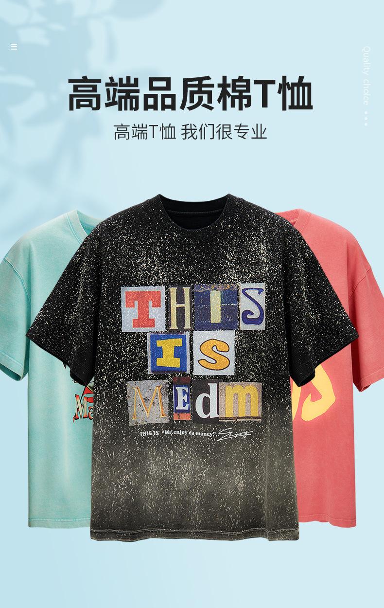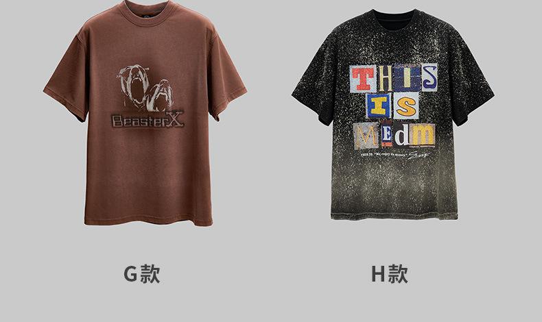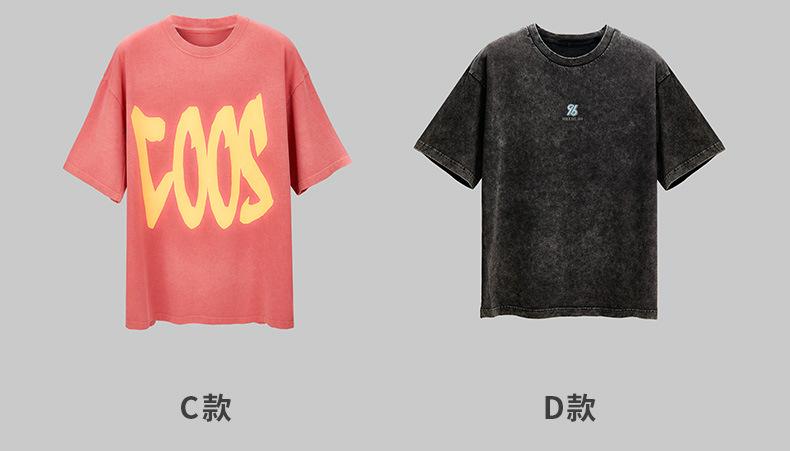 Compra Camiseta pesada de 250g de estilo retro lavado y envejecido de manga corta para hombre, holgada de algodón, camiseta de marca de moda para hombre al por mayor en Joom.pro