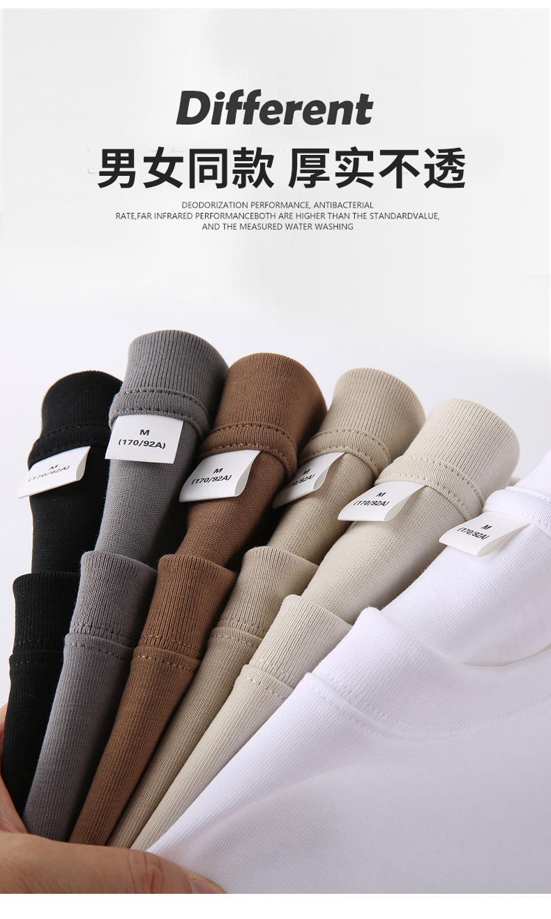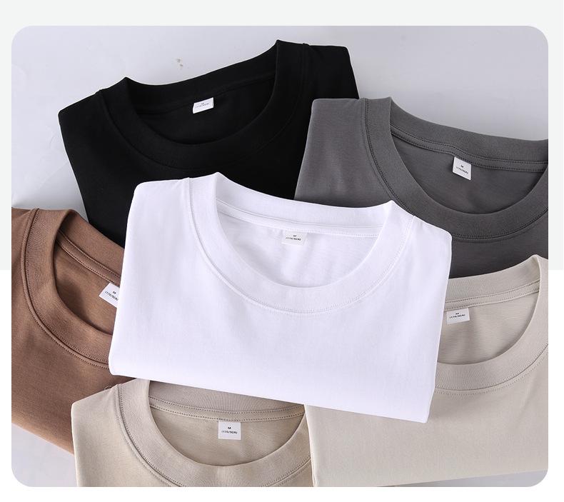 Camiseta blanca de 260 g de peso pesado cuello redondo interior color sólido manga corta holgada talla europea camiseta básica algodón de Xinjiang en vivo caliente