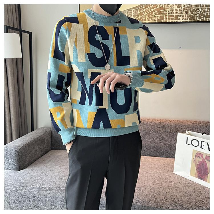 2023 nuevo abrigo de primavera para hombre, estilo coreano, suéter de moda, cuello redondo, top casual a juego para hombre, suéter para hombre