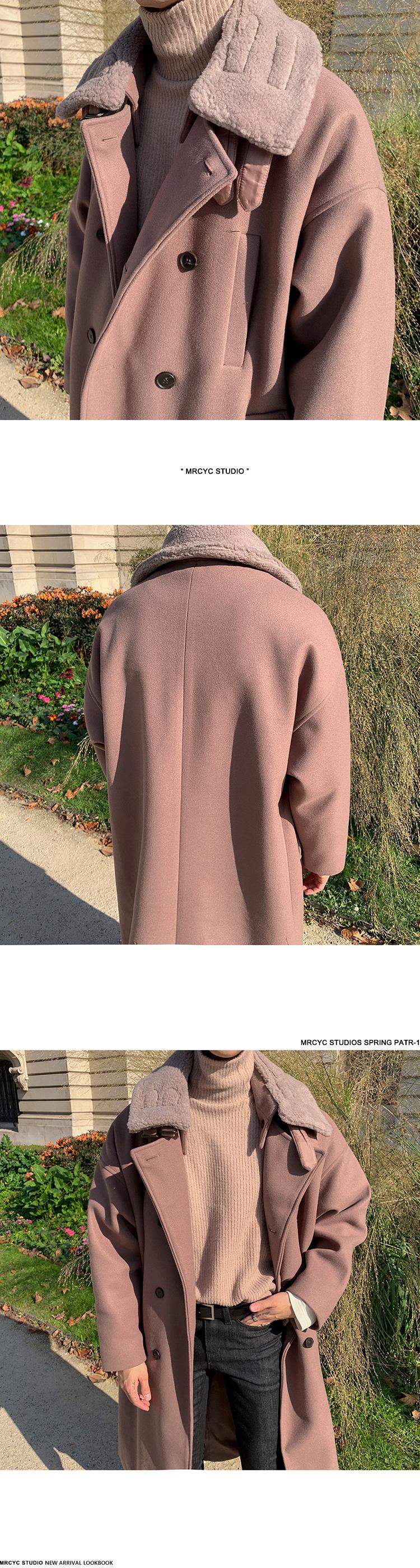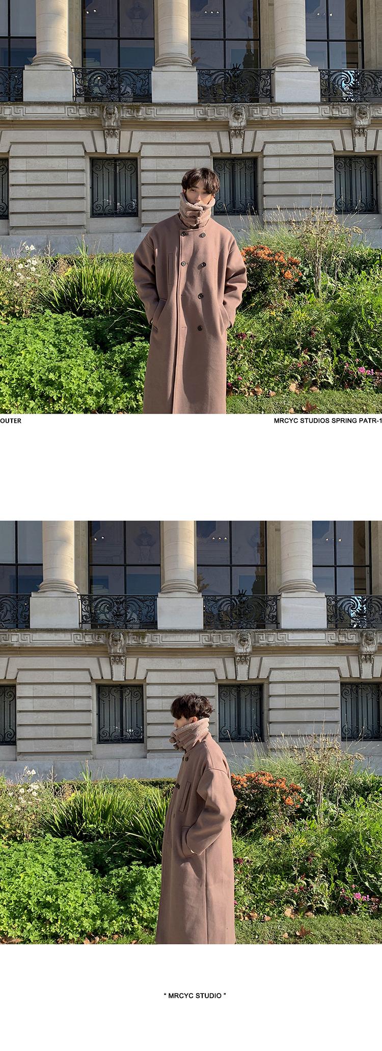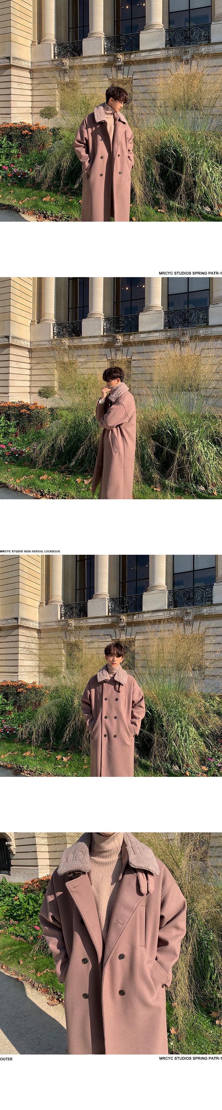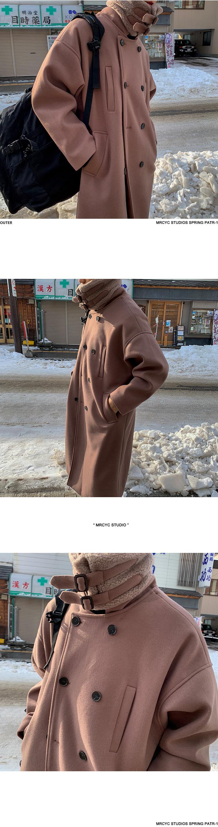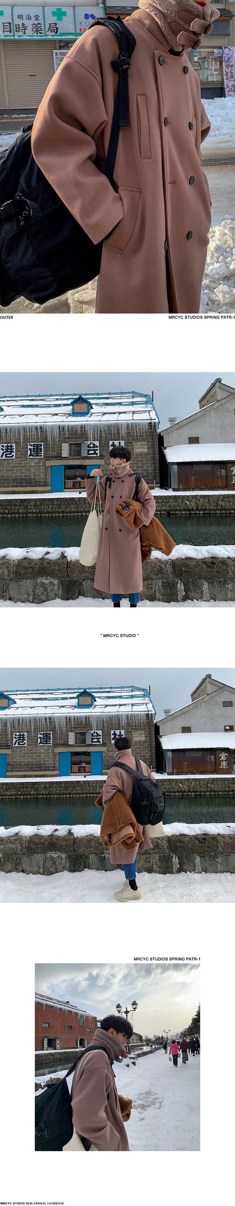 Abrigo de lana cruzado de invierno MYQ, abrigo de lana de longitud media para hombre, abrigo holgado de lana de cordero coreana para hombre
